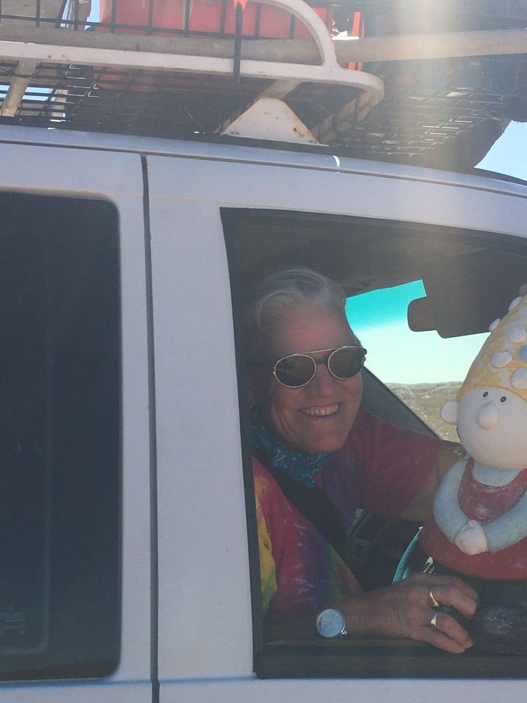I met Floss from Roma who stopped for a chat. She just spent the long weekend at the Betoota Hotel and raved about it being a must to stay. She took her garden gnome along to join the festivities. She seemed fun. One of the blokes at the hotel said he called the gnome Fairy. Very funny