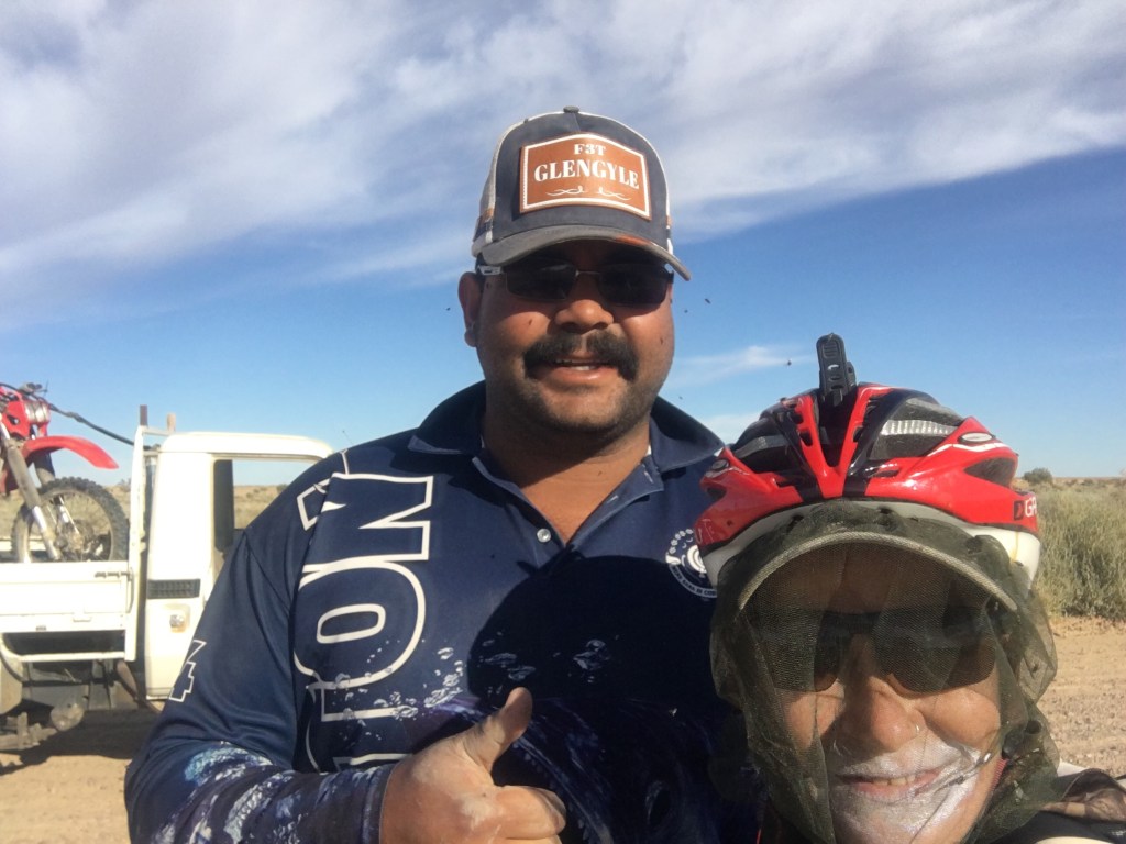 We had only just started our ride when one of the fellas working on the Clifton Hills station stopped to say hi and make sure we had enough water. Most cars that passed today stopped to check in if we needed anything. It’s great that folk look out for others on the track especially this little bike packer!! His name was ‘Darc.’ His work vehicle is a flat try Ute with a trail bike on the back to stop and check the fences. Very cool set up!! He loves his job and recons it’s not a bad way to spend a Sunday. Lovely man and shared one of his Granny Smiths for a snack later. Thanks mate!!