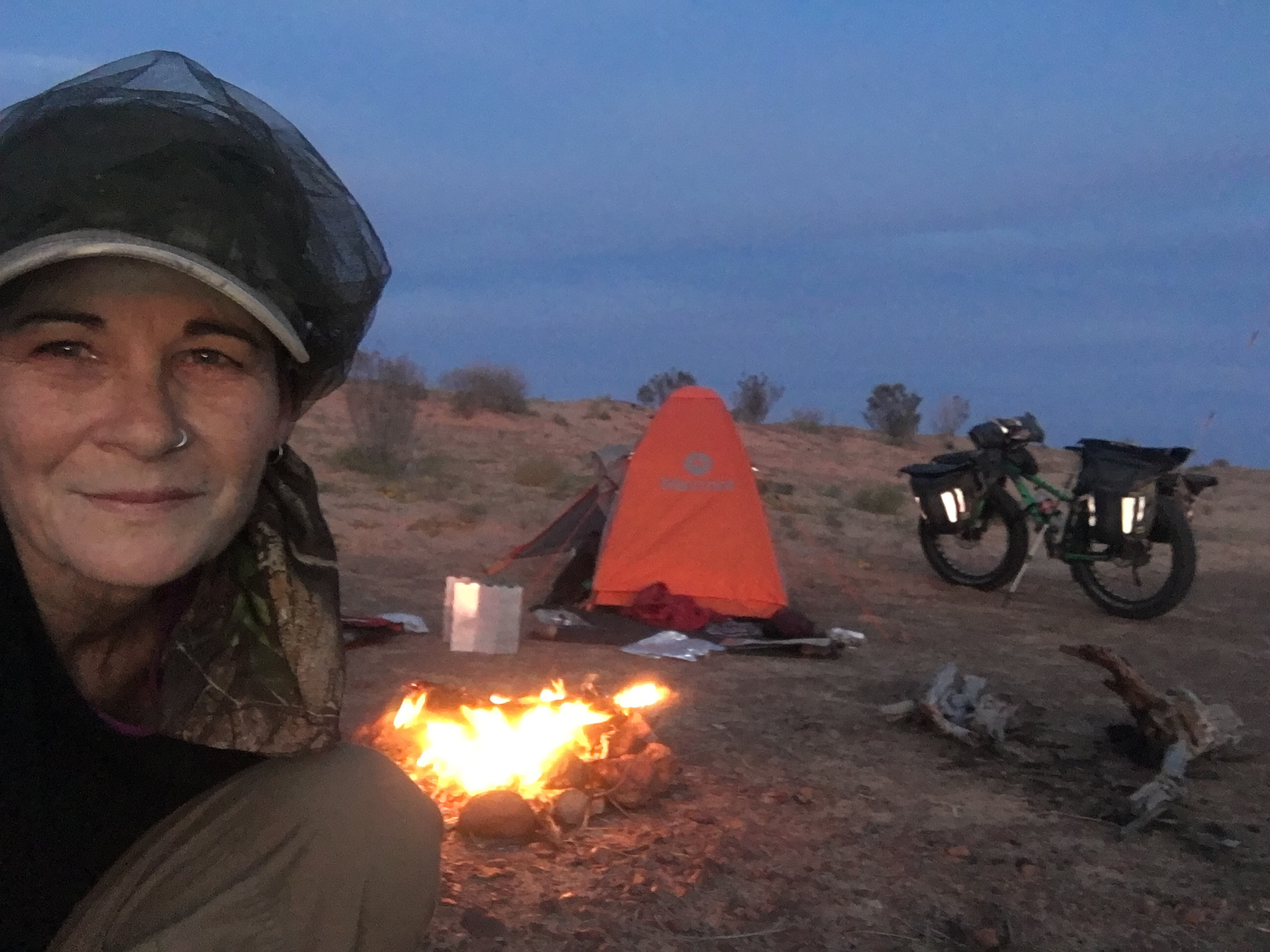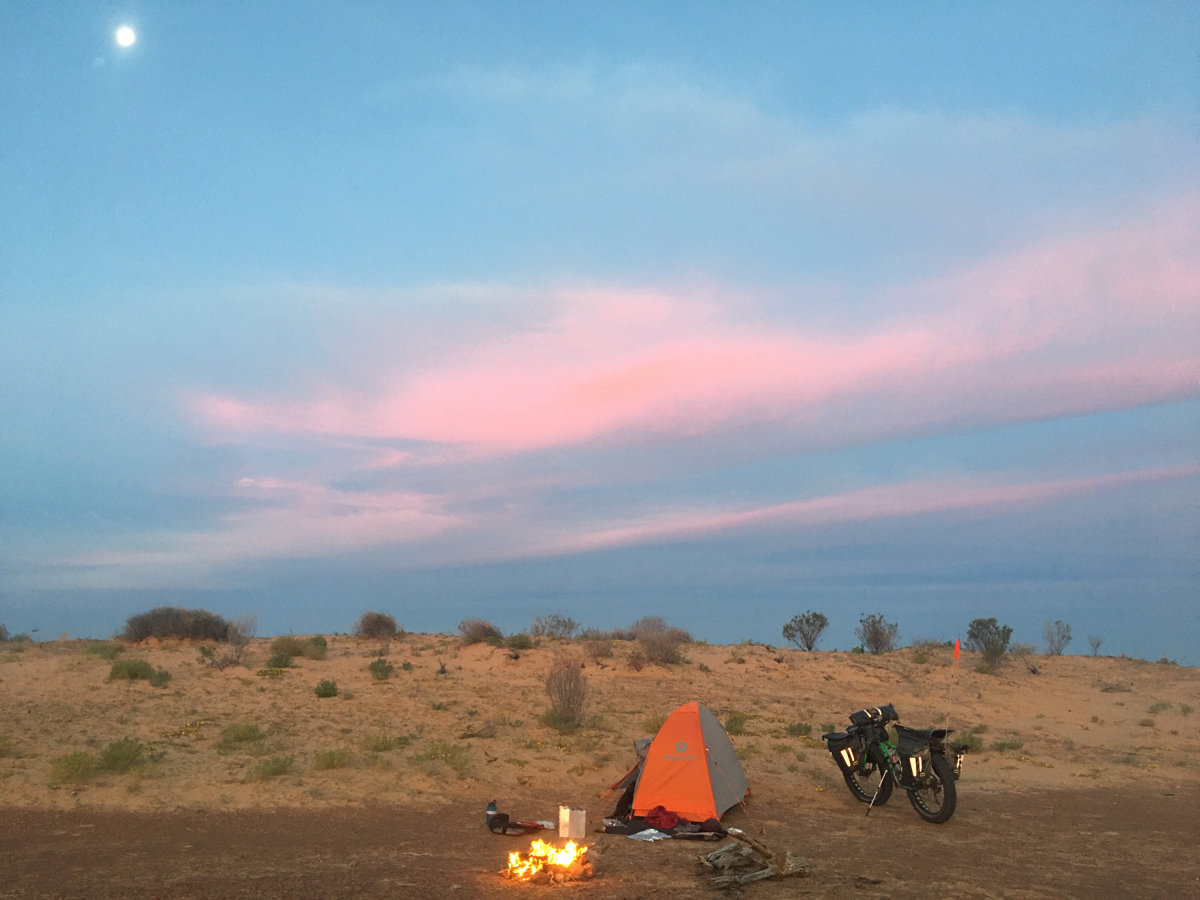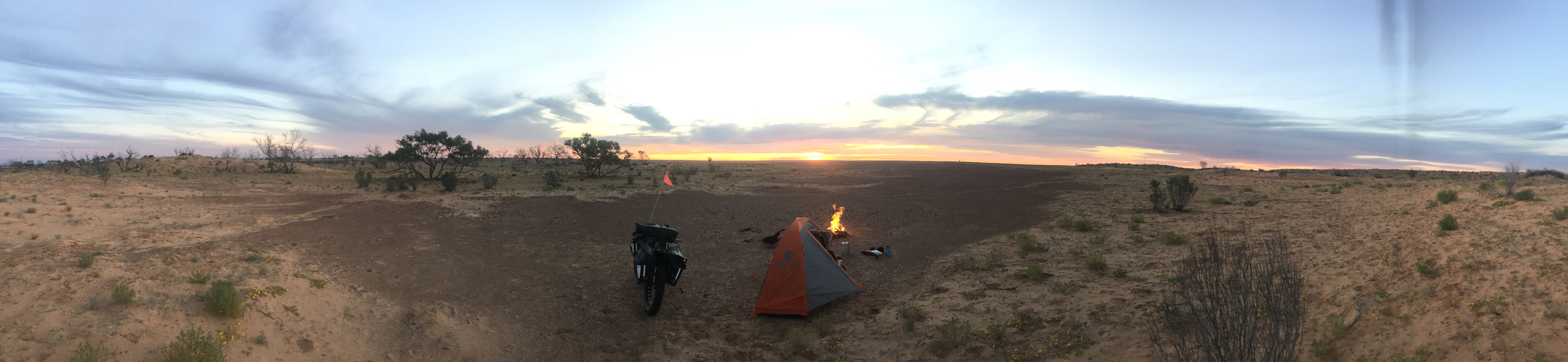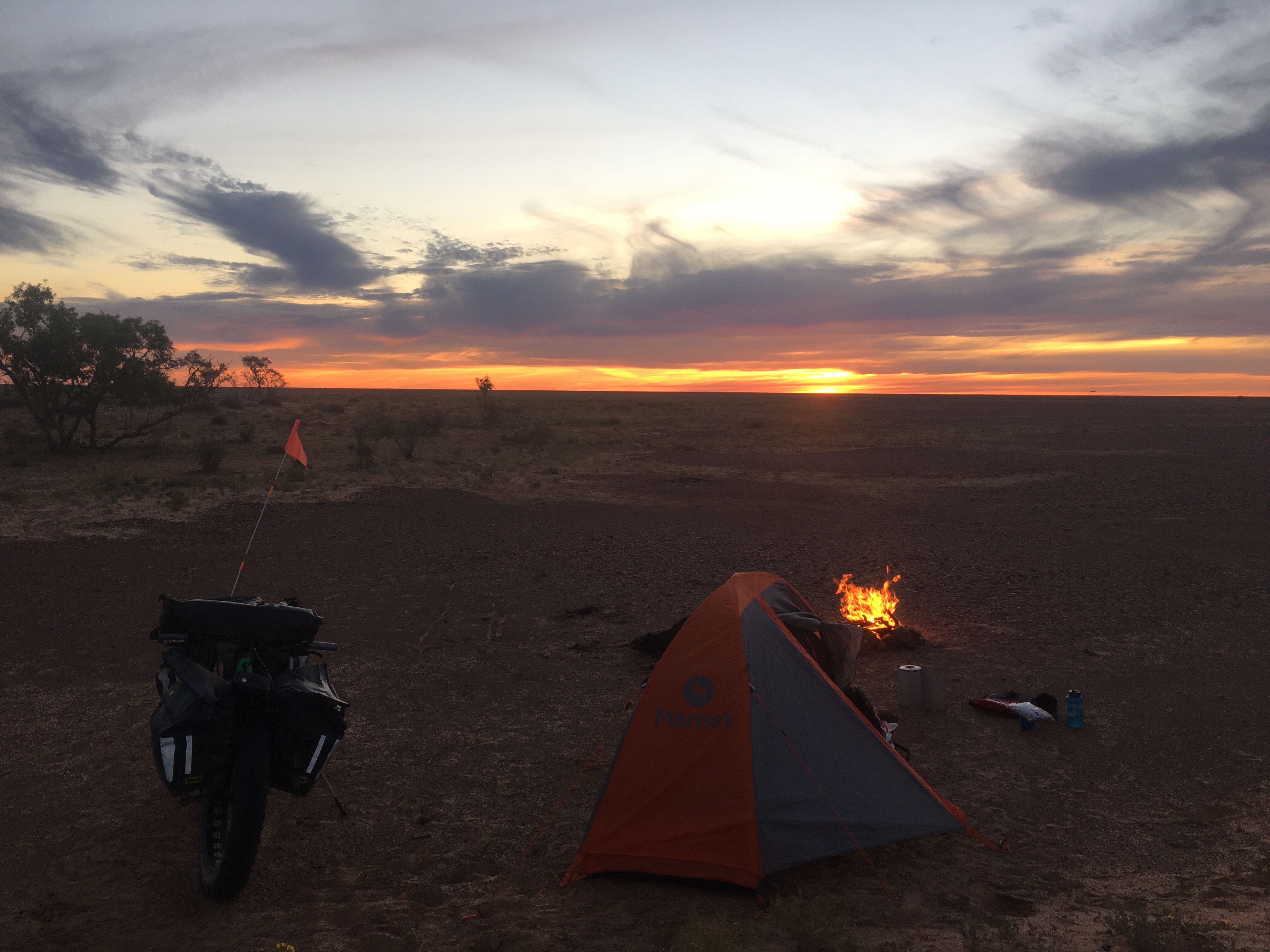 I’m sitting by the fire at our first wild camp with about 45km to go until we arrive at Clifton Hills Station and hopefully catch up with Peter as well as water up for the next two days. All going well We should arrive at the Mungeranie Roadhouse by Tuesday afternoon. That means I’ll water up with 6L for 1 night/2 days cycle, when I arrive tomorrow. Maybe grab an extra litre for the afternoon. All good!!