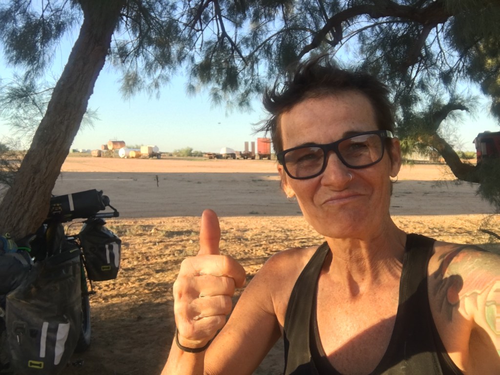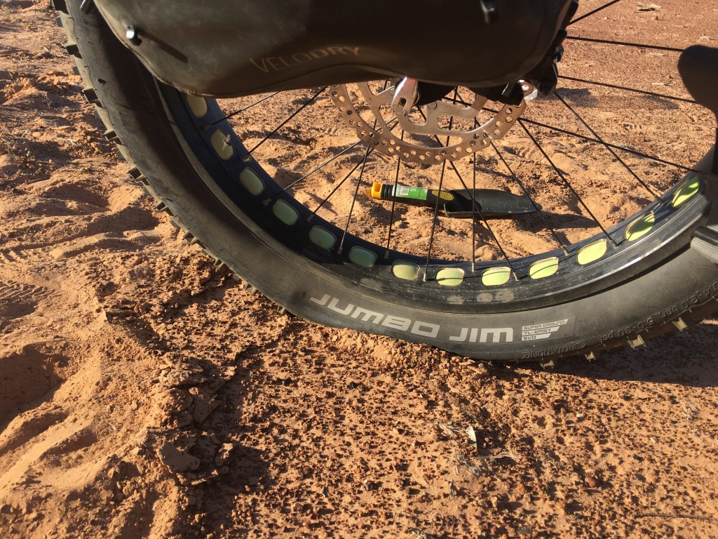 These bushes are unforgiving. Their prickle has a thorn about 1cm long. I checked the tyre for the puncture point and found one imbedded. This is expected and won’t be the last puncture we get which is why the boys at The Mountain Biker put silicone in his tubes. When the tyre rotates the silicone moves round and is drawn to the escaping air and seals it. However the tyre needs to be moving to activate and that didn’t happen obviously as we made camp for the night. Hence the flat this morning