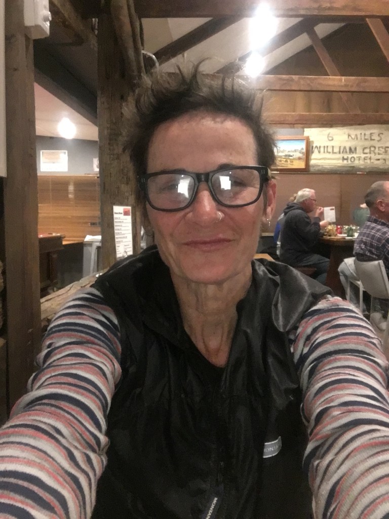 I’m at the William Creek Hotel eating my first pub meal because I’m huuuuungreeeey!!!!. The oats and seeds were just not going to cut it tonight. I need a hot meal and am saddling up to a burger and chips and salt and tomato sauce. Ooooo happy girl
