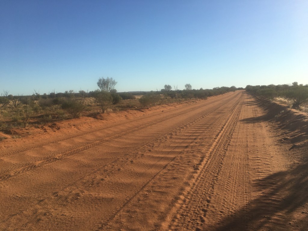 The first 20km were so different this morning. Instead of gibber stones it was green pastures of tufty shrubs, like an oasis treat for the gibber birds and dragons. We spotted lots of gibber birds darting amongst the shrubbery. They’re a ground bird and very industrious hopping round in mated pairs. Apparently there’s lots of camels and emus in this section but we’re yet to spot any.