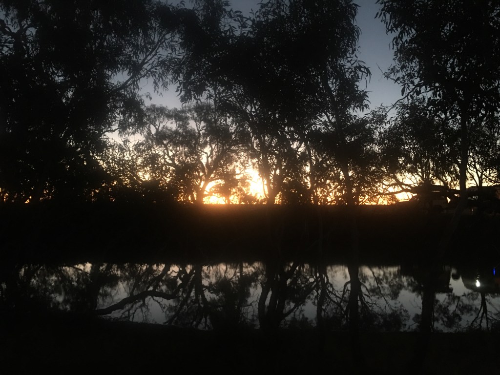 Once we settled from that bit of drama and set up camp, I could enjoy what was left of the sunset for the day. It was a stunning reflection across the water that was still and mirrored the coolabahs. I can see why it’s such a popular spot and I’m very happy to have done the distance to enjoy Kathleen Creek for the stop ever. For now it’s dinner o’clock and an early night out of the very cold air. Night and talk soon xxxx