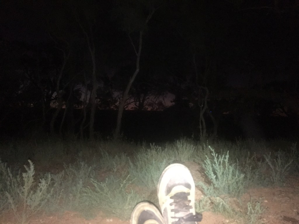 It’s a stunning spot here with water in the river and I’ve been told there’s lots of green budgies but they’re all roosted for the night so we’ll have to wait til morning for bird o’clock. It’s a stunning clear night with a sky of stars and very chill bill. I even have the gortex jacket over the down and am close to cosy with a buffer from the night air.