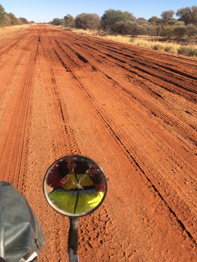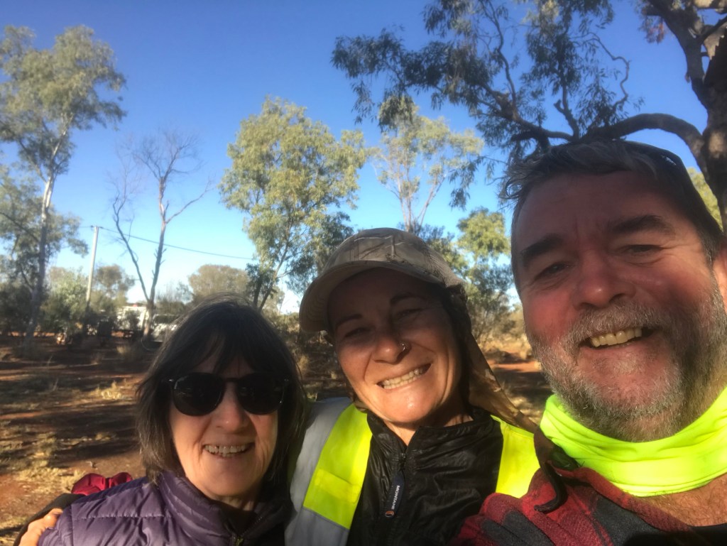Paul and Lin arrived at Warakurna Roadhouse during the night and popped over to say hi while I was packing up camp. They were warm hearts and very excited about our challenge. My phone was charging so Lin used her phone to do a selfie and texted me the photo. Their message with the picture was “Lovely meeting you. Cherish your time. Stay safe