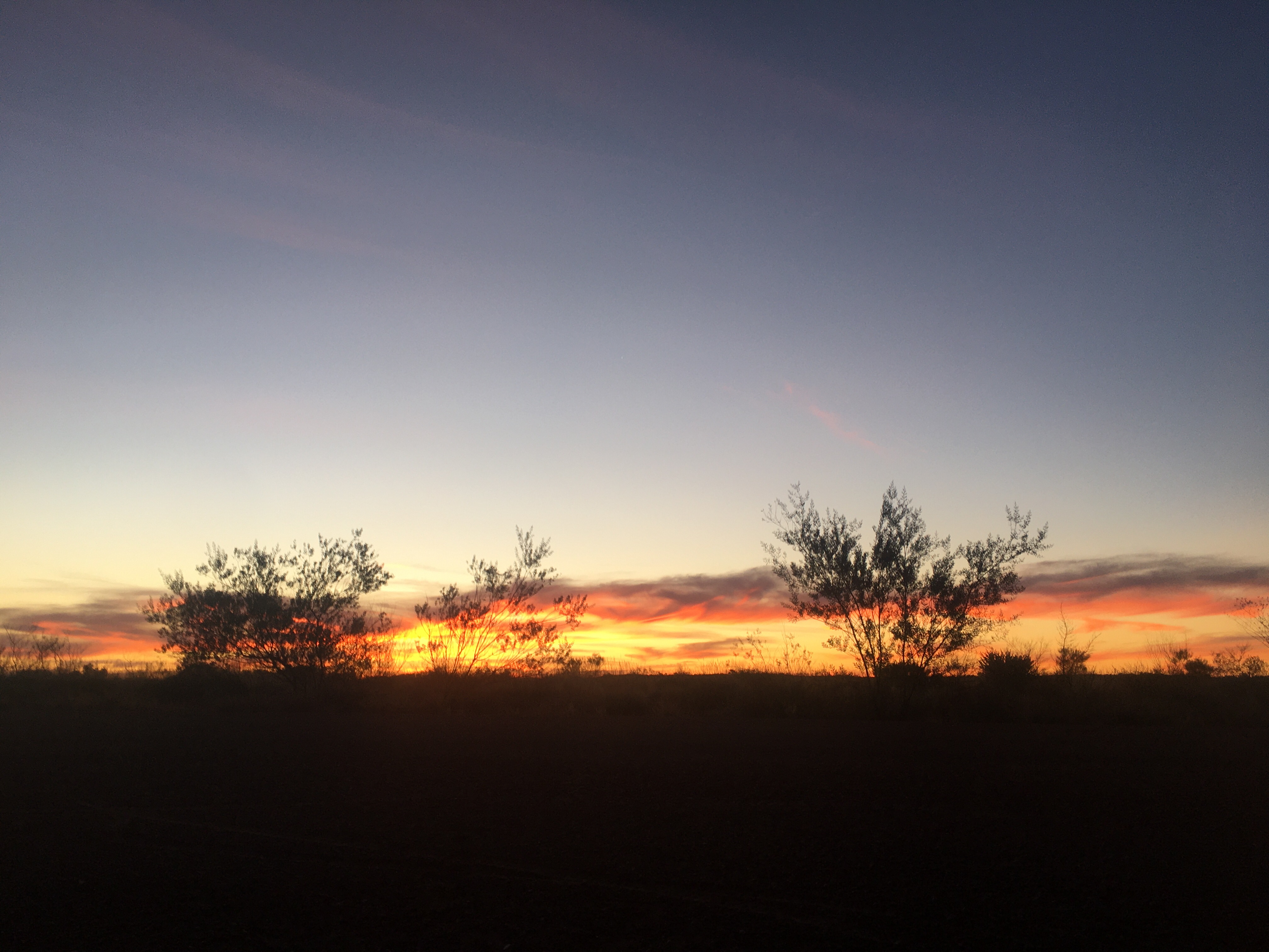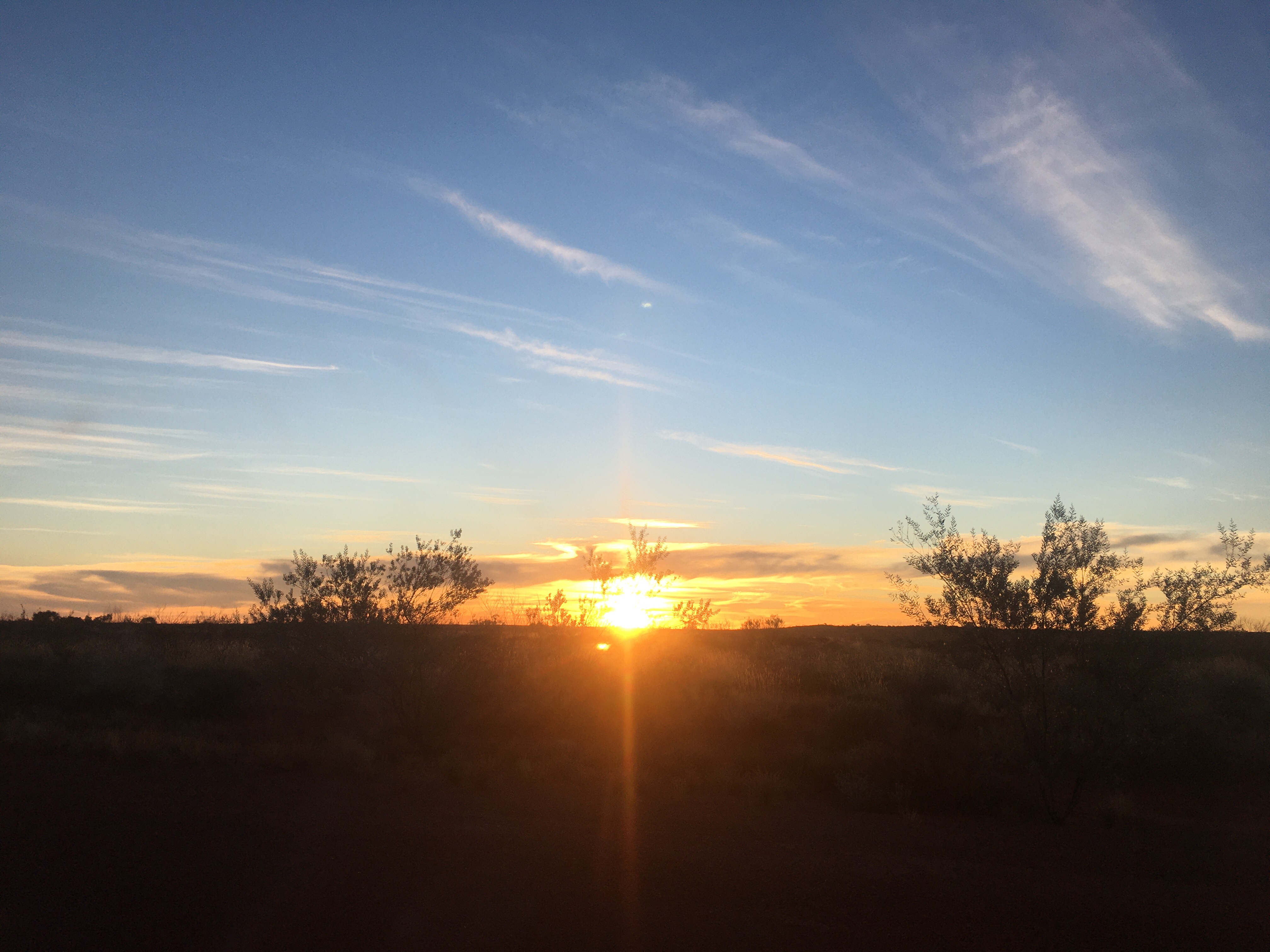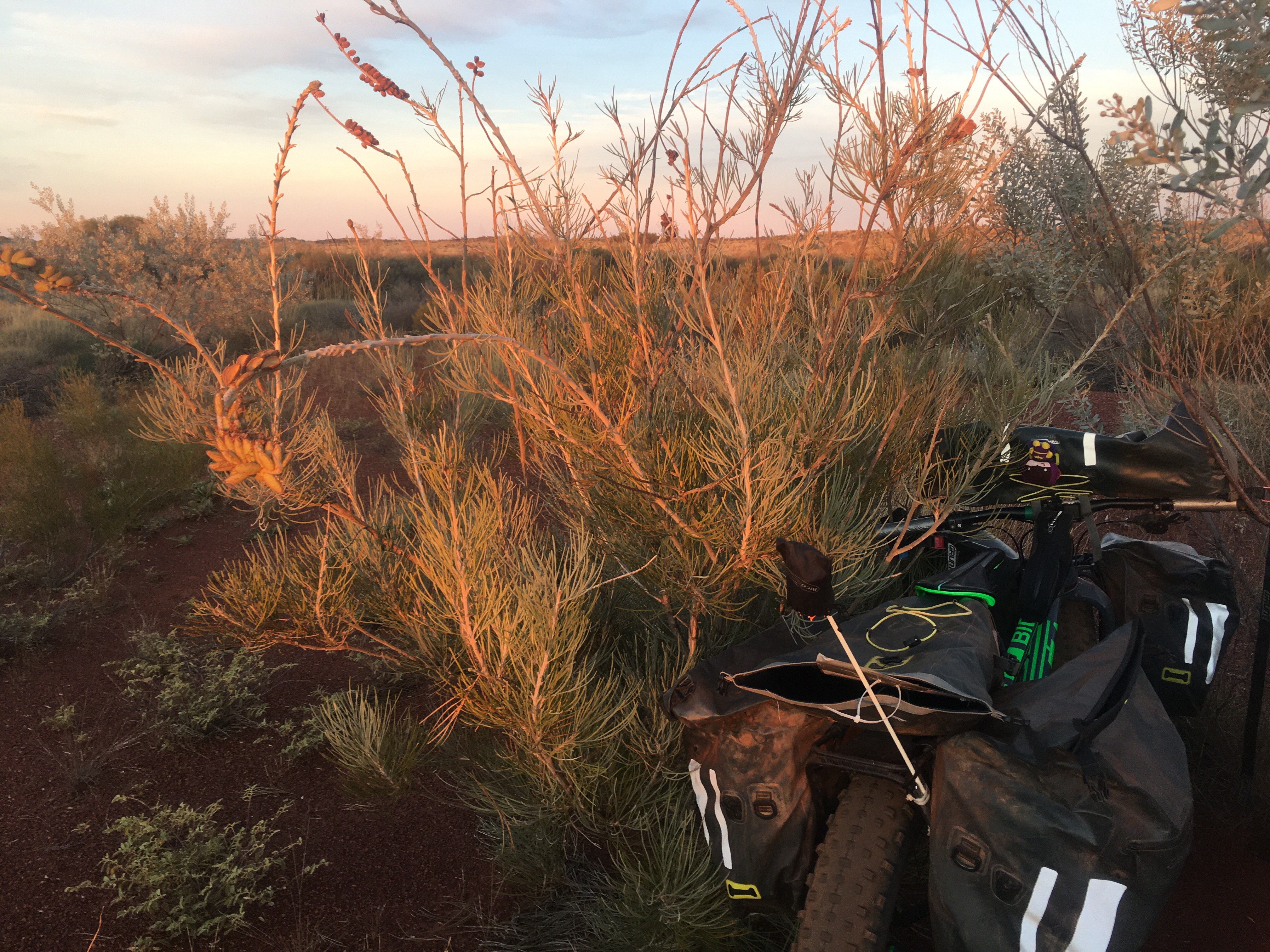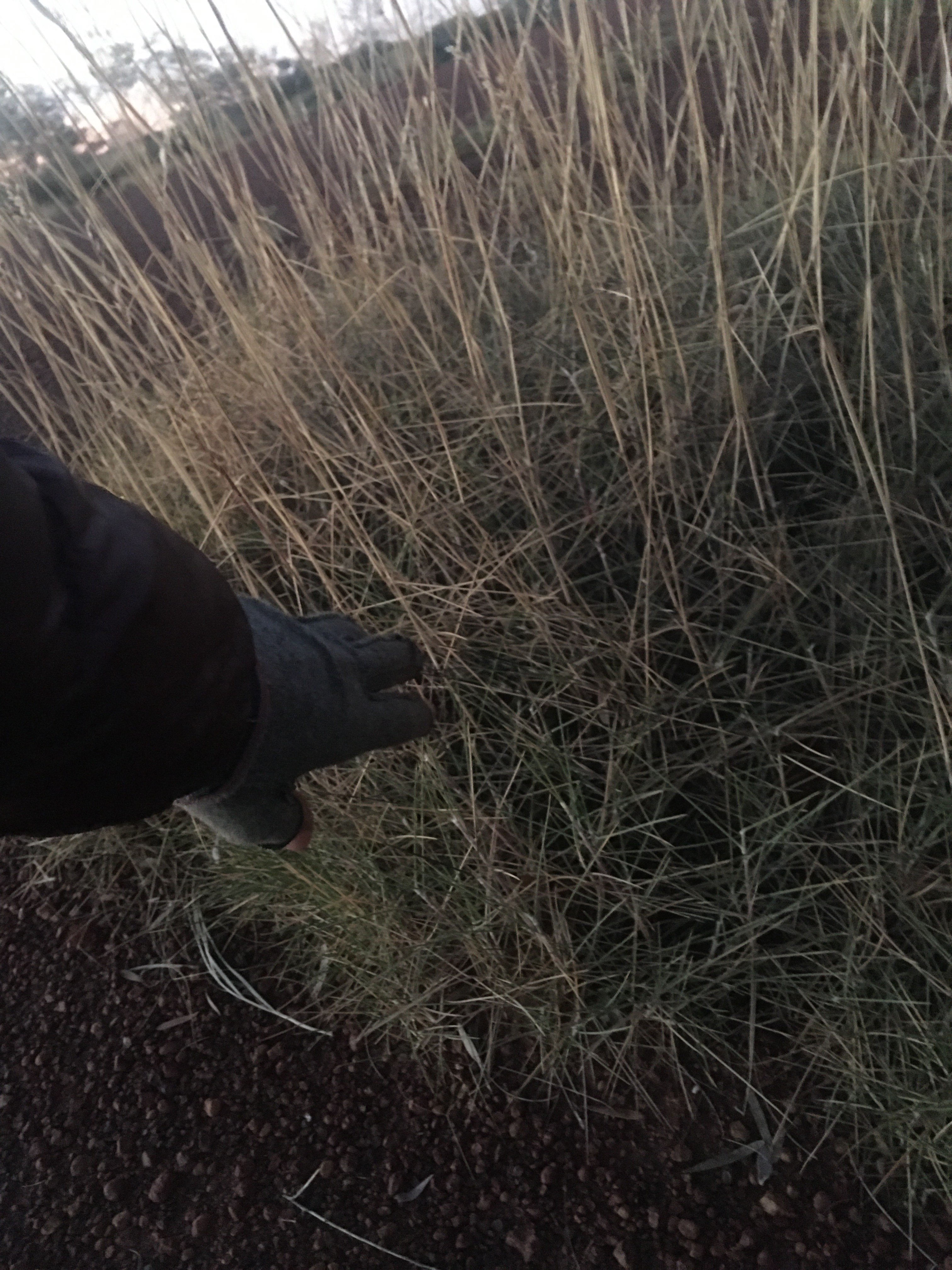 Sunset lit up the natives including clumps of spinafex and honey grevillias that are seeding after flowering. I noticed red flowering upside down bushes along the side road and there’s clumps of a broad leaf ground plant with a spray of blue flowers. It amazes me how delicate the flowers are on many of the low lying shrubs in an area so arid and harsh. The intricate beauty is a tiny wonder amongst the vast desert plains. No wonder the beep beeps are happy.