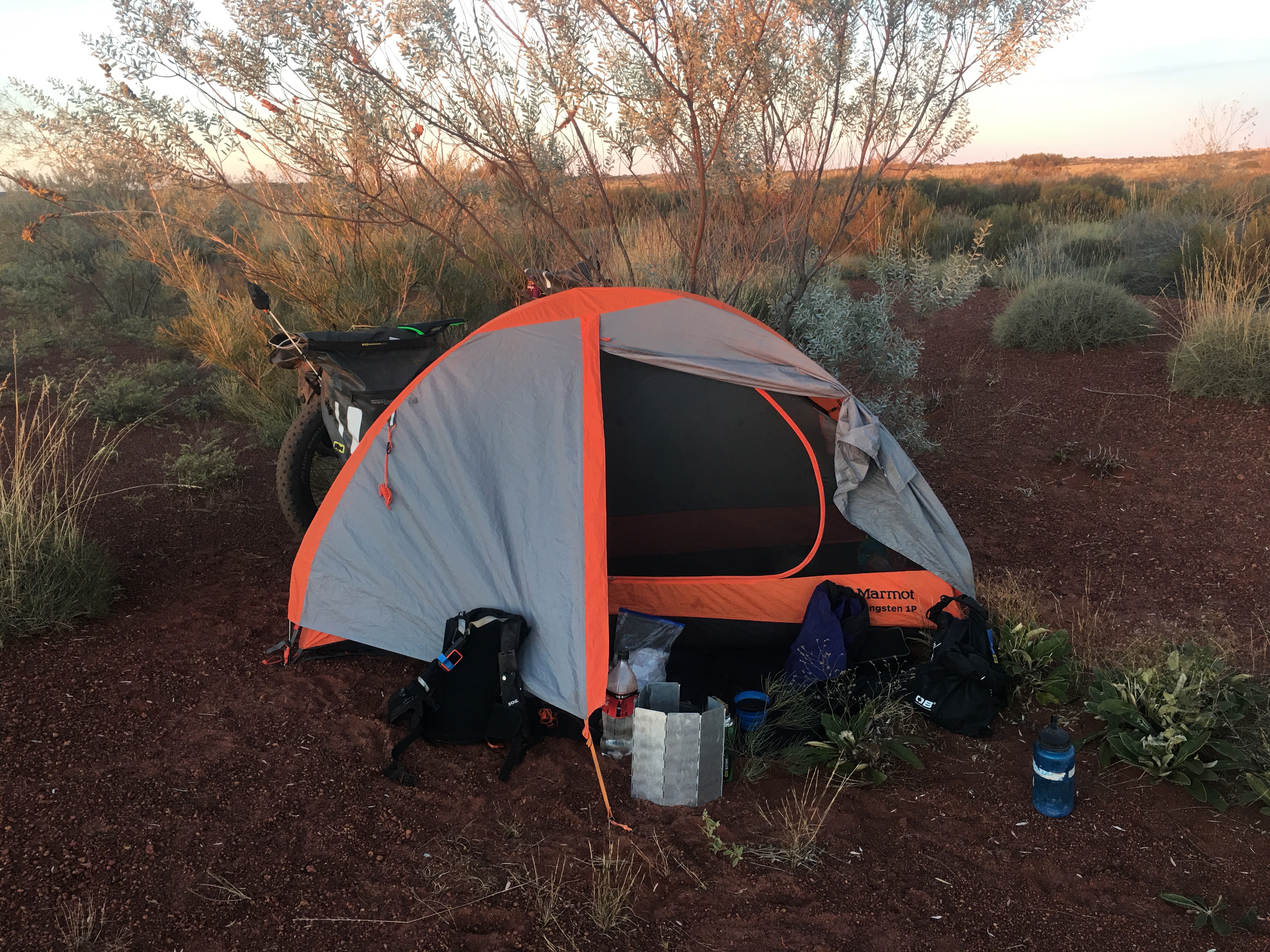 We were getting close to doing our kms for the day when I spotted this side road and it was too good to pass by. It’s a great spot with no tire tracks. It tucks back behind road height for a perfect ninja camp.