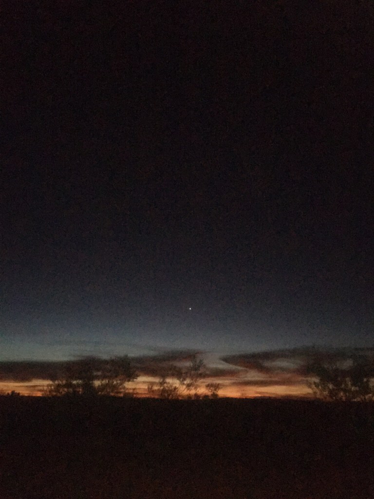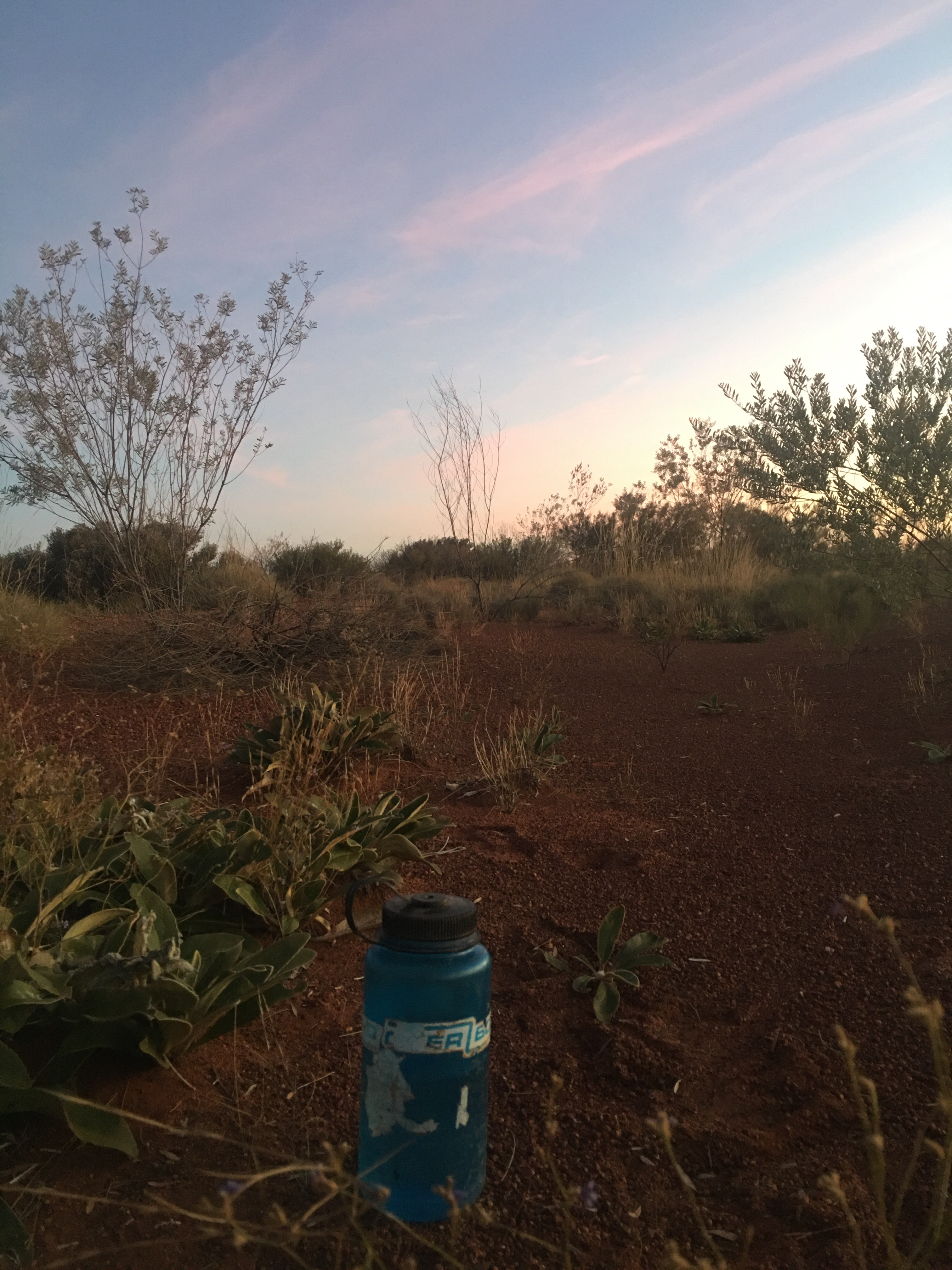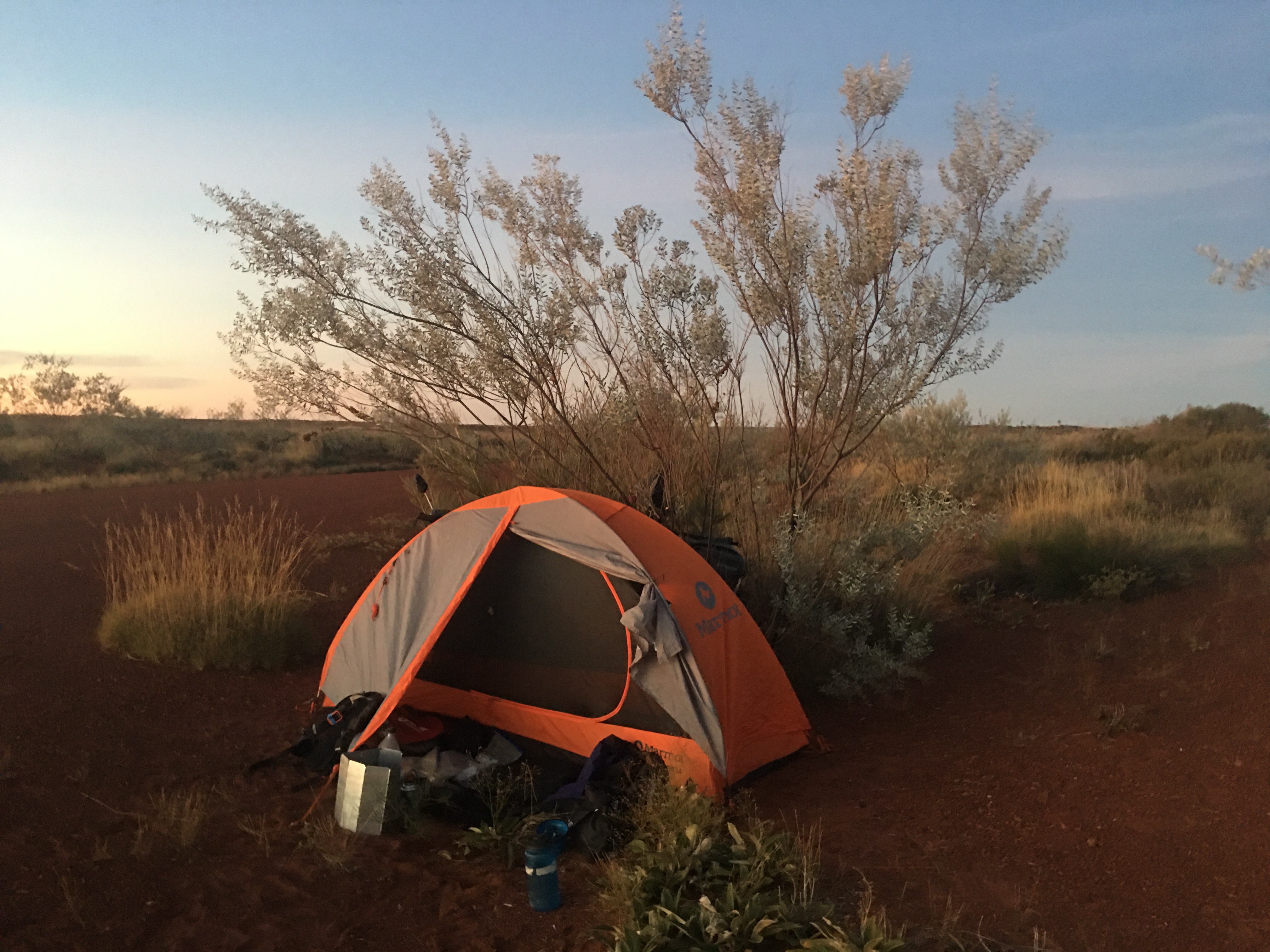 The moon hasn’t risen as yet so the evening star and his early mates are shining pride of place in the night sky. It’s a beautiful night and I’m savouring the silence. This time of night is so quiet with a stillness that’s intoxicating. The wind stops and the birds have all tucked in for the night. So it’s just me, Banjo and the desert bush land hanging out on our first ninja camp to Tjukayirla.