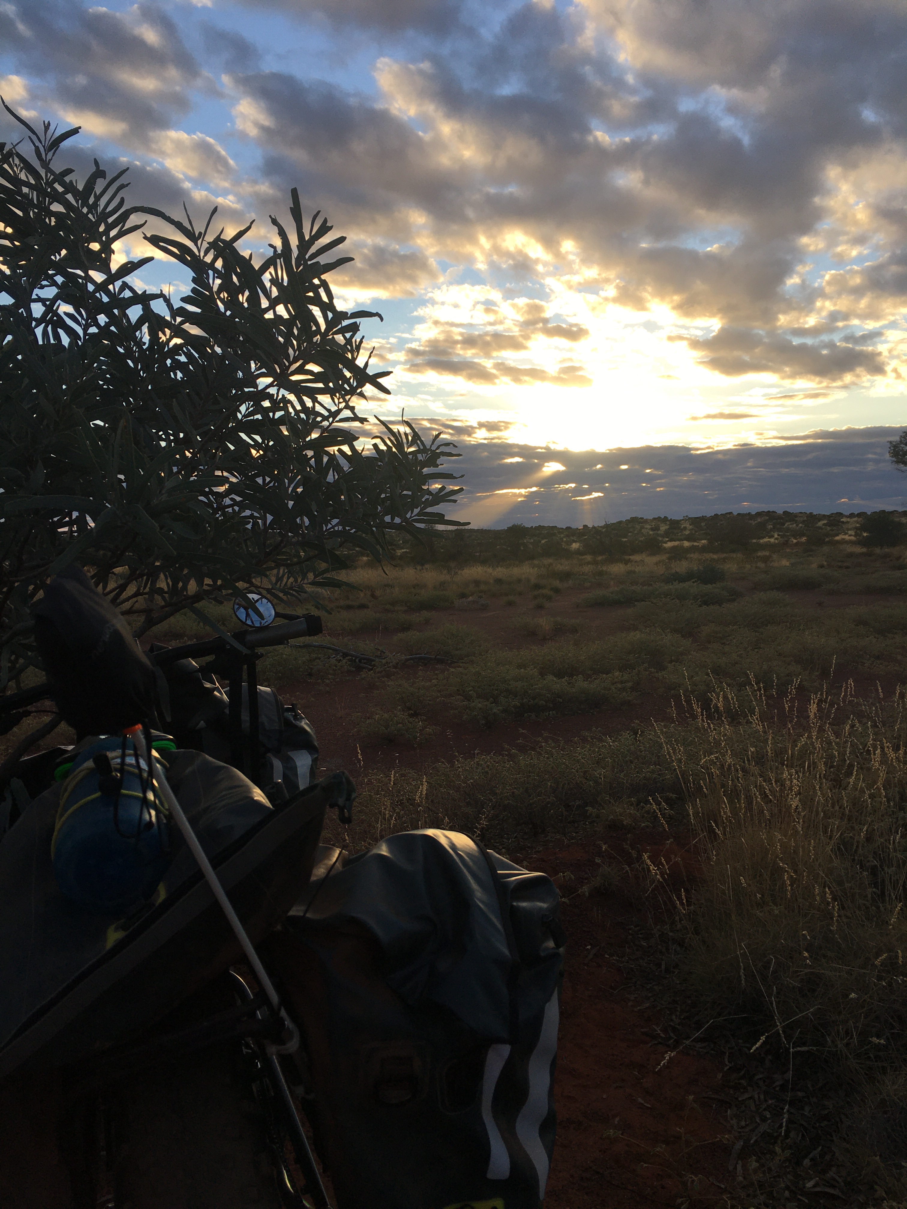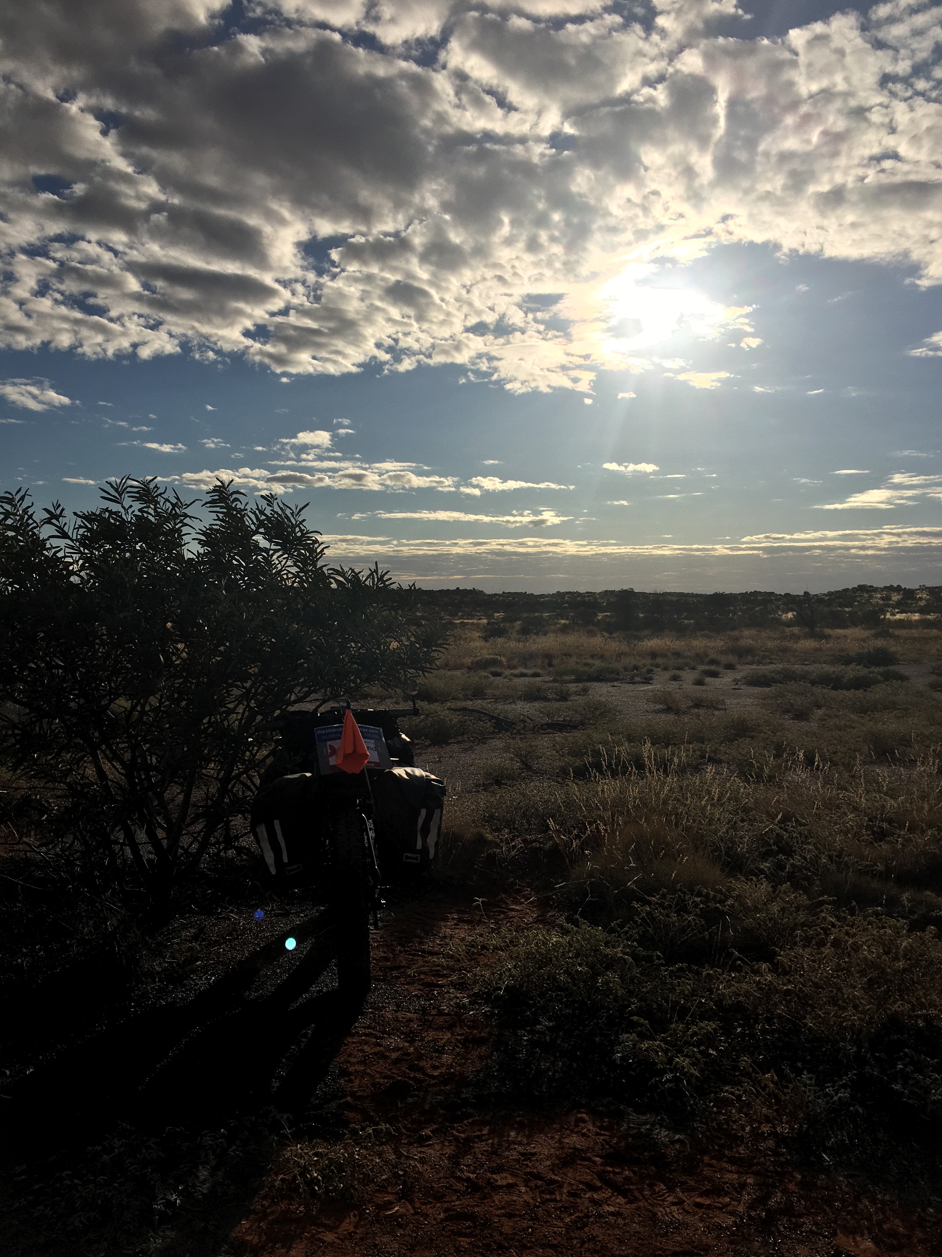 It was a beautiful day and even though the road was a bit rough and the side wind was strong, we were happy to be riding the 50km to Tjukayirla.