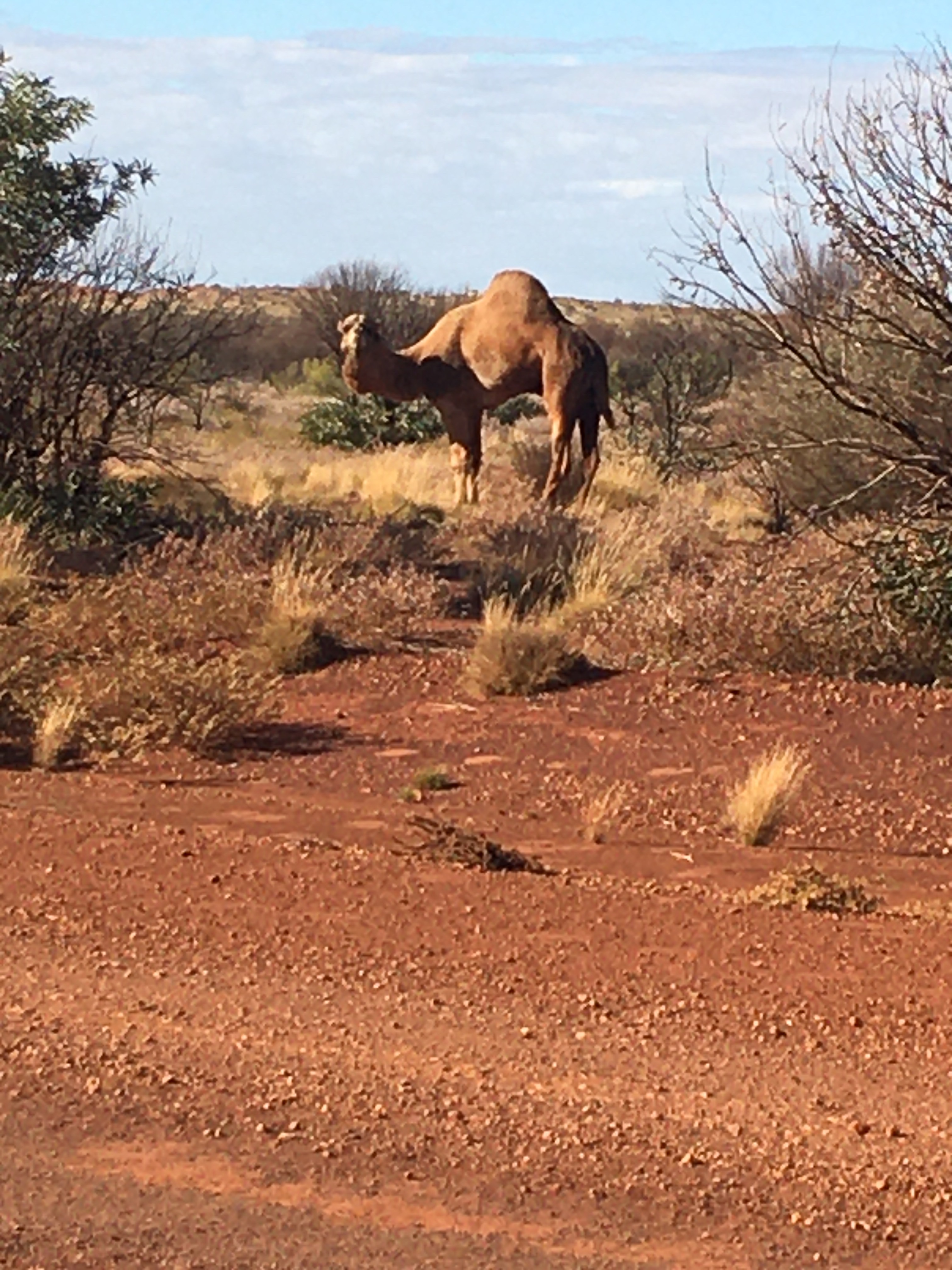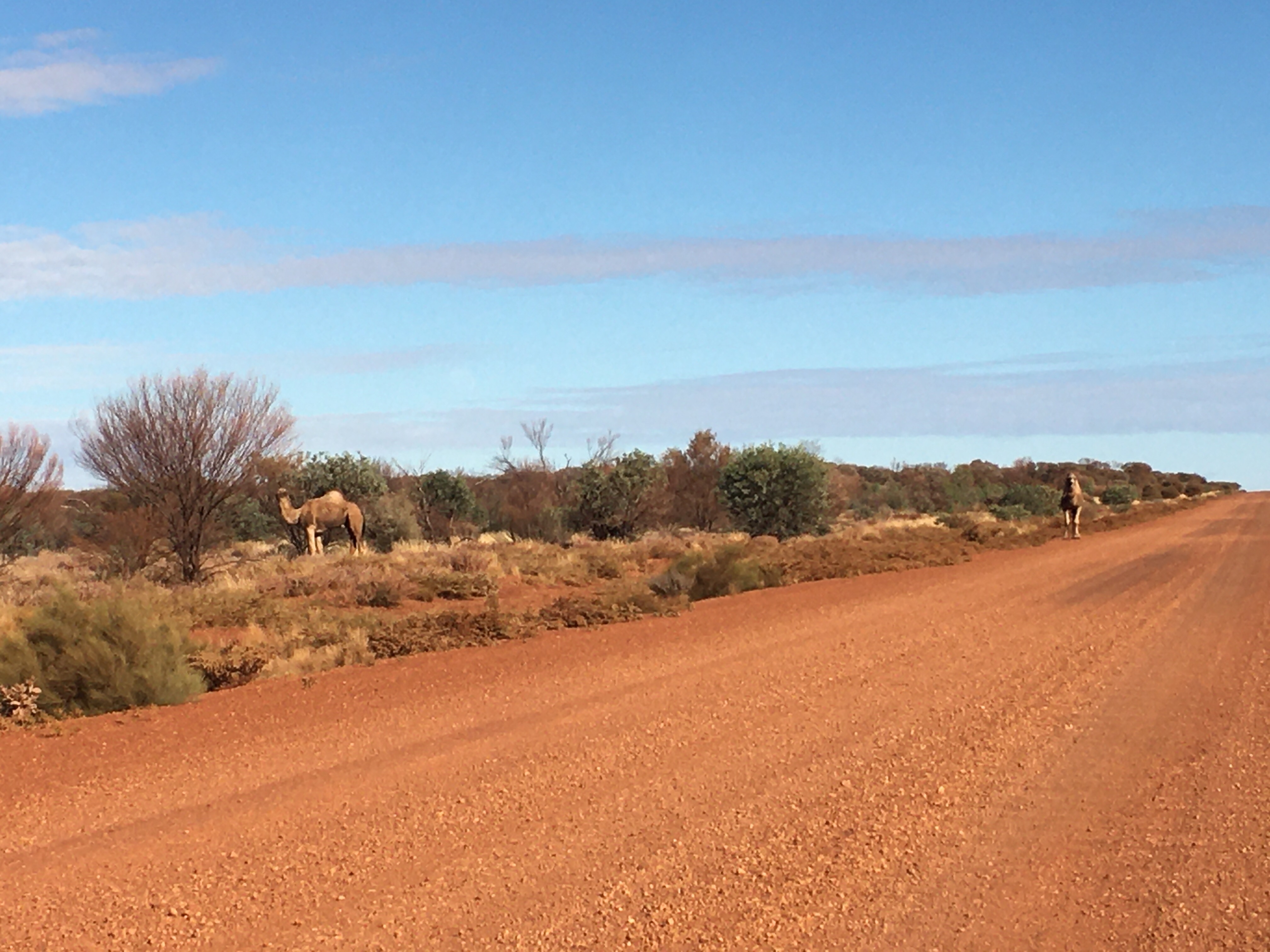 Daddy was the biggest with darker patches on his head, hump and rump. He stayed on the road and kept a keen eye out on us while mummy and baby walked off safely. What as awesome protector he was, well done keeping your family safe. I managed to get some precious footage and photos and loved every moment of our meeting. Although they’re not native, camels are a huge part of our colonial history enabling explorers to trek our desert country. They looked very much at home and part of the landscape. It’s a great sight and particularly by bicycle which brings me up close and personal to nature’s best.