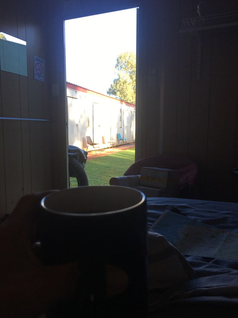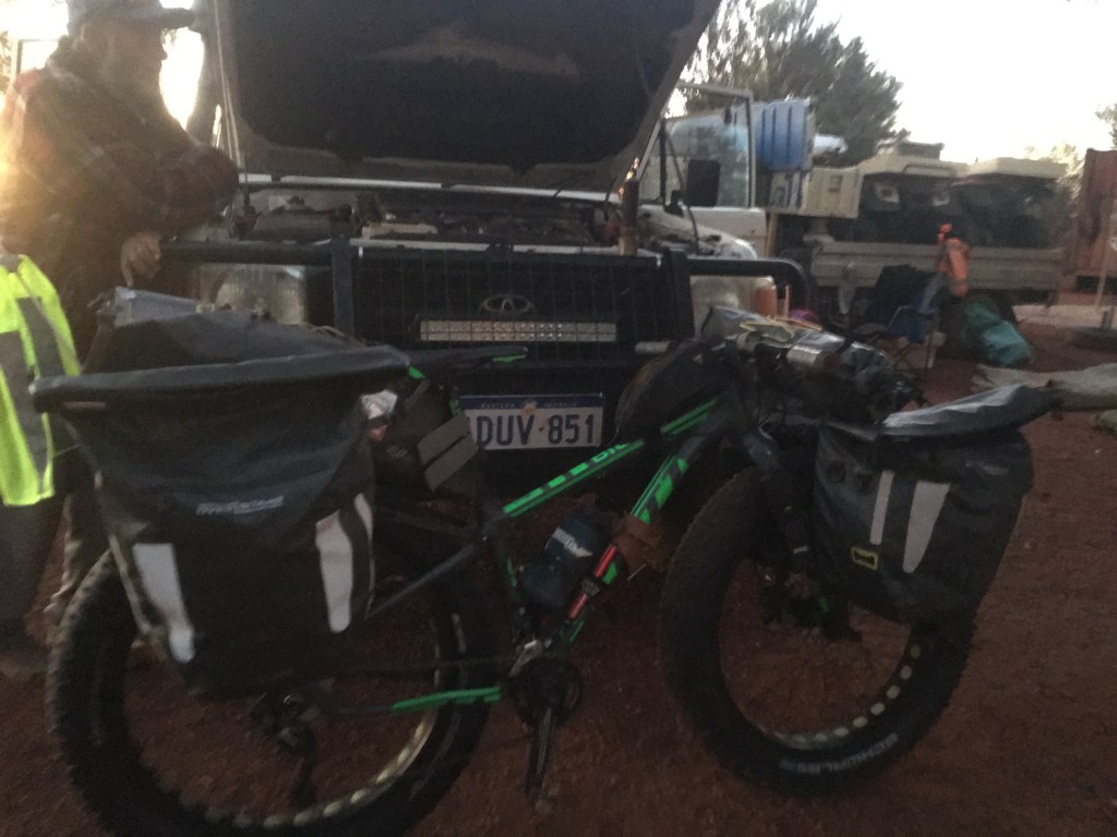 I had difficulty seating the tyres back into place with the hand pump. It’s the one bit of essential kit that continues to be my nemesis. There’s a couple of guys staying at the campgrounds while they do work in the area. They’re out in the neighbouring bush land taking samples for a mining company and we’re back at camp after lunch.