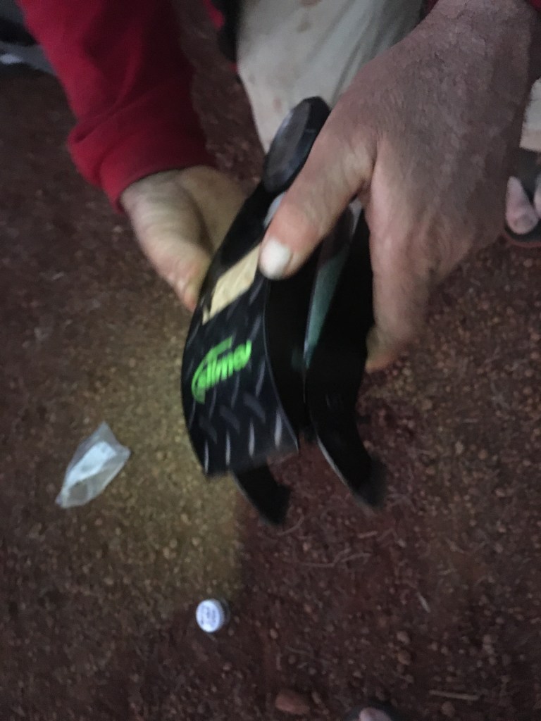 Banjo needed his back tyre tube changed with new silicone in both. This was a new experience for me. I was able to remove the core valve using the leather man pliers on loan from Ian who I met at Warakurna Roadhouse. The tubes, silicone and other essentials were in the Wiluna postal pack for the job at hand. It all went to plan and now the boy is running the right gear to tackle the track conditions on Wiluna North Road. Mum also popped in the pack, a new flag that she made out a high vis vest. Great job darling. Banjo looks the goods!! In addition I have an extra battery bank which means I can charge up my essentials for a week before needing access to power. I have solar panels as a back up if needed.