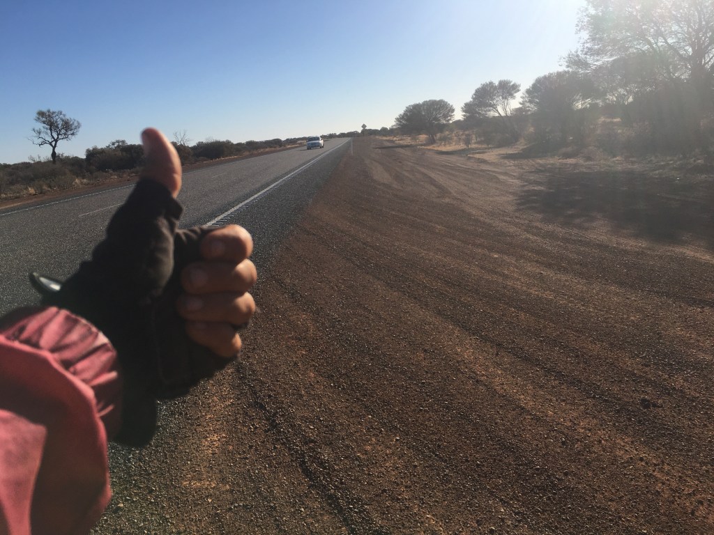 The road carried a lot of traffic from Perth up north. We were back in the groove waving to road trains. Turning right meant we found the headwind again so I couldn’t dodge that bullet unfortunately. All good. We had the day to do the remaining 90kms. The highlight of the day was the people I met. It was such a welcomed surprise.