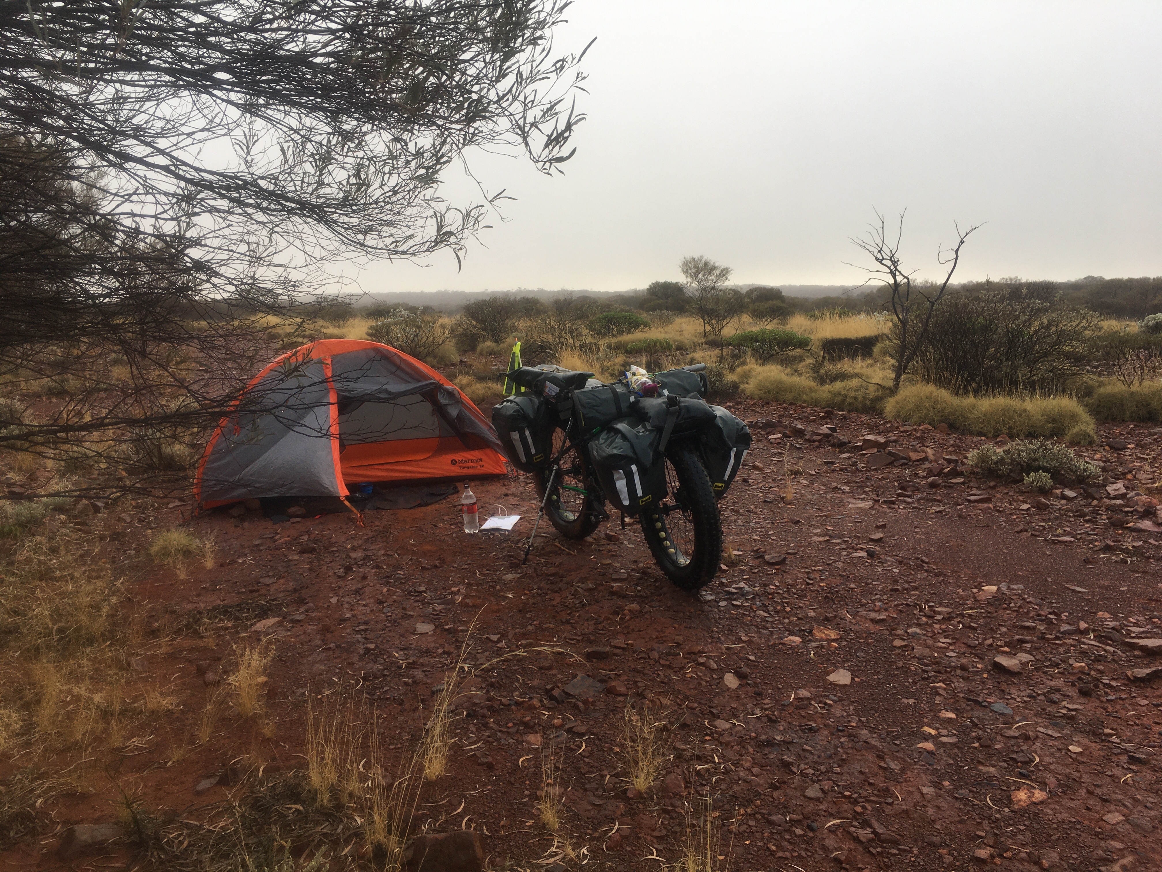 We packed up camp and set off to tackle ‘come what may.’ I couldn’t believe our luck!!! The unexpected weather was blowing up from the south west. This meant the wind was over our left shoulder and it carried us like a wedge tail north to Newman. The legs were soo happy to finally be able to spin at a higher cadence. It burnt off the lactic acid build up that was causing cramps and muscle soreness the last few days. It also got the happy hormones charged up again. The world seemed just that bit brighter today even in the rain 🤣