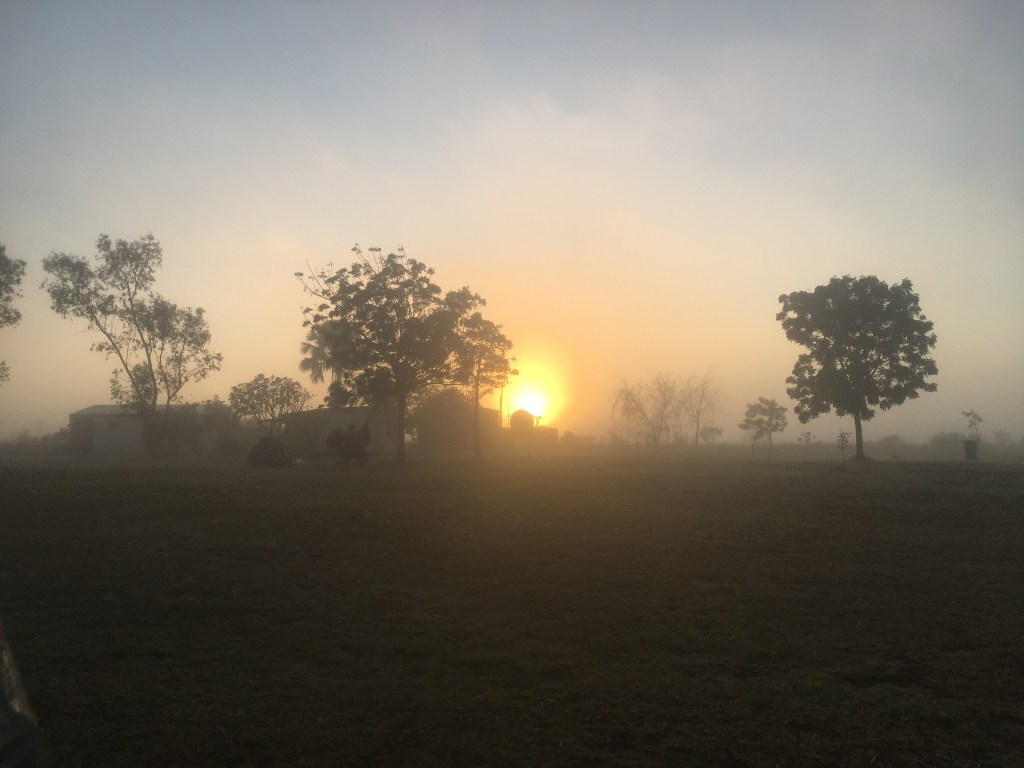 We got up early hoping to be on the road before the heat turned up. I woke to a heavy foggy and the sun glowed eerily as it rose.