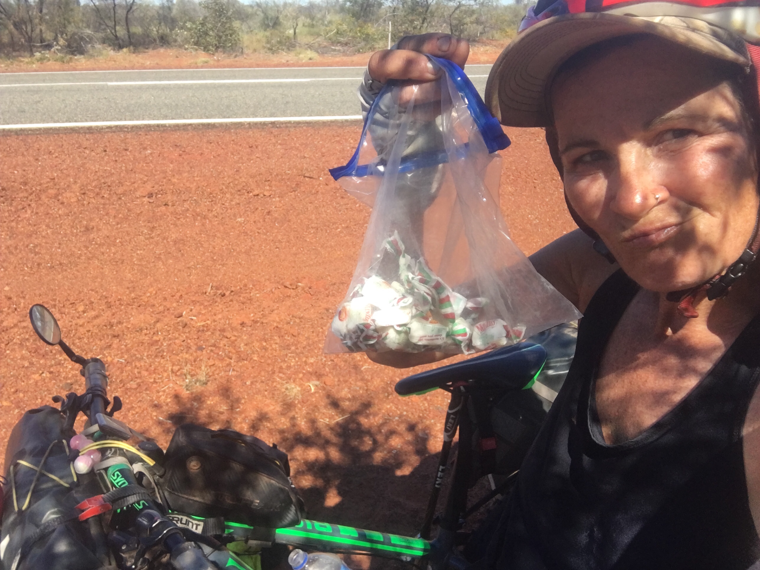 I enjoyed the time spent and hit the road in good spirits for the last stint to Sandfire. We broke the last 40km up into 2 x 20km with minty rewards each 5kms. Minties always do the trick on tricky days!!! They’ve become a staple treat in my postal packs. Thanks Mum xxxx
