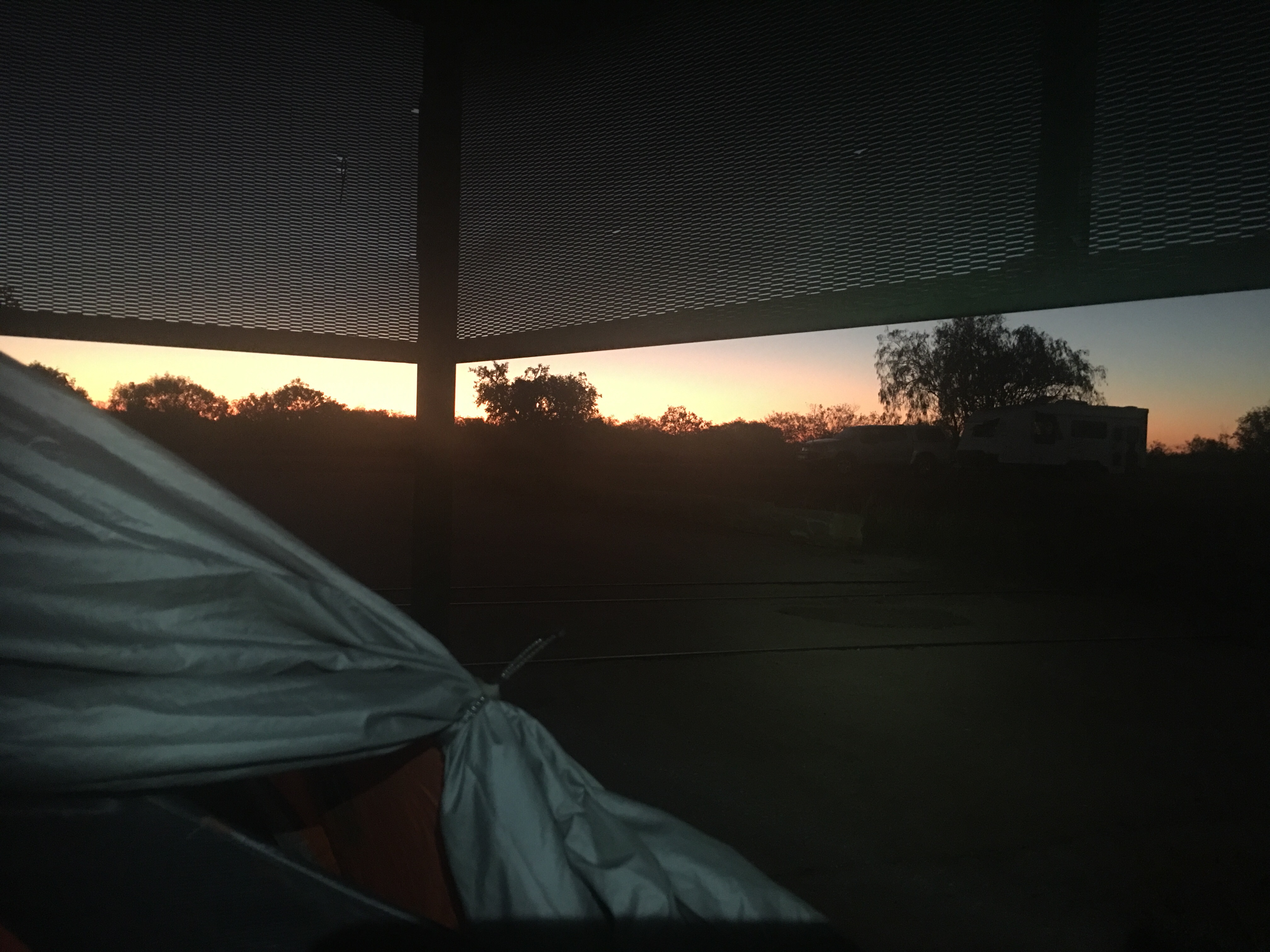 Yesterday was a huge day to Sandfire Roadhouse. We did 142km in tricky heat and arrived in the long shadows before sunset.