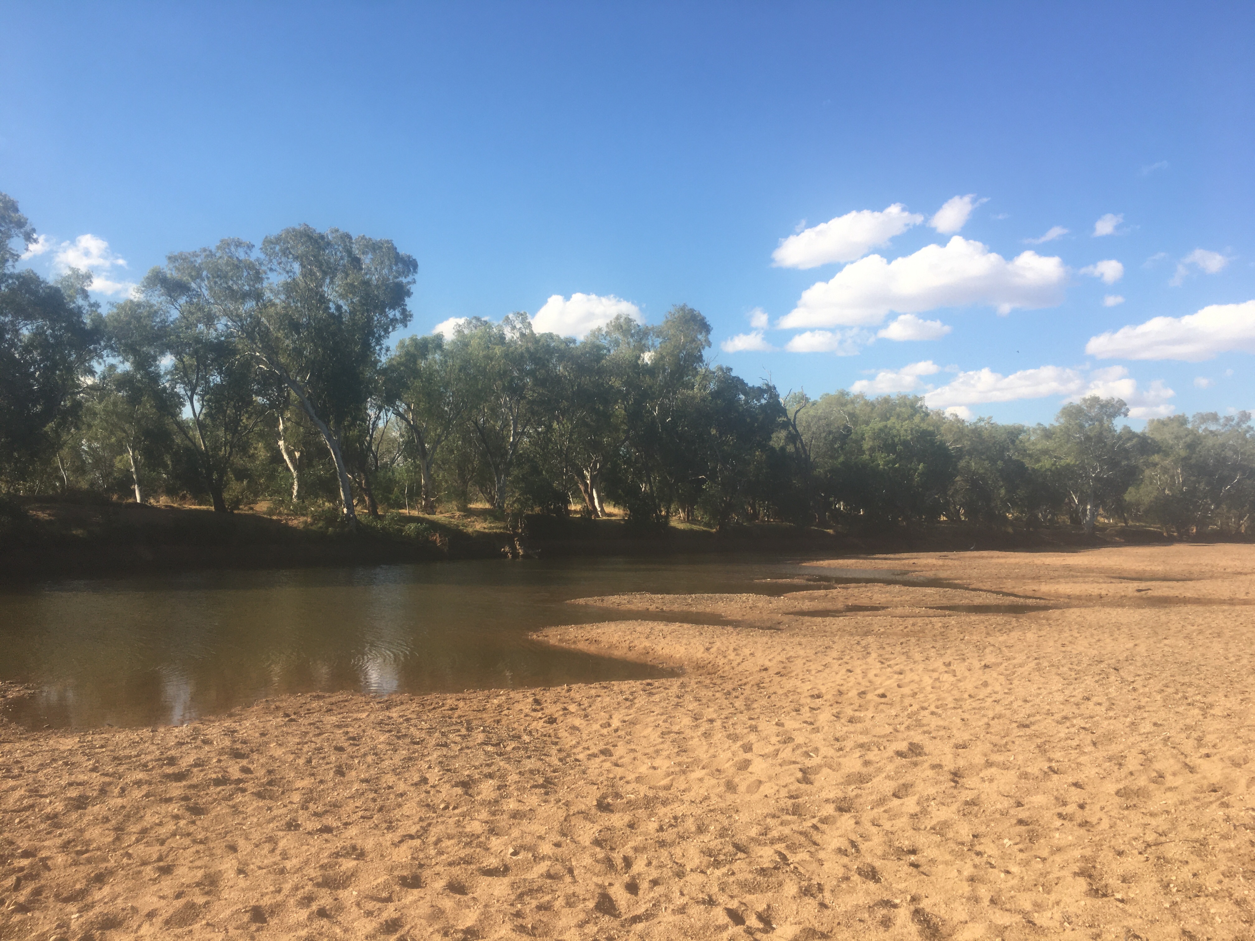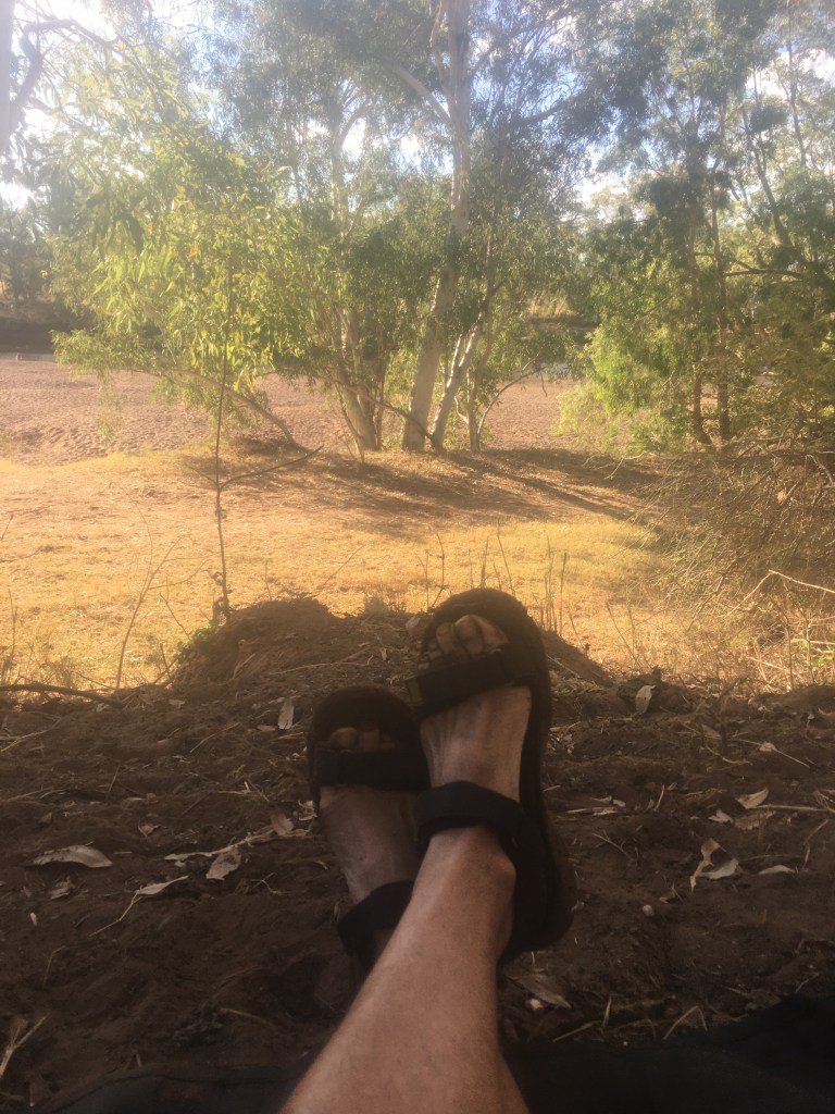 We were 85km into the day when I passed the sign to Mary Pool Rest Area. It was 1km off the road but I was keen to check it out with the other caravans that were turning off. So glad I did!!! That was us for the day. The rest area is on a cattle property right on the river. There’s plenty of room to find a spot under the gums which line the river bank. The trees are full of birdlife and the water is fresh for swimming. Oh bliss!!!