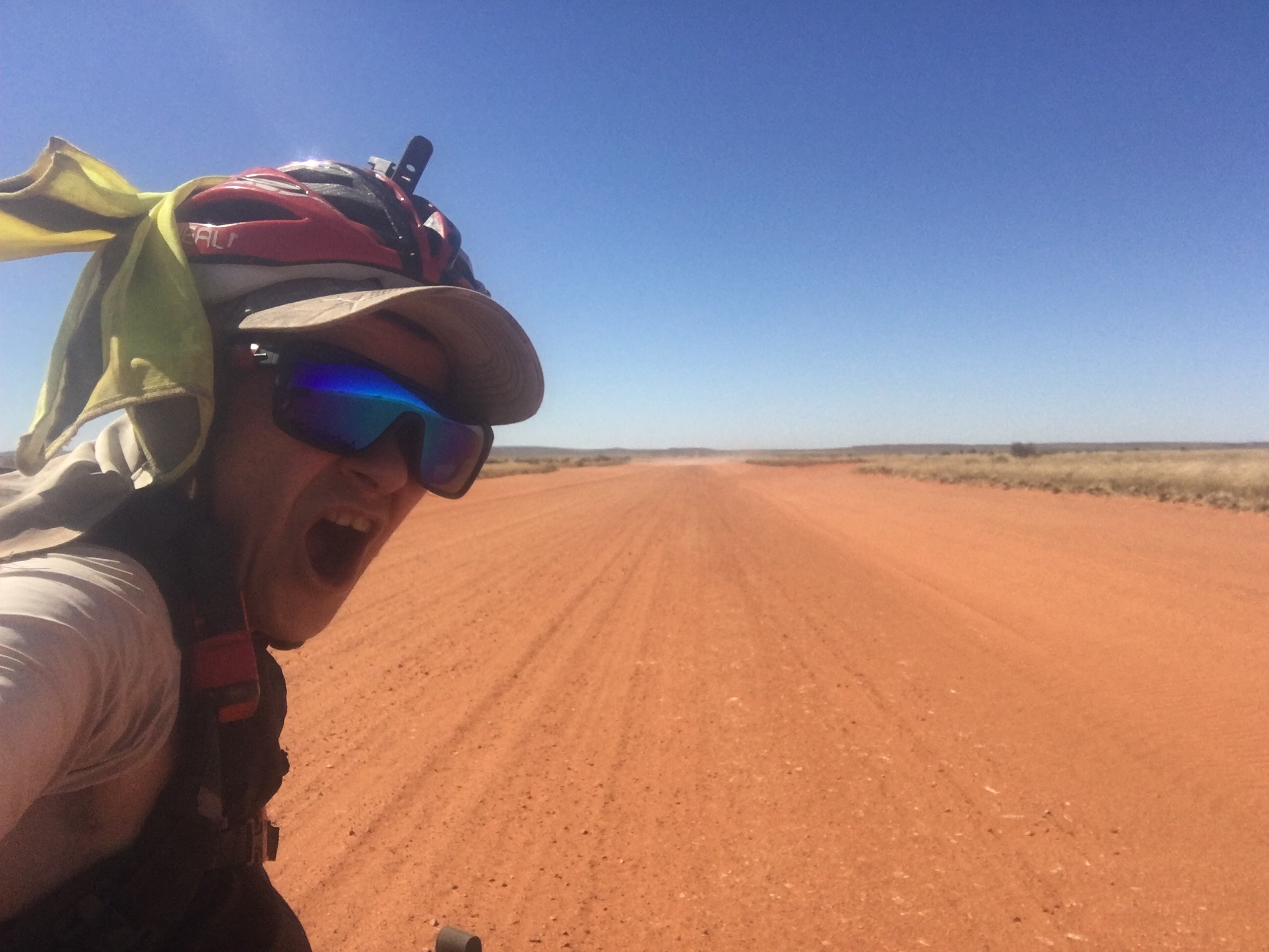It was 9am when we got underway. The riding conditions were really hard. Everyone was commenting about the crazy wind and unfortunately it was a full on headwind. All Banjo and I could do was laugh and set small milestones to chip away the ride. Fortunately the weather is otherwise stunning and the landscape’s at its desert best!!! The road is very straight and sandy and exposed along the desert plain. It’s corrugated with long gradient inclines. We’re slow going for now until a change kicks in. I know how the wind swings and it’s worked in our favour heaps of times before. So we’re just dealing as best we can knowing this time of year is notoriously windy. It just depends on the direction.