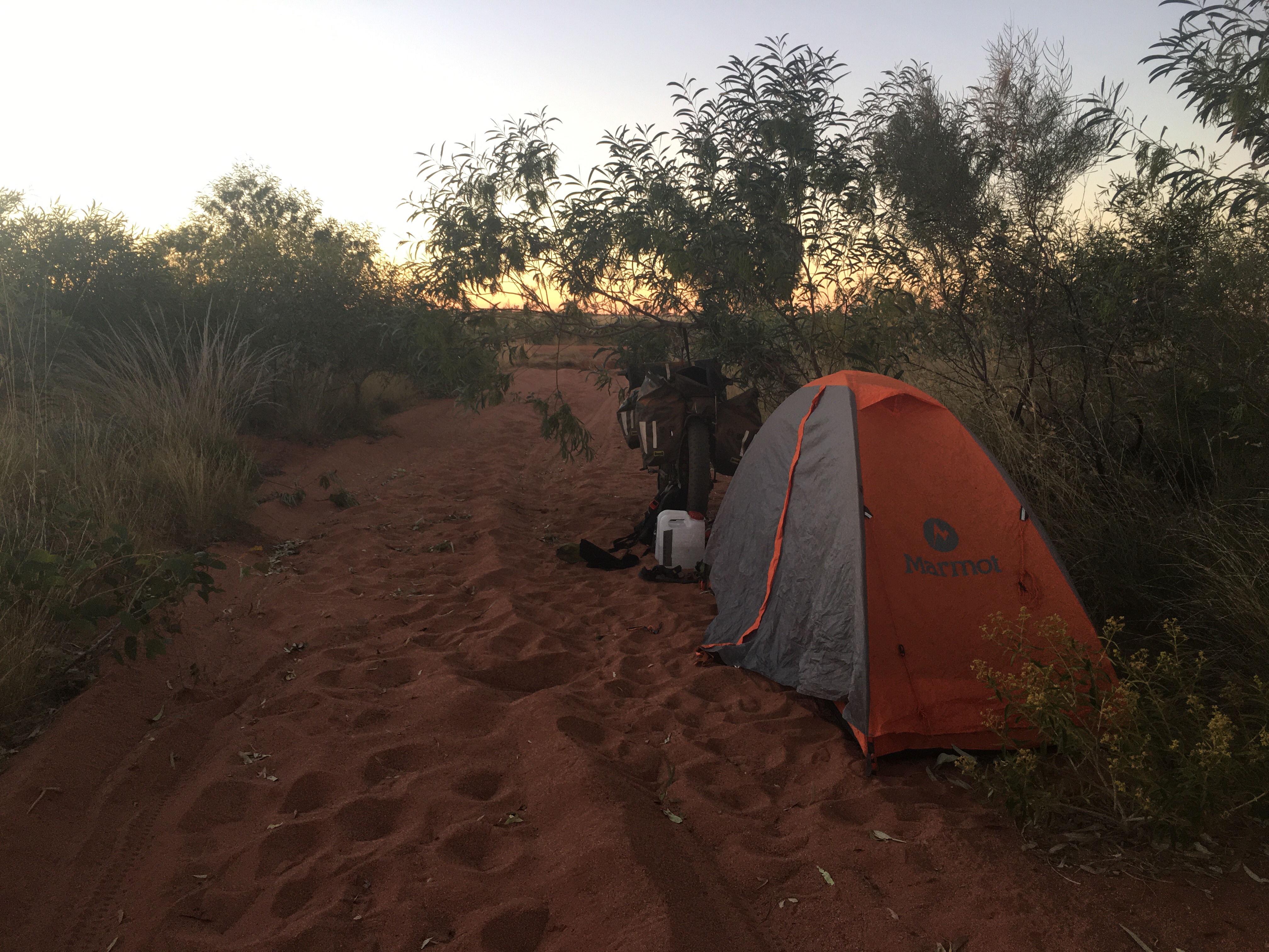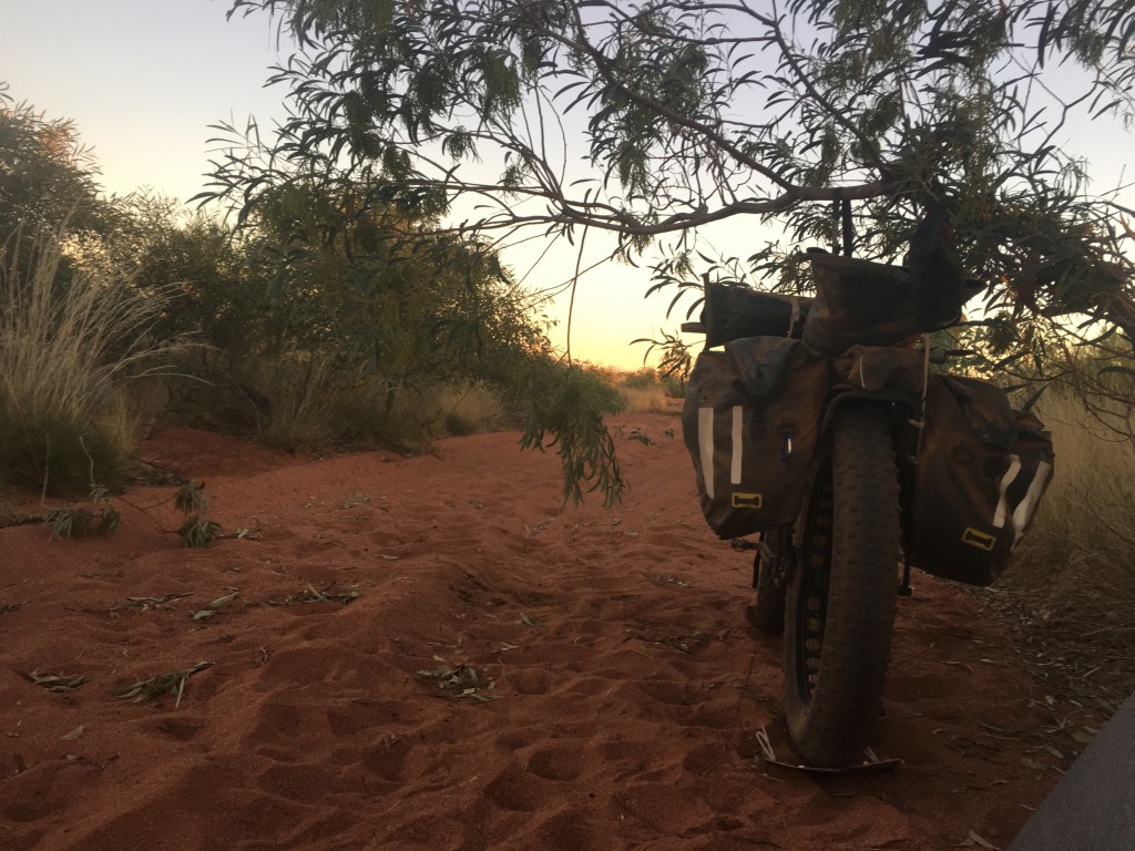 Banjo and I had our first spill in a deep sandy patch. We certainly weren’t going fast 🤣 so no injuries but definitely a sign that it was time to call it a day. It took us another 5km to find a track leading off and we were very happy to spot this camp.