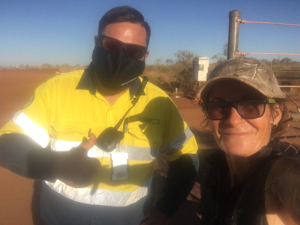 It’s been a mixed day and a hectic 24hrs of events. Yesterday we chipped away at 83kms to arrive at Granite mine by 3.30pm. I called Hamish at security to let him know we had arrived. Granite Gold Mine is where they had the covid case while we were on the Great Central Highway. Hamish came out to the gate wearing a huge smile under his face mask.