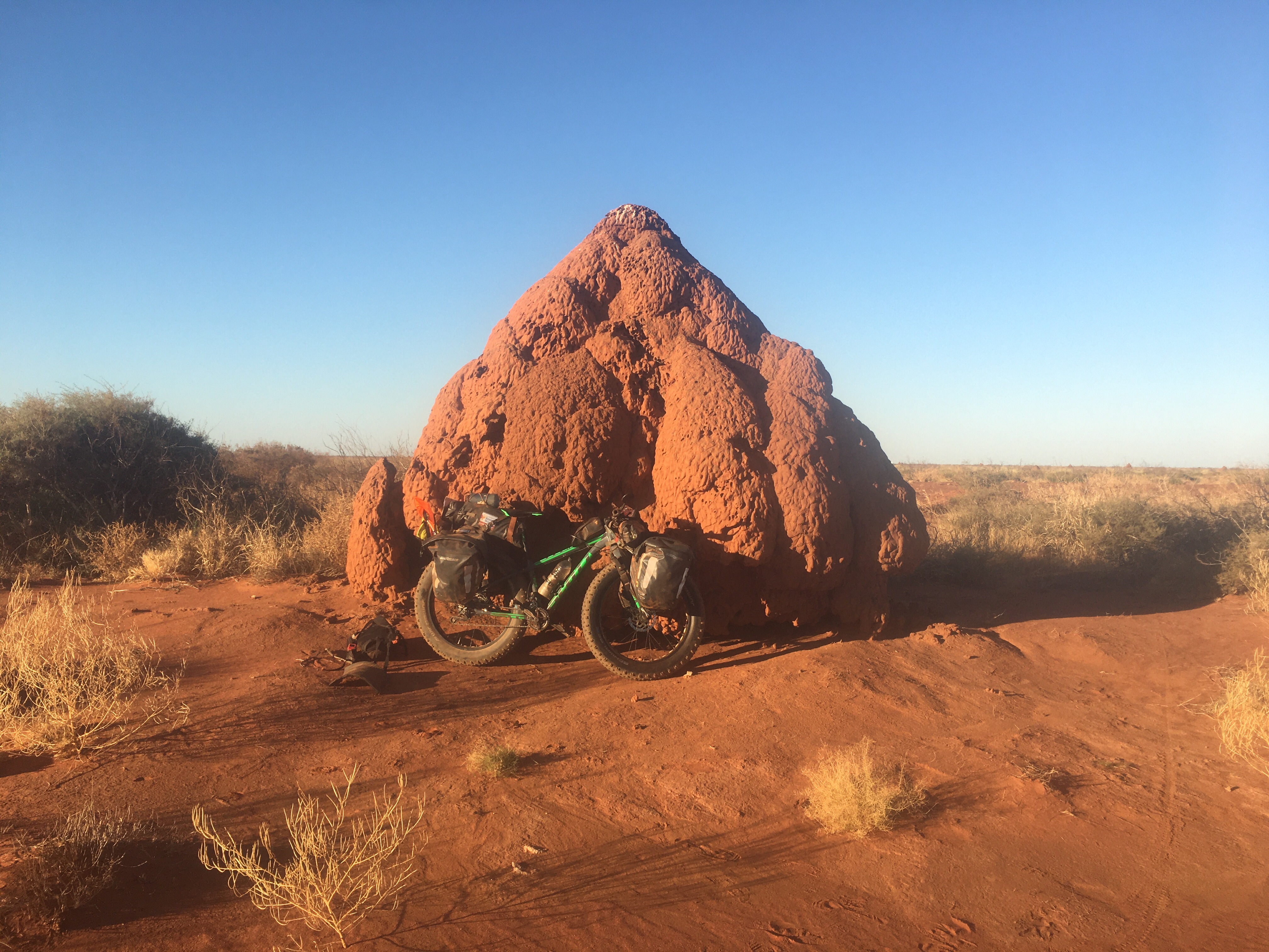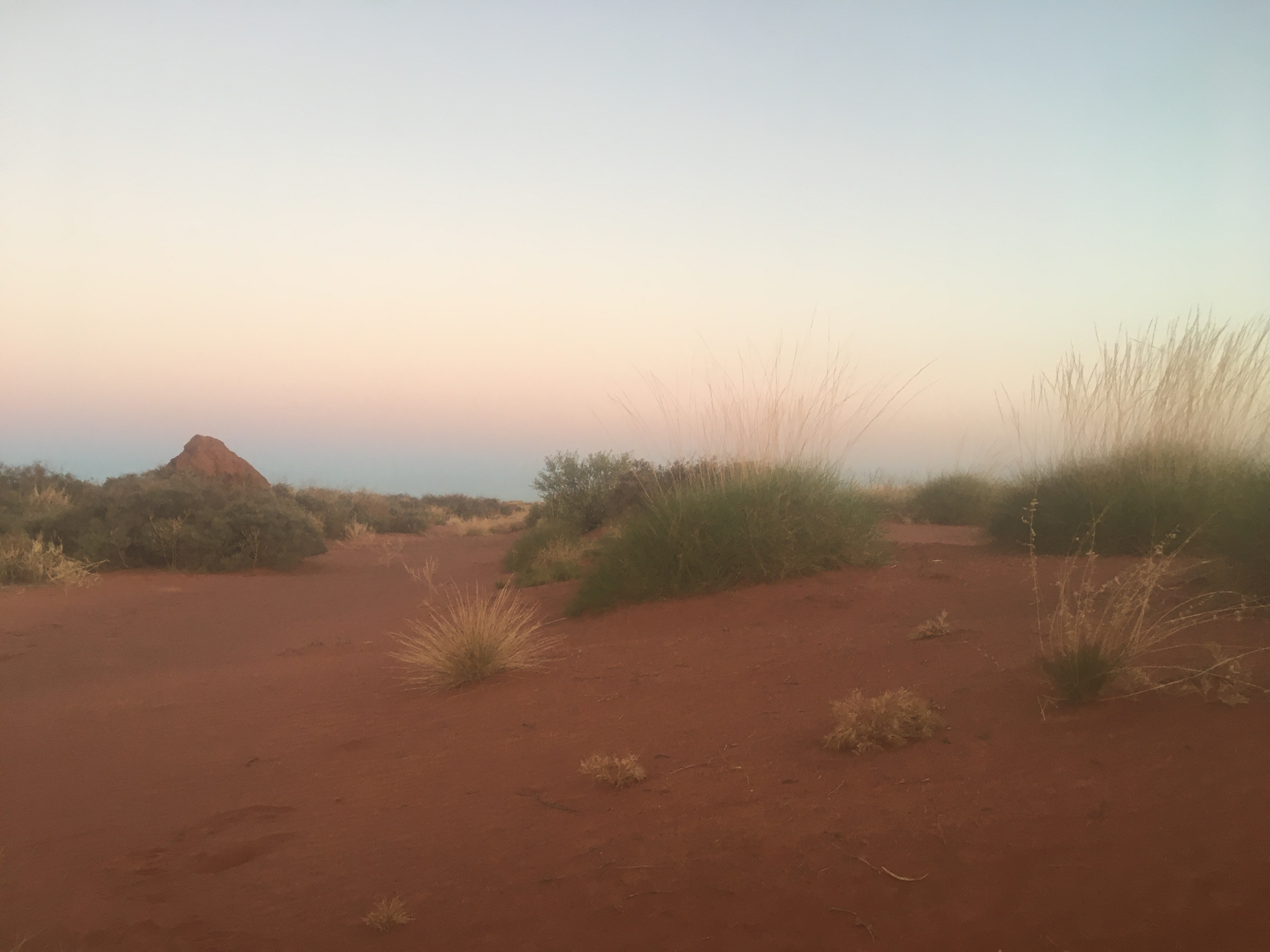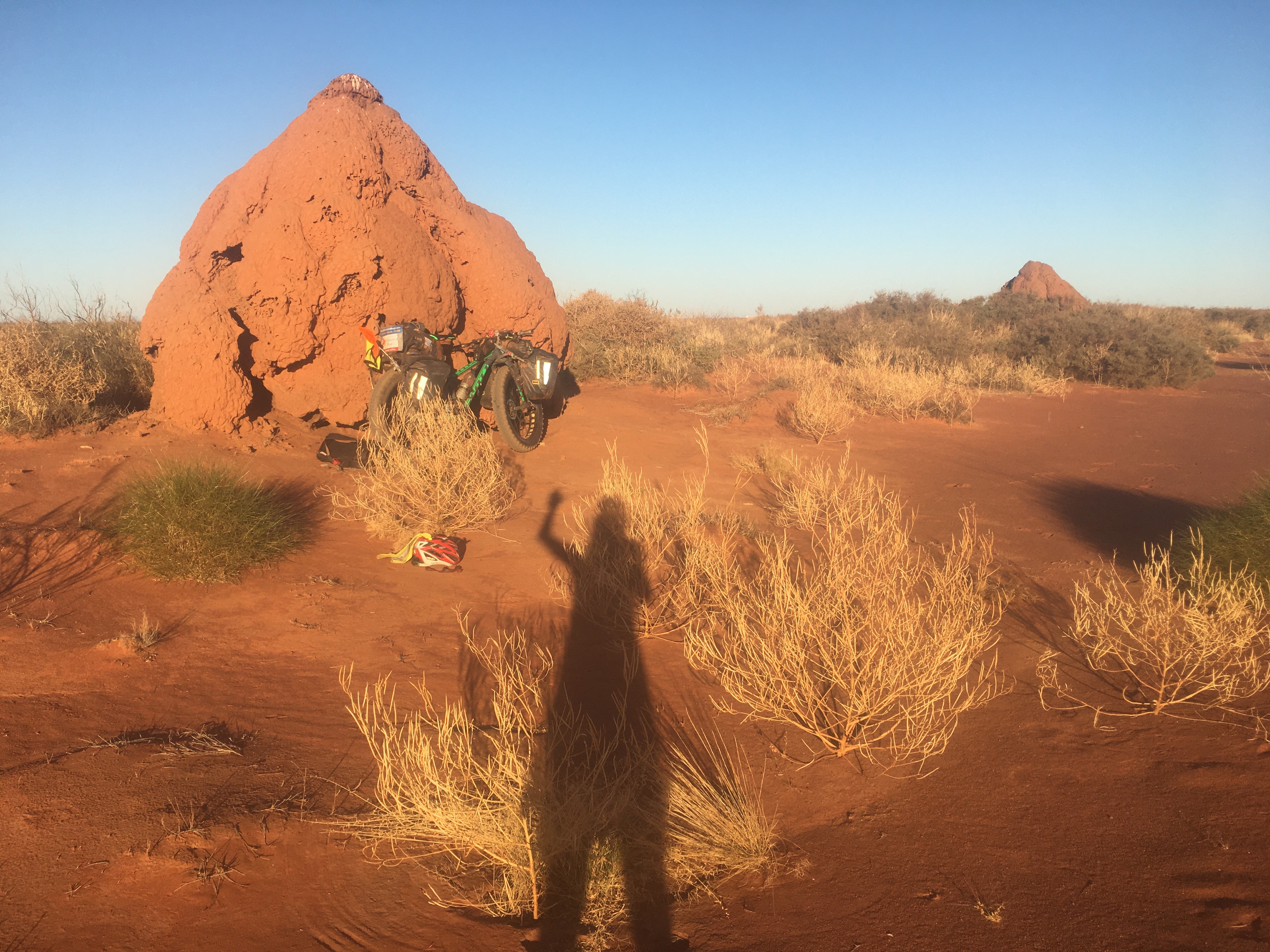 We’re tucked behind an anthill of low lying all burr bushes and spinifex. We rode through similar countryside yesterday and it’s special now to be nestled amongst the scenery under the crescent moon, evening star and a sky full of diamonds.
