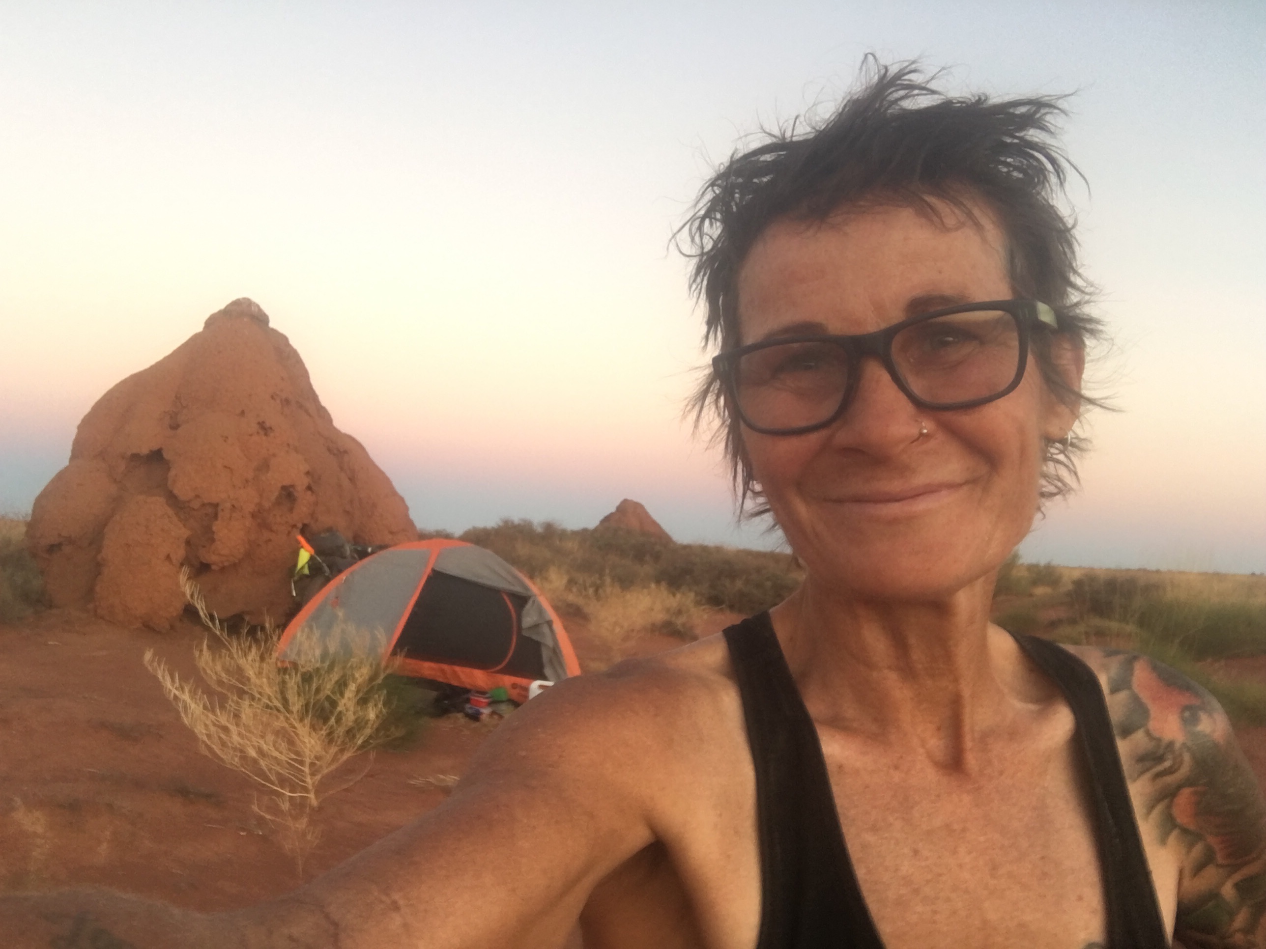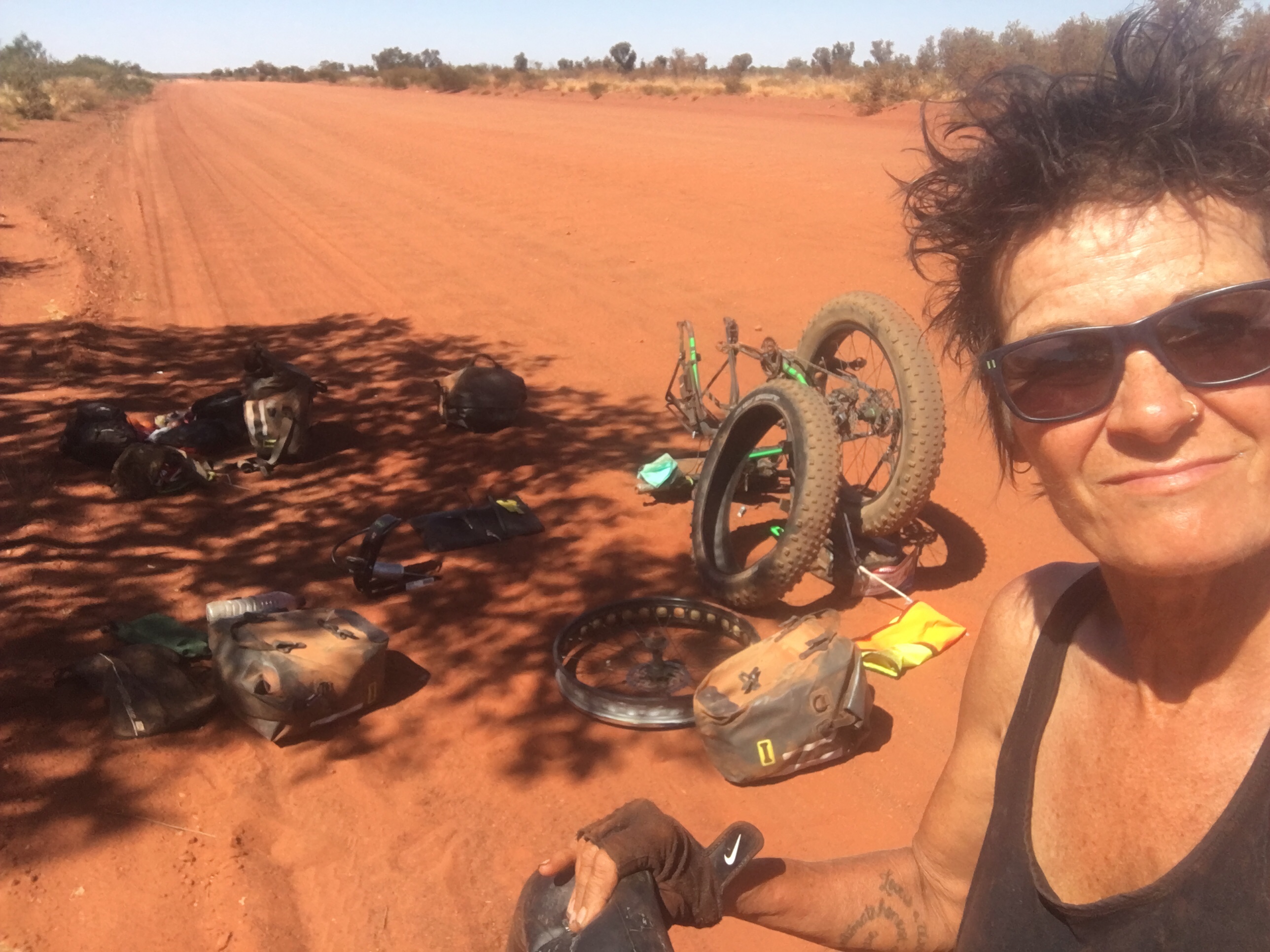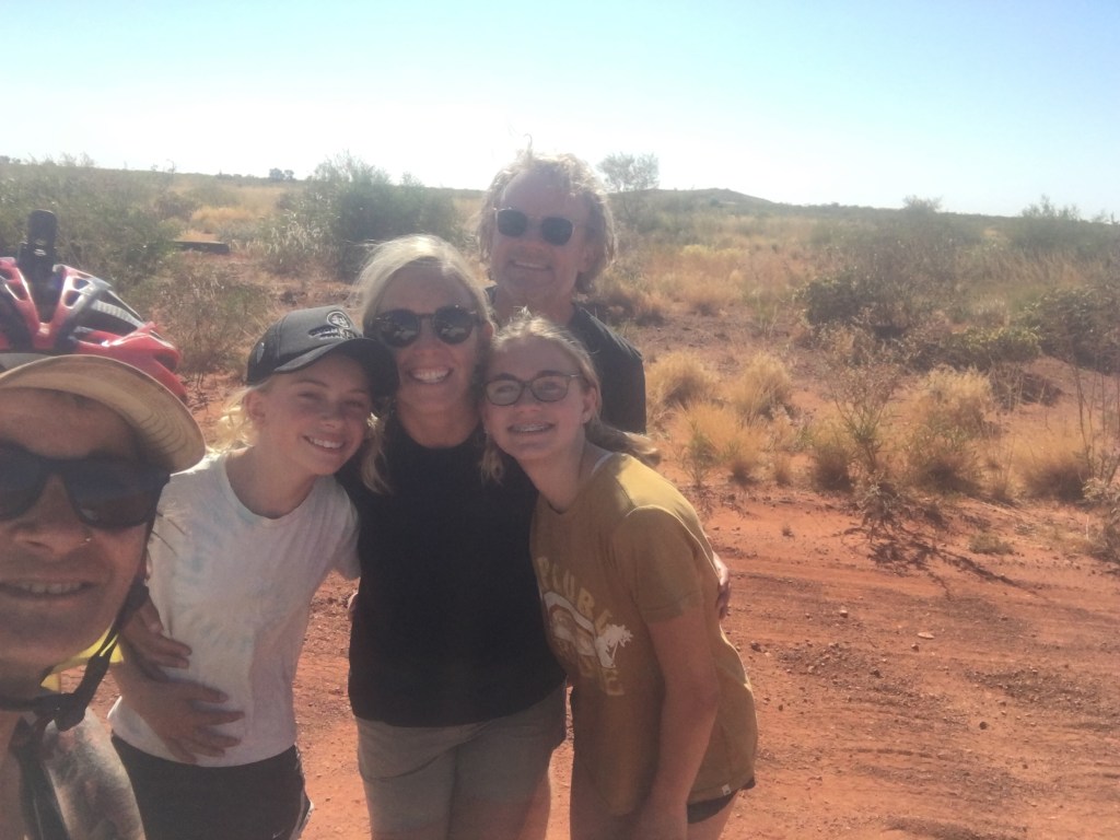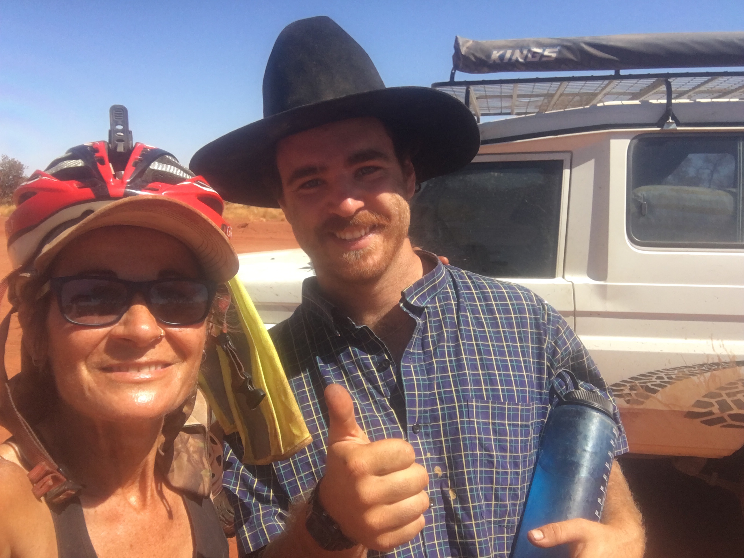 So for now it’s dinner o’clock under the stars with the nighttime crickets. It’s another 215kms ish to Yuendumu. That’ll likely be 2 1/2 days riding so we may have to flag someone down for more water. One peddle at a time and lets deal with tomorrow first. The crescent moon has now set and the stars are once again centre stage and a putting on a magnificent dinner show. By the way, I found my jacket still in its stuff sack before leaving camp this morning. Very happy it wasn’t his size. Night and talk soon xx