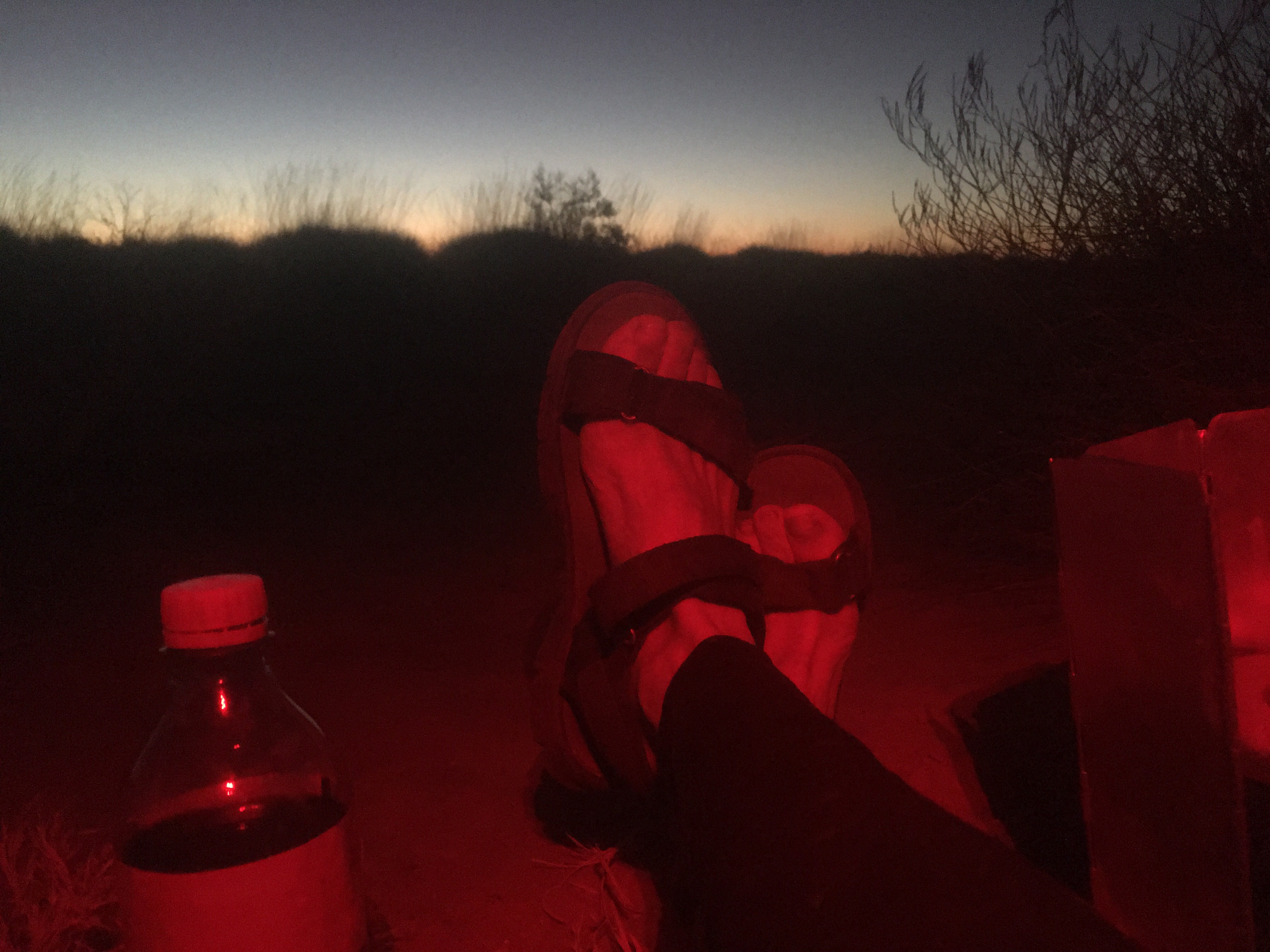 We found this spot at about 4pm and checked it out to find a safe path for Banjo and a tucked away spot to set up camp in time for sunset. We’re behind a monster anthill and shrubbery so it’s a ninja camp from the road. I spotted a rabbit and there’s a bunch of camel tracks. There’s no signs of dingos but I have my whistle close by just in case after last night’s debacle. Only the bugs know we’re here and they’ve turn out in numbers to welcome us 🤣