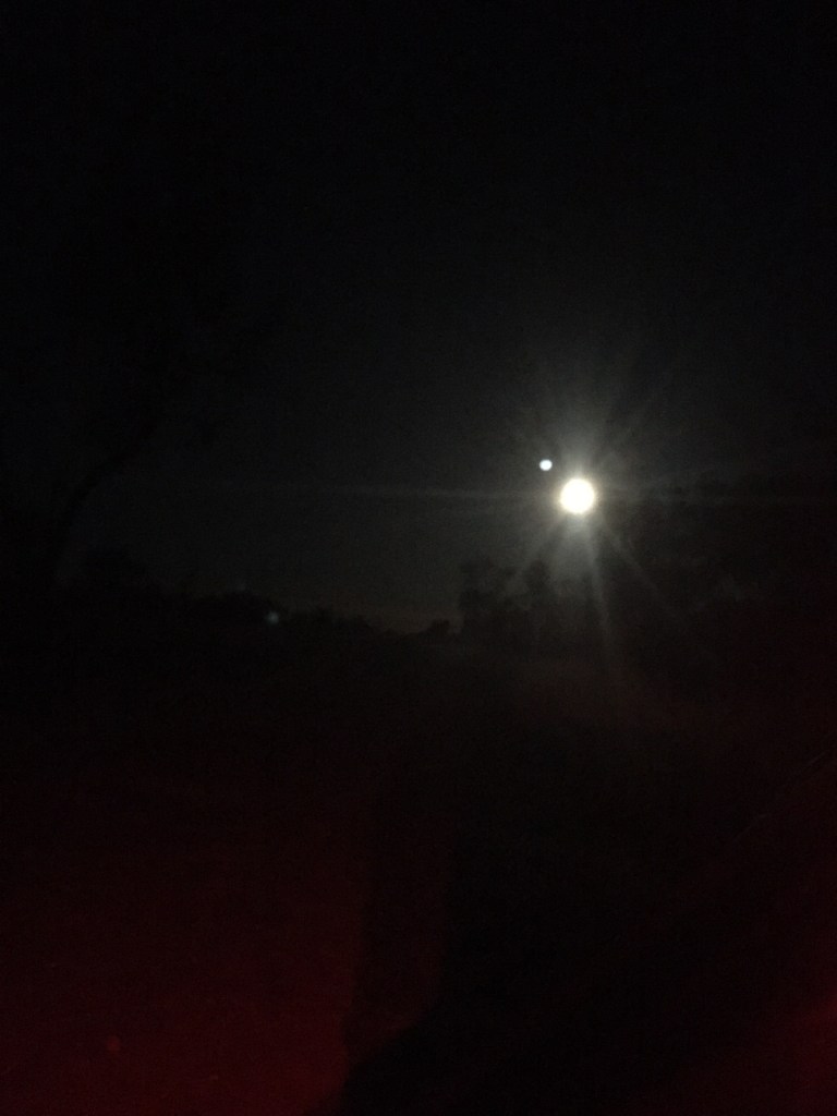The moon is rising on the horizon all orange and egg shaped. He’s still as handsome as ever and perfect company for dinner. Beds not too far off as it’s super chilly. There’s a frost forecast for the morning!!! Night and talk soon xx