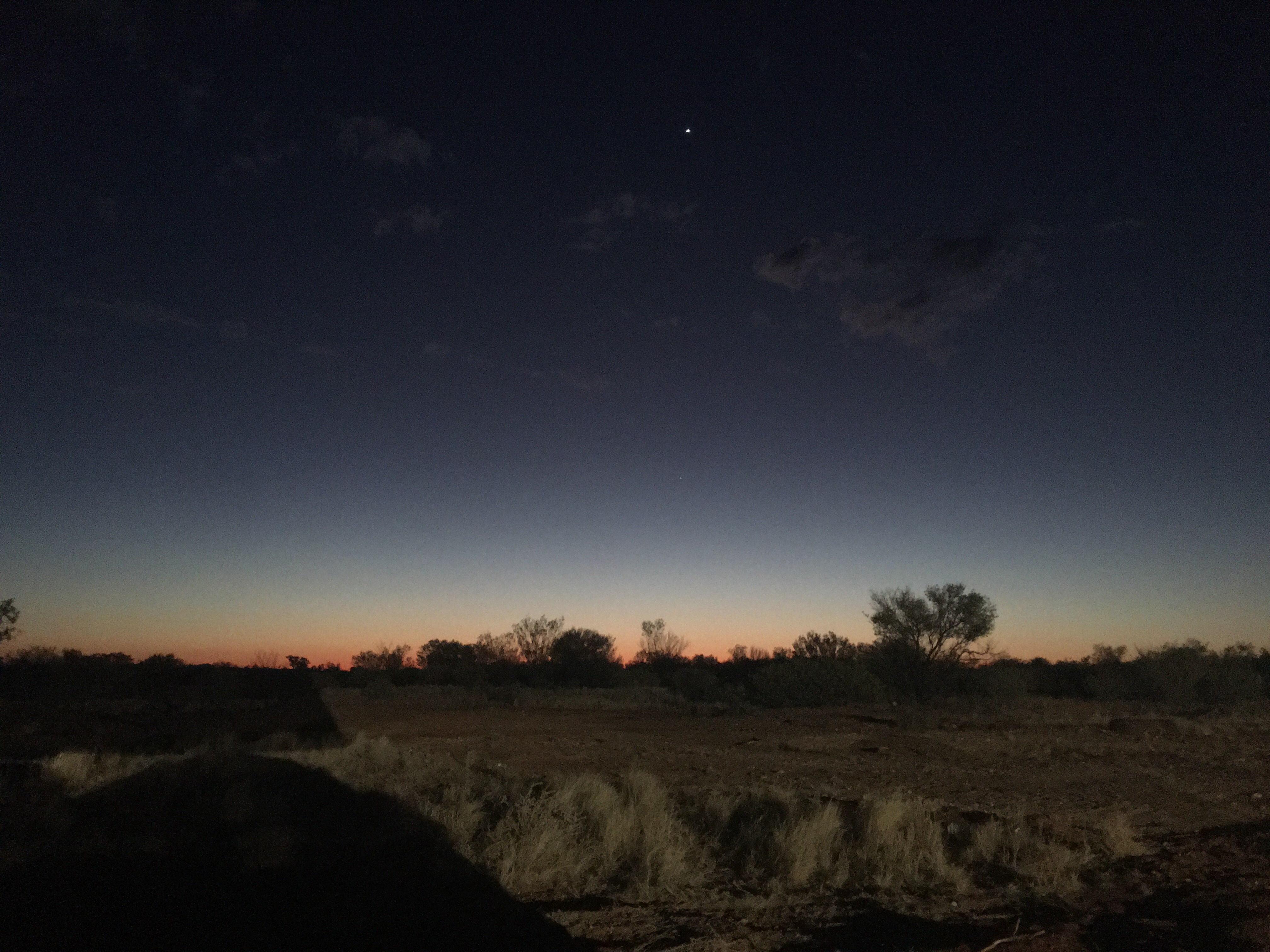 We passed a point of interest on Wiki camps that was called ‘Street Art – Oil Can Coyboy.’ Very quirky in the middle of somewhere. Back in Yuendumu, I used the phrase ‘middle of nowhere’ when I was talking with Frank and Wendy. Frank said that every spot, even the most remote, is always somewhere. Point now taken!!