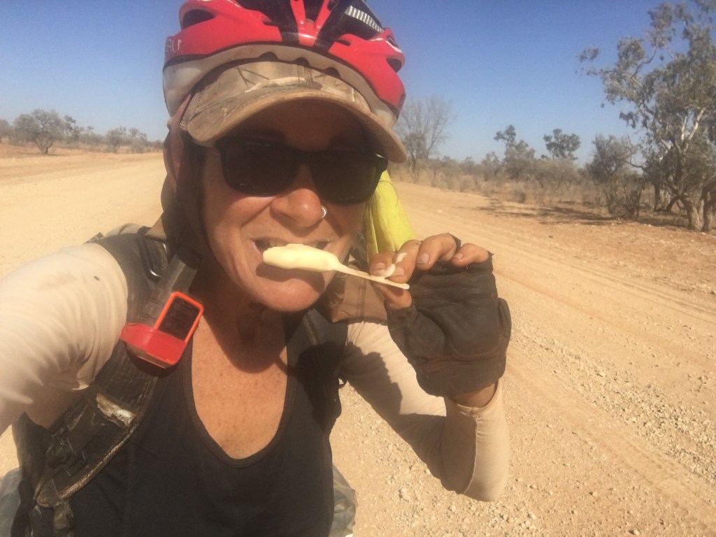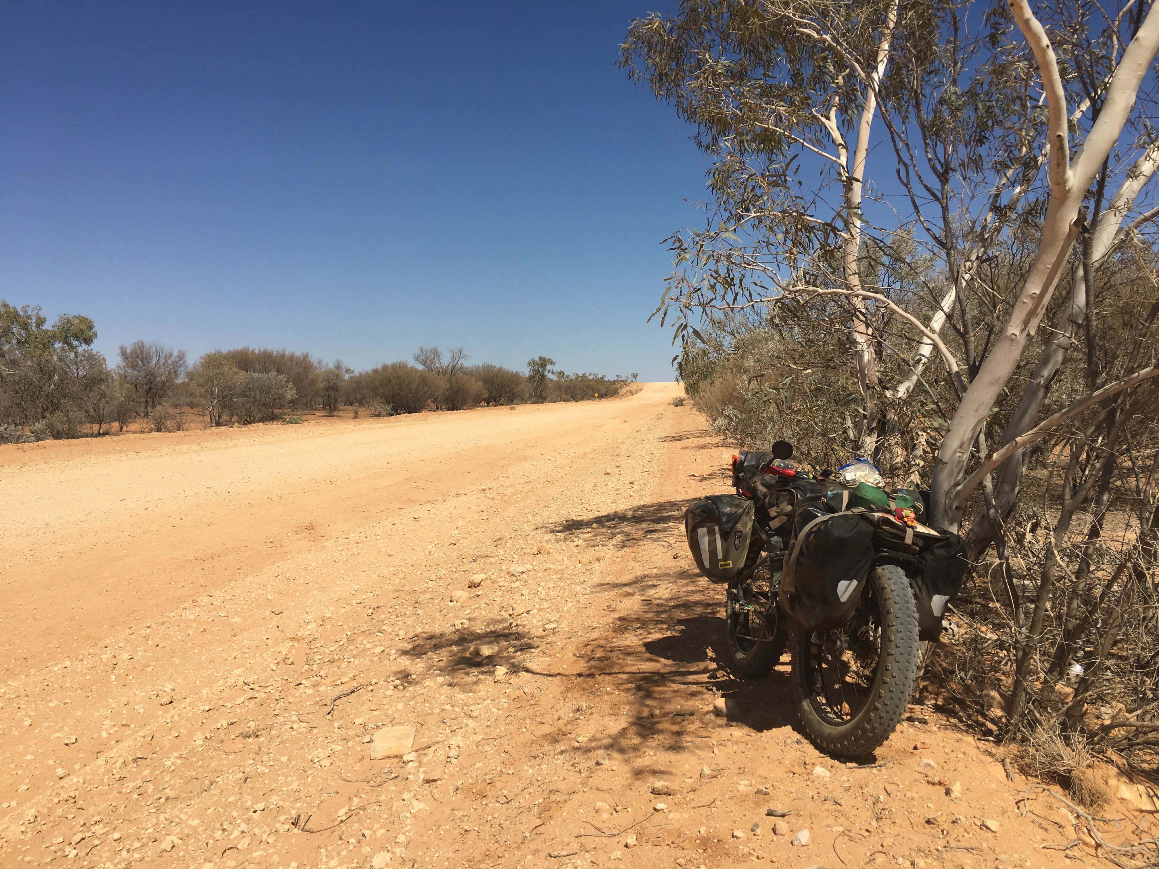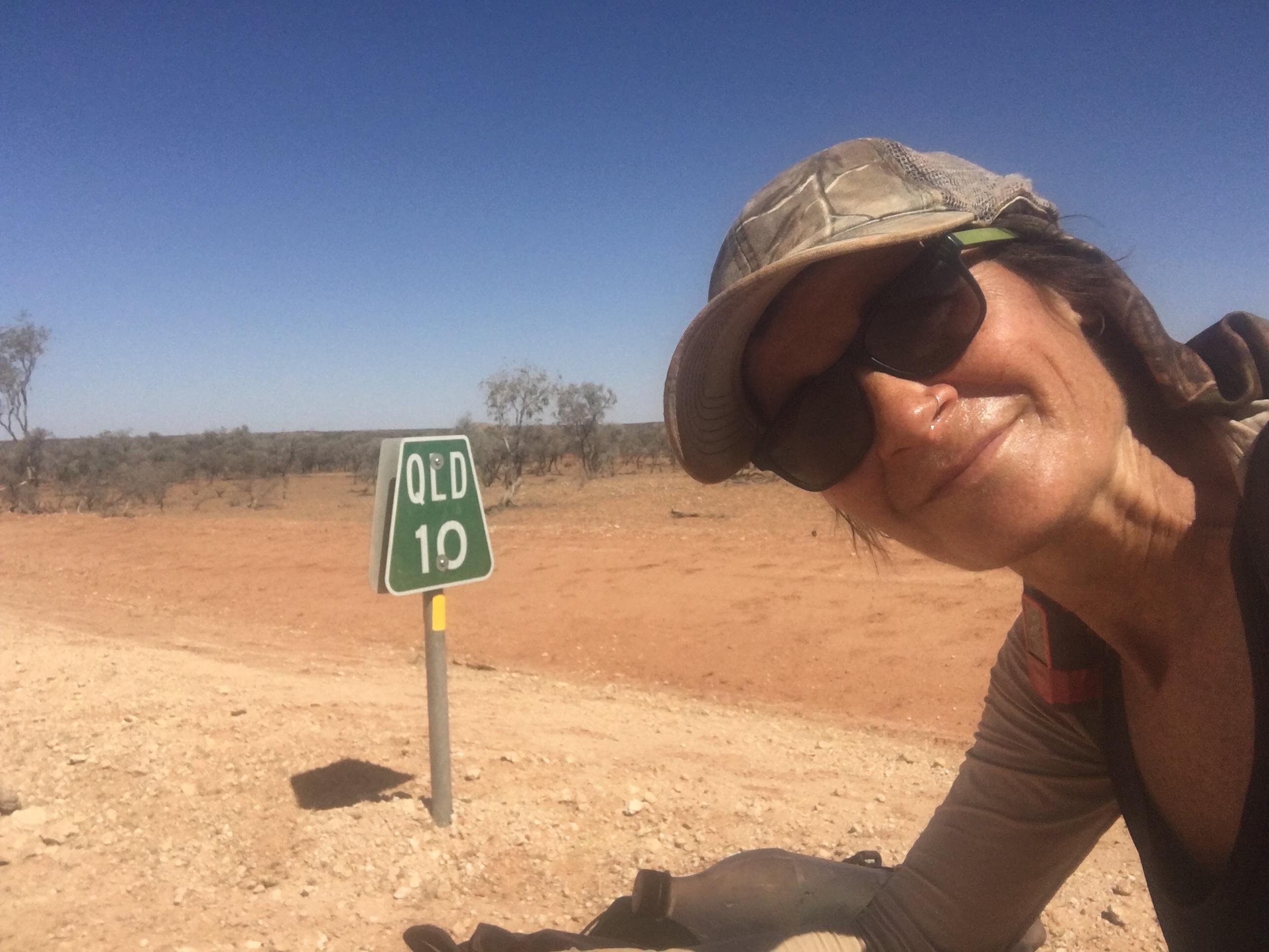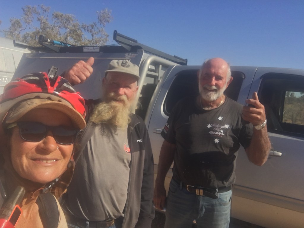 We had our first break at 25kms and found a shady tree to cool down for a bit. The arid countryside is still blowing me away. There’s a beauty here that’s raw and exposing and I love it. I took the chance to read up on our next stint to Boulia. It’s a 3 day ride at 253kms and 85km/day. I’ve heard that the road is sealed in sections but we will see.