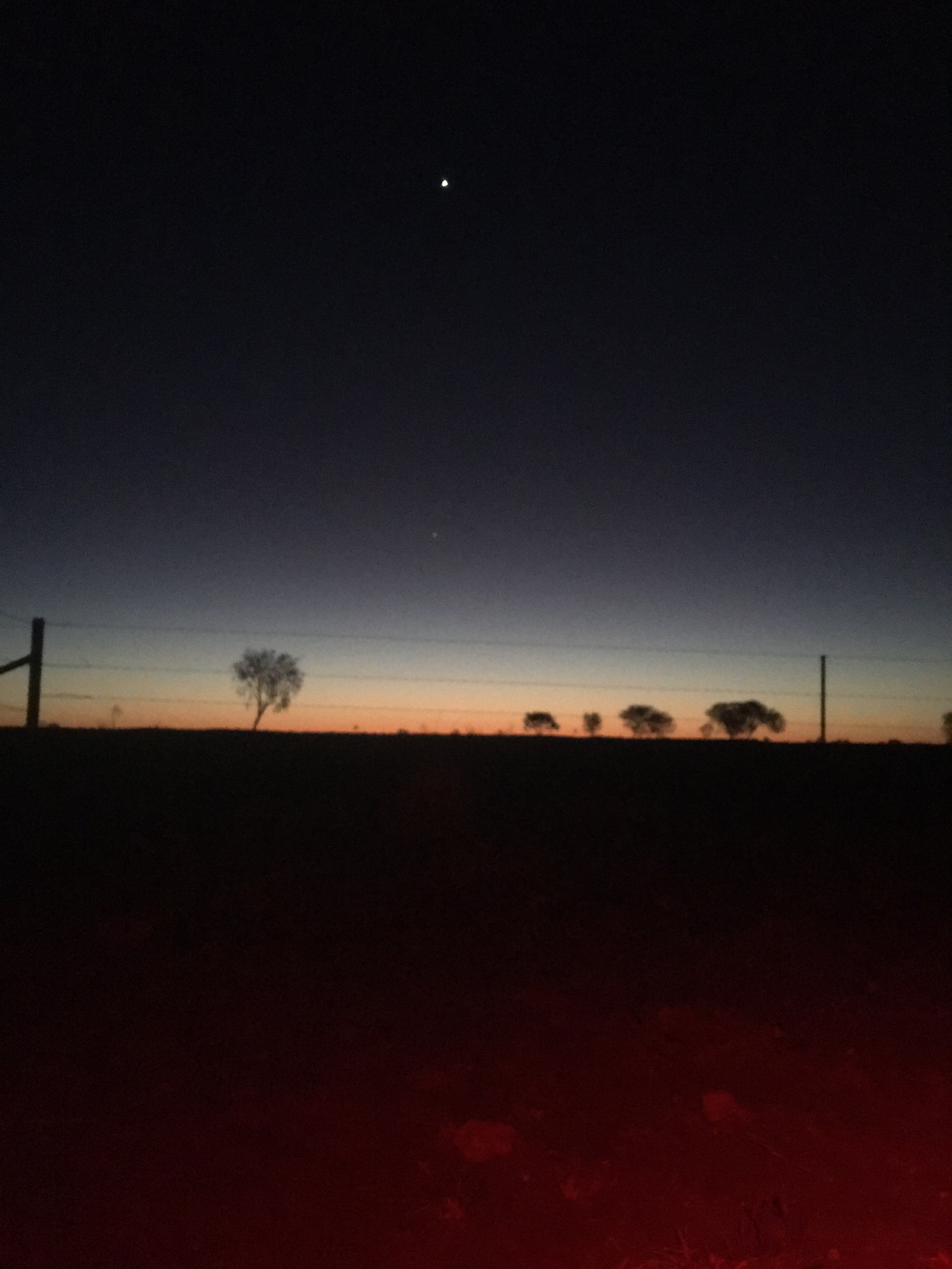 It’s such a big sky night tonight and we’re loving it under the stars. Bugs have crashed the party but they’re good dancers and putting on a show!! I got the SkyView app out to check out the other party of stars and planets going on. The debating teams are Venus, Mercury and Mars to the west and Saturn, Jupiter and Neptune to the east. The topic is who’s the brightest threesome in the sky. It’s close. Old Man Emu is adjudicating and accepting bribes. Jupiter takes out the best and fairest that’s for sure!!! What a show. No wonder the bugs are in party mode!!!