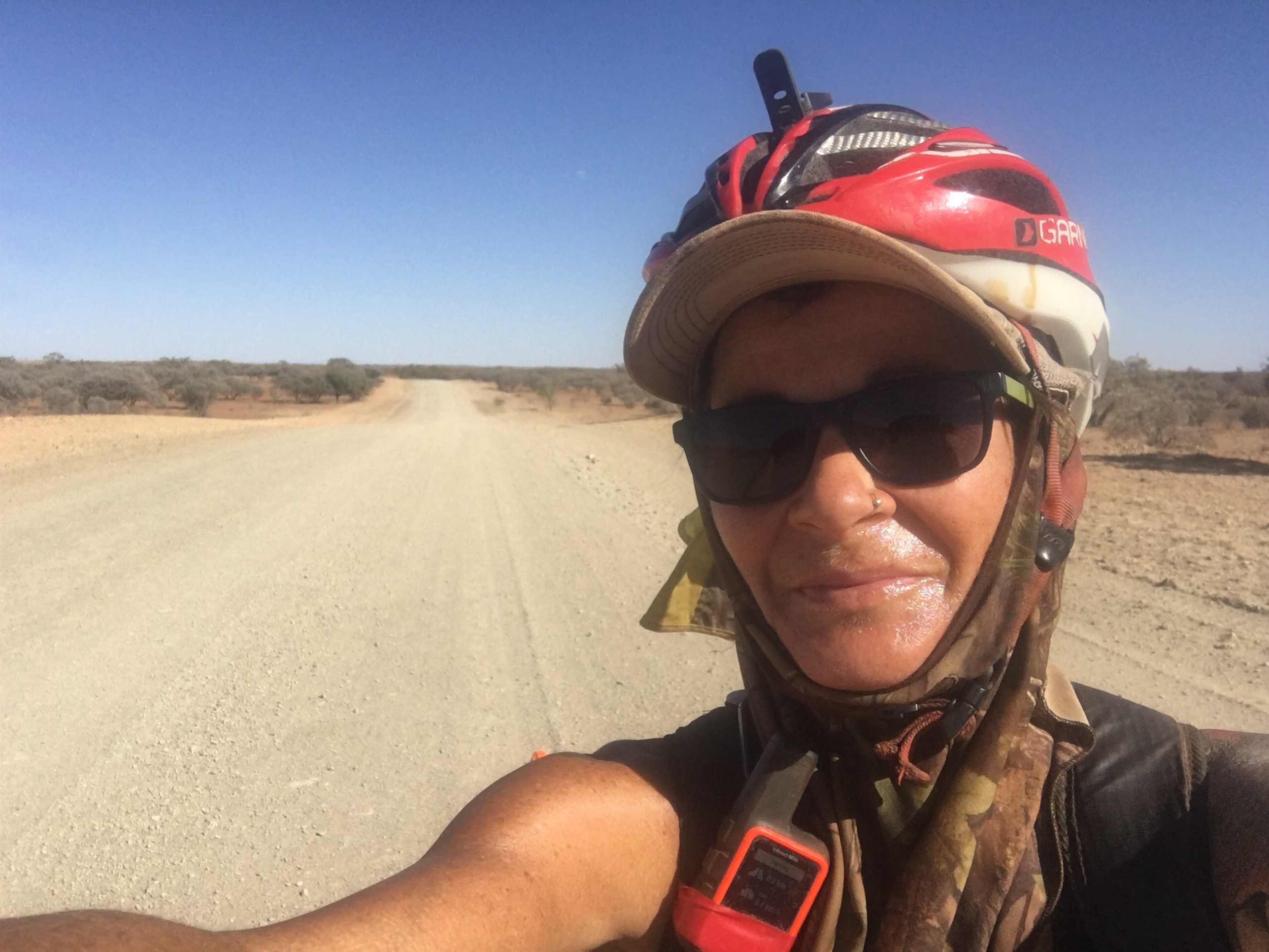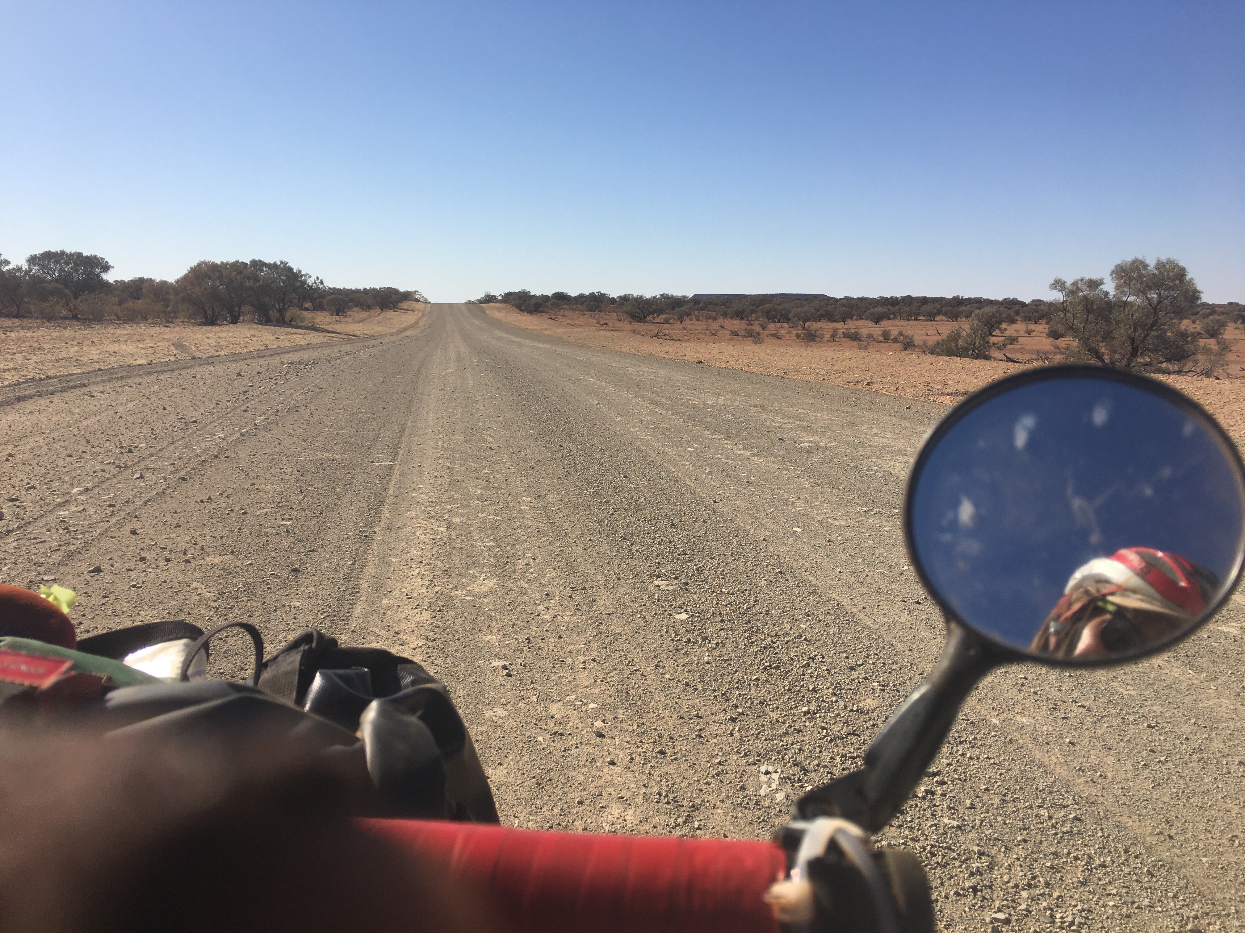 There was a short stretch of sealed road over the border but otherwise it’s been gravel. The roads in good condition and we had a particularly strong hot northerly blowing. It gave us a side tail wind for the morning and we had smashed out 80kms by mid afternoon.