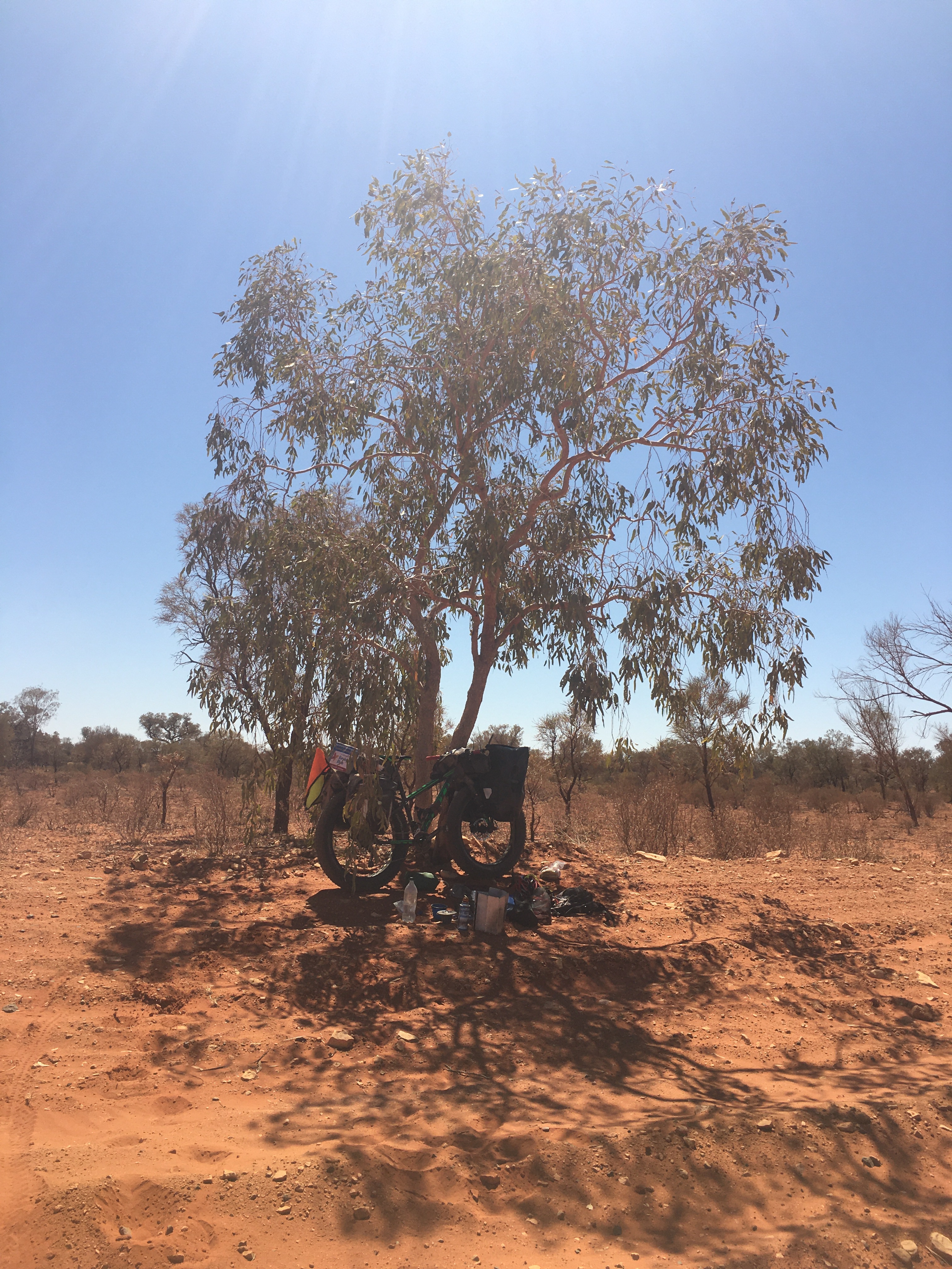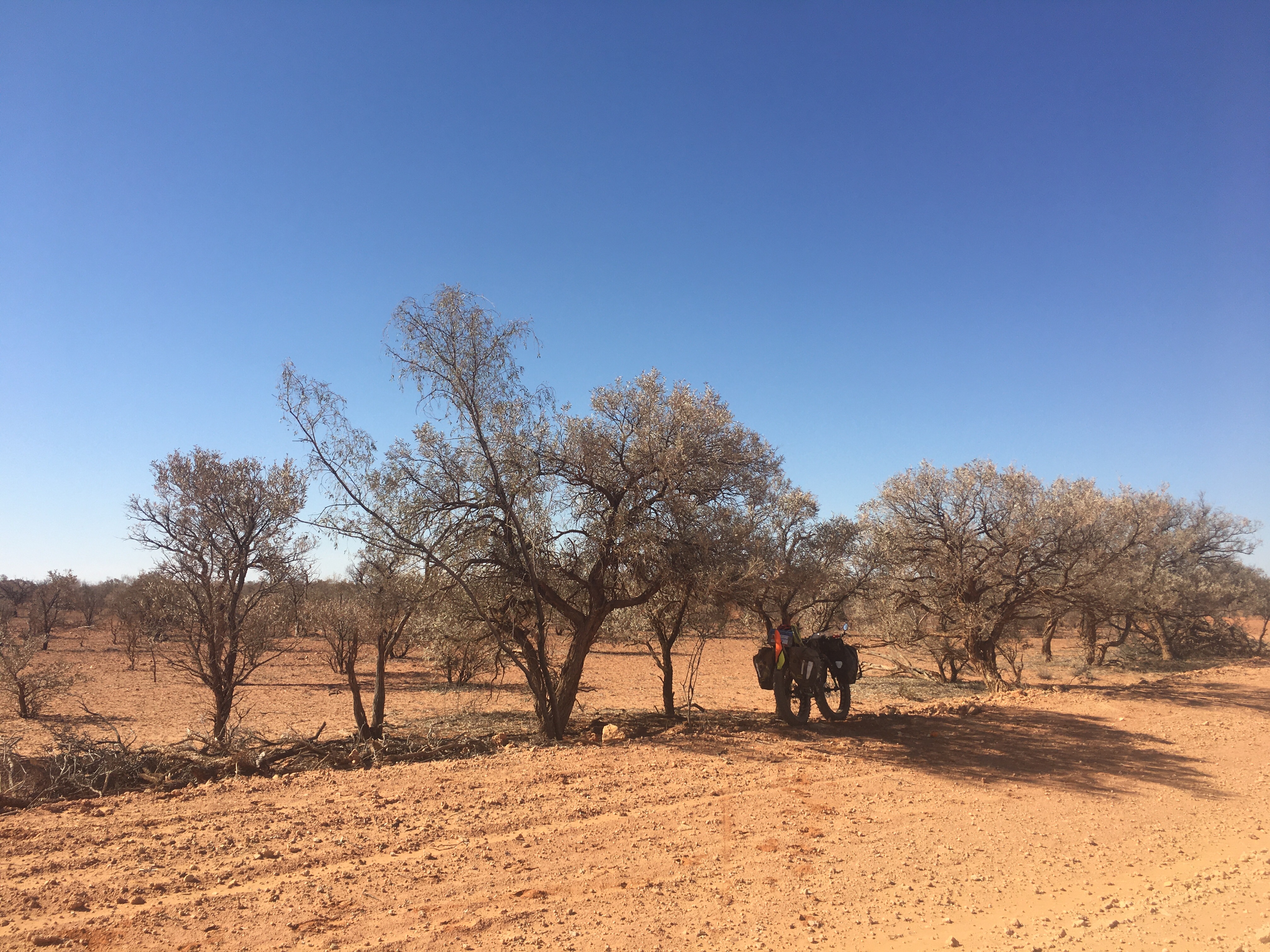 We got underway after 9am and eased into our day. The countryside is so arid; probably one of the most we have cycled through so far. This is surprising given we’re far from a desert; the closest being the Simpson further south. The land is a vast expanse of red sand, dotted with low lying trees and Mitchell grasses. There’s a remote feel that’s interesting and intoxicating.