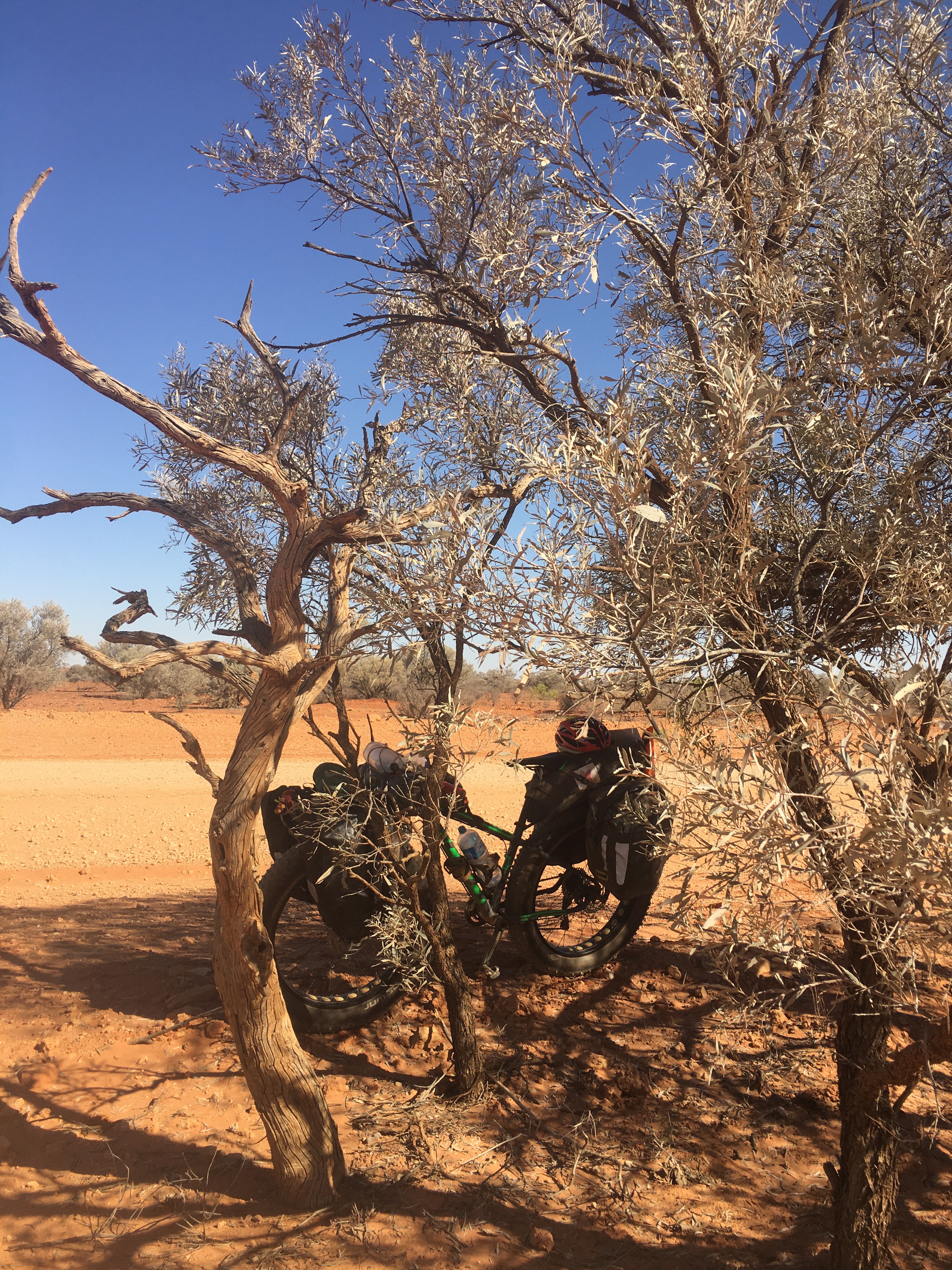 There was a northerly blowing hot today which made for a sweaty ride. The hydrolyte was dug out to top up on the good stuff during our next break. It gave us a chance to have a closer look at the trees in this area. They’re low lying and stunted with gnarly trunks. They seem very old with lots of age lines and stories to tell. I can’t imagine what tough conditions they’ve weathered over the years.