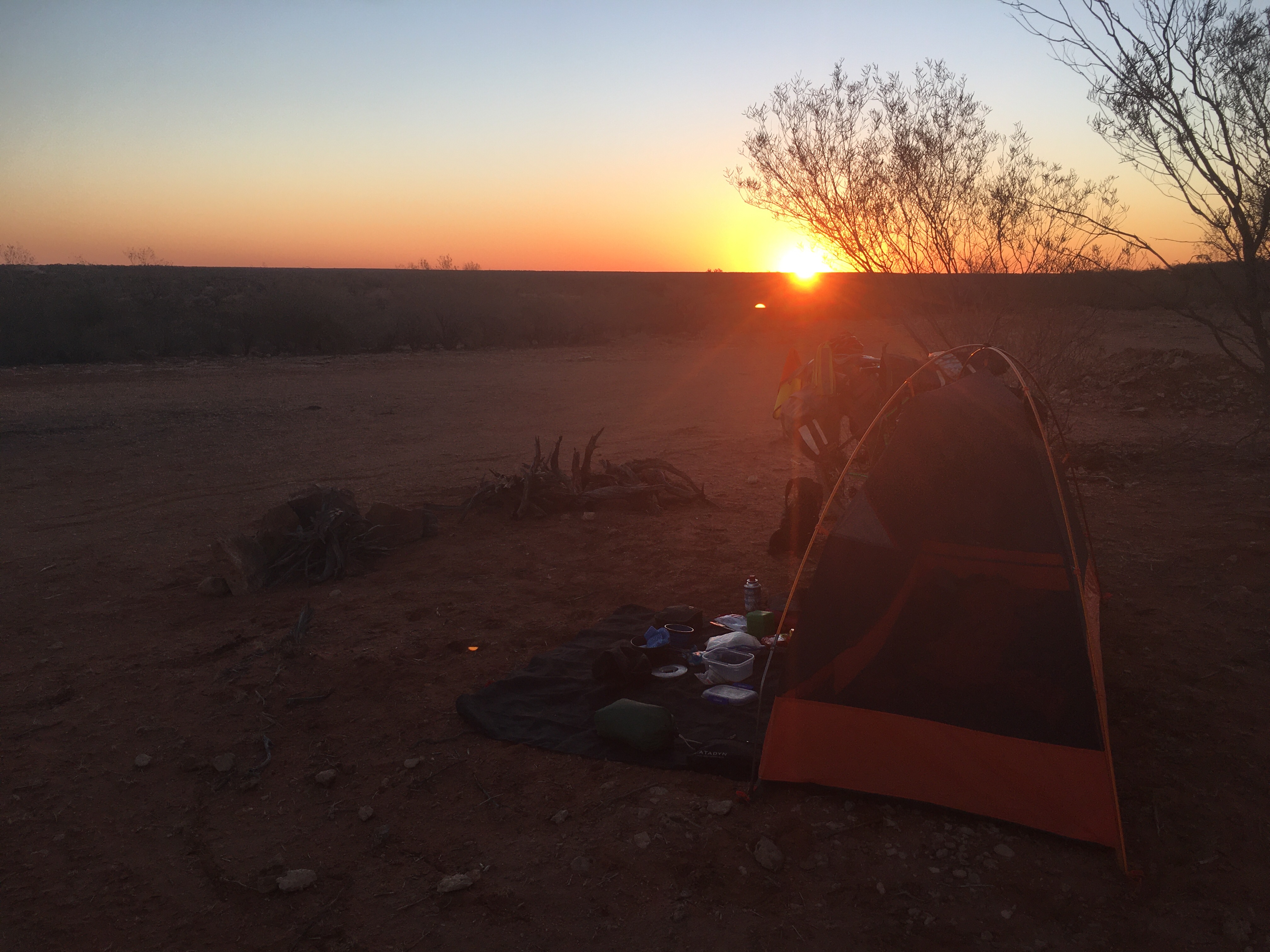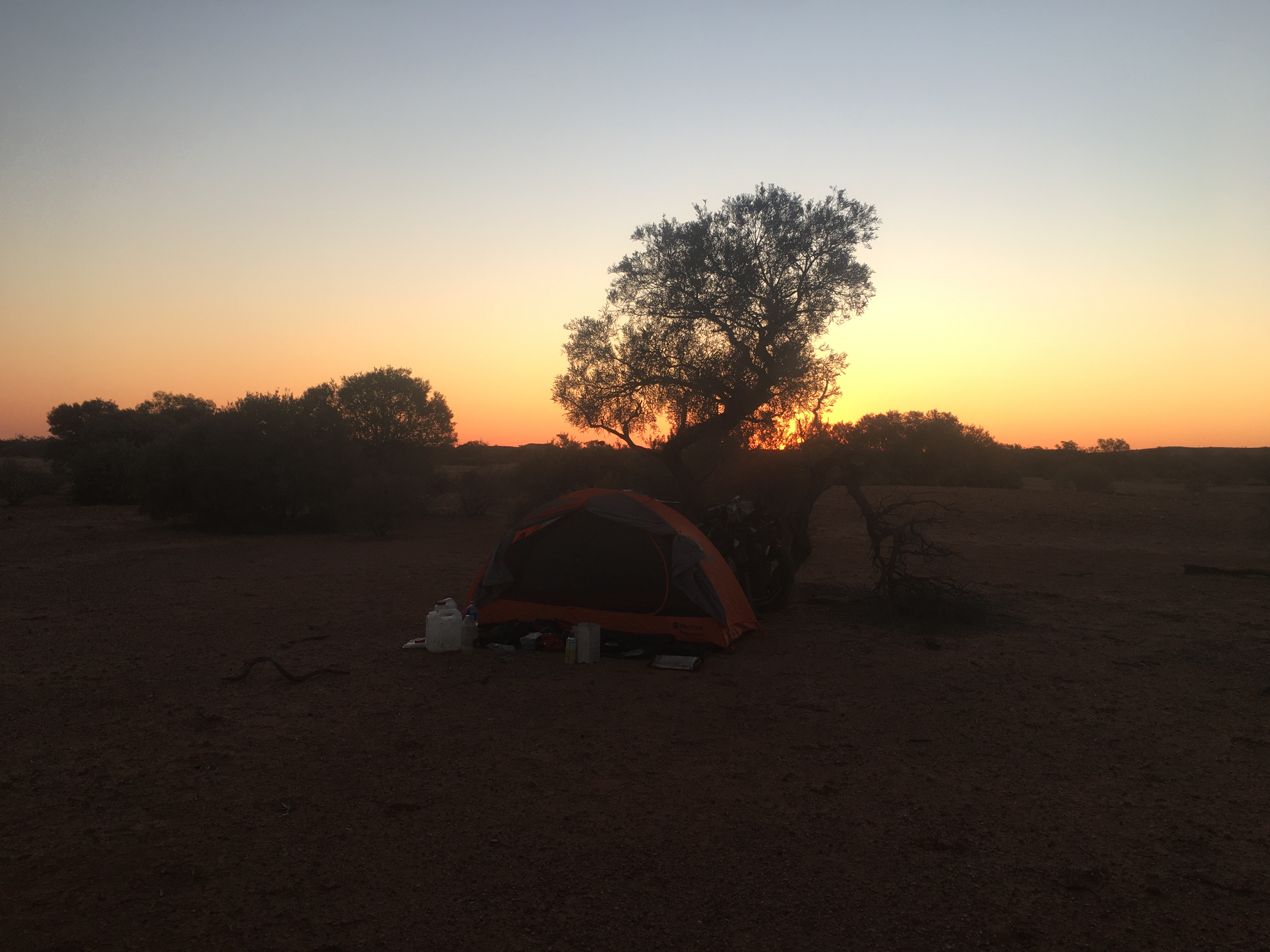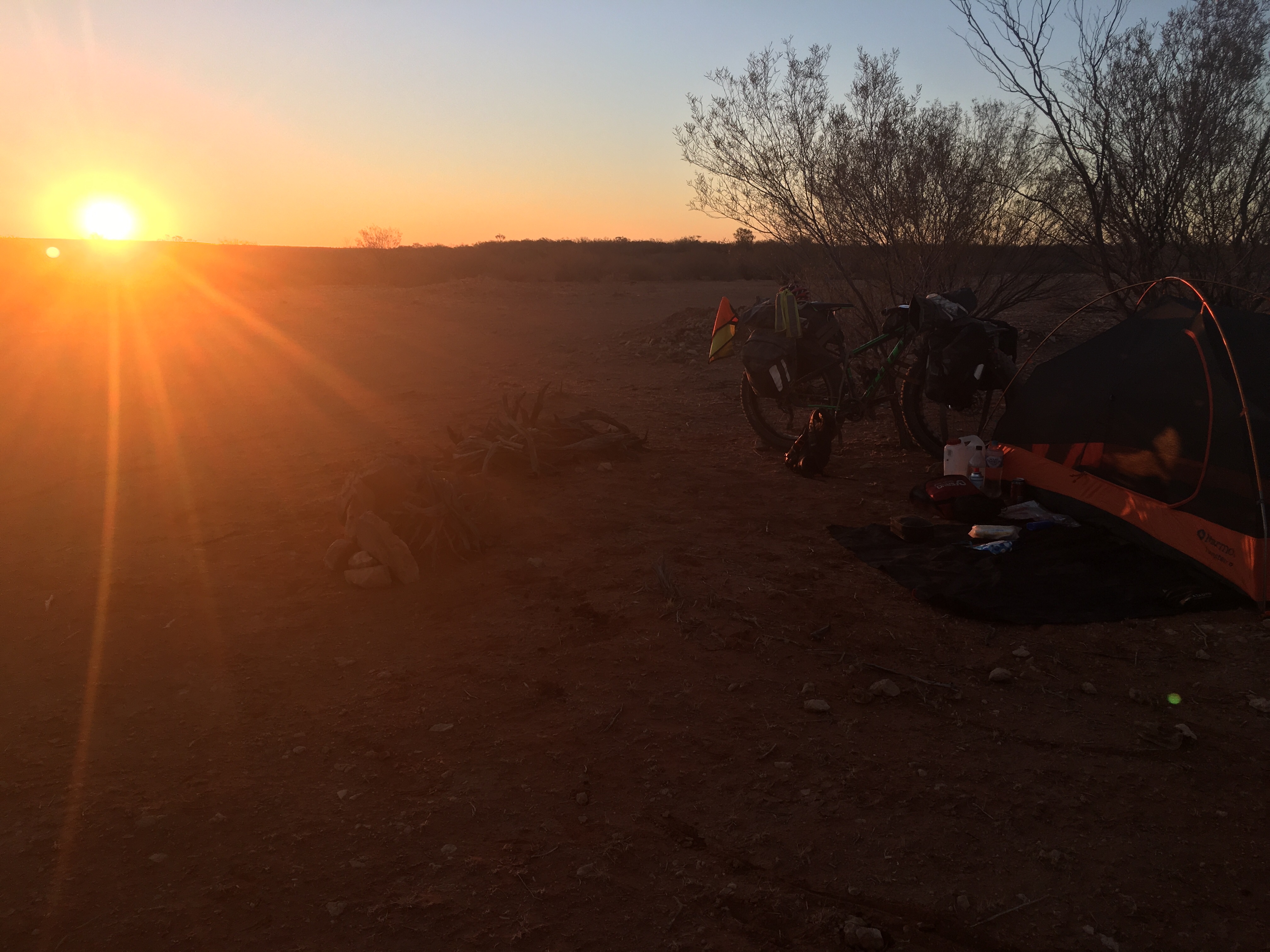 Is so still tonight and the sky is clear and magnificent. Perfect for a dinner under the stars. Tomorrow we hit the notorious section of bull dust which will be interesting to say the least. We did an extra 15kms today as I imagine it’ll be slower going albeit lots of pushing. Hopefully the watering of the track will take the edge off. Let’s see what tomorrow brings. Time for noodles. Night and talk soon xx