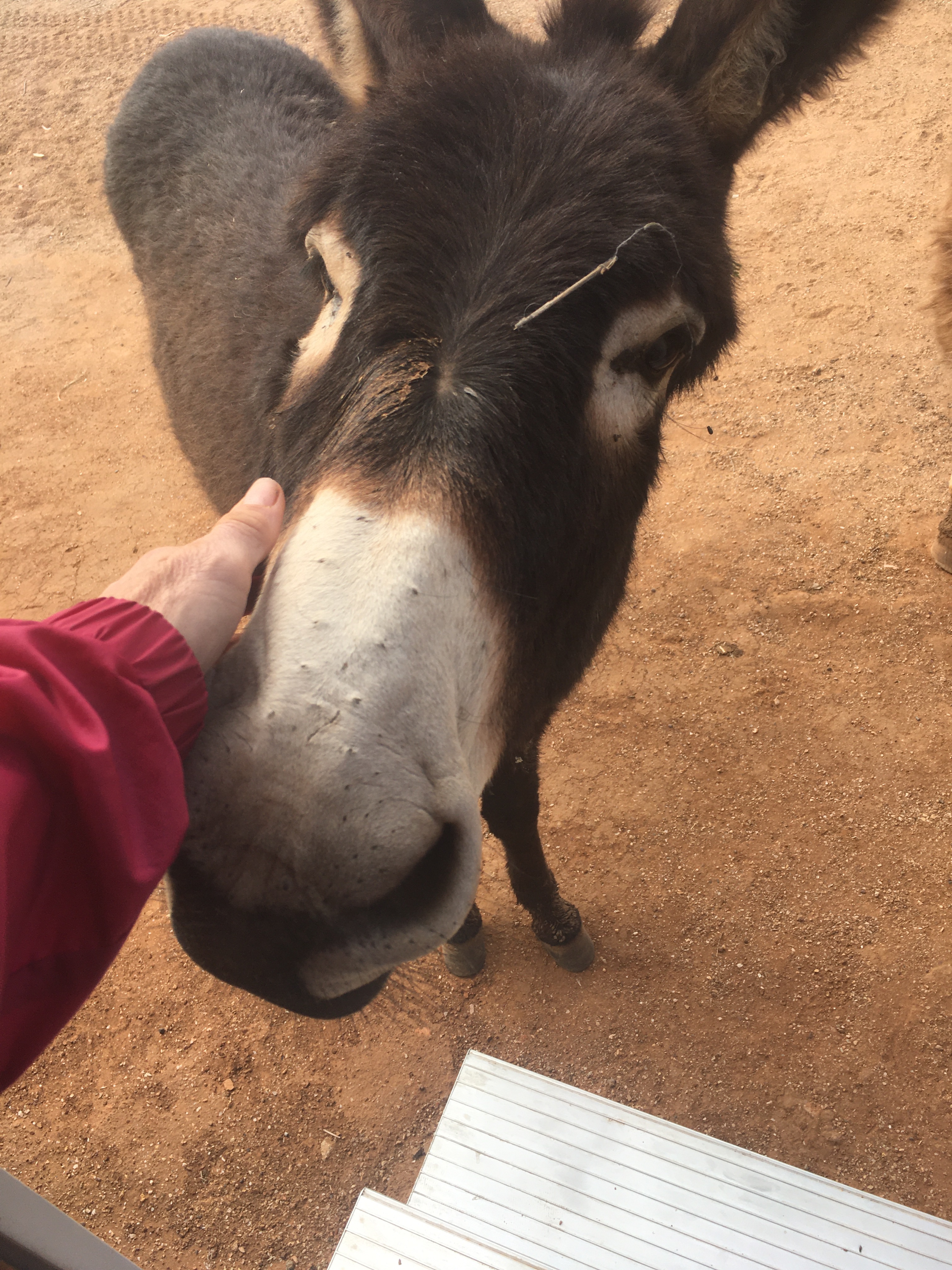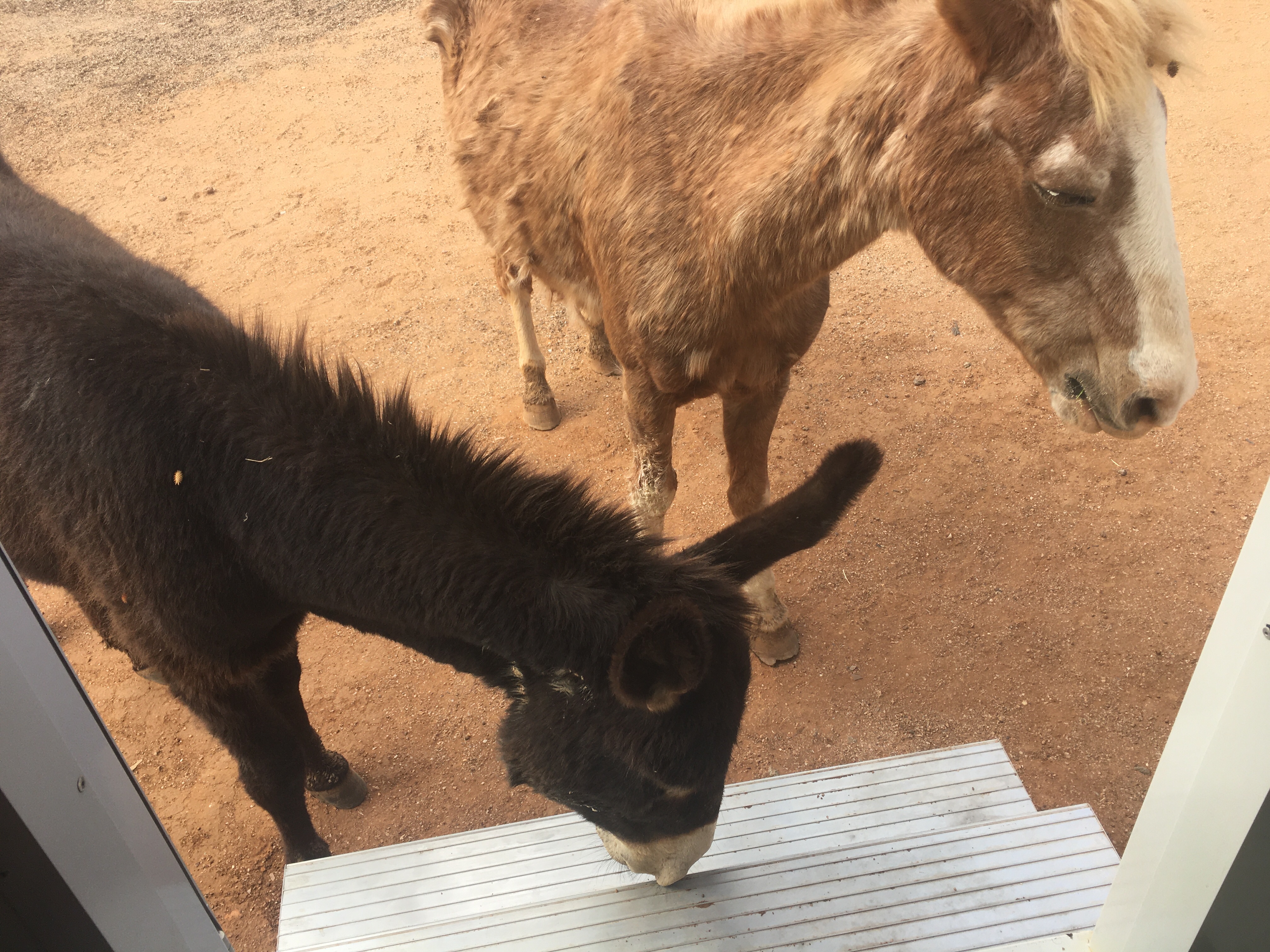 We had a later start today after sleeping in til after 8am. So nice in my cosy bed. I made a cuppa and called the folks. We had an awesome chat and could have easily spent the rest of day sharing stories. What a treat!!! While we were talking I had a visit from the resident pony and donkey. They were saddling up for a cuppa too.