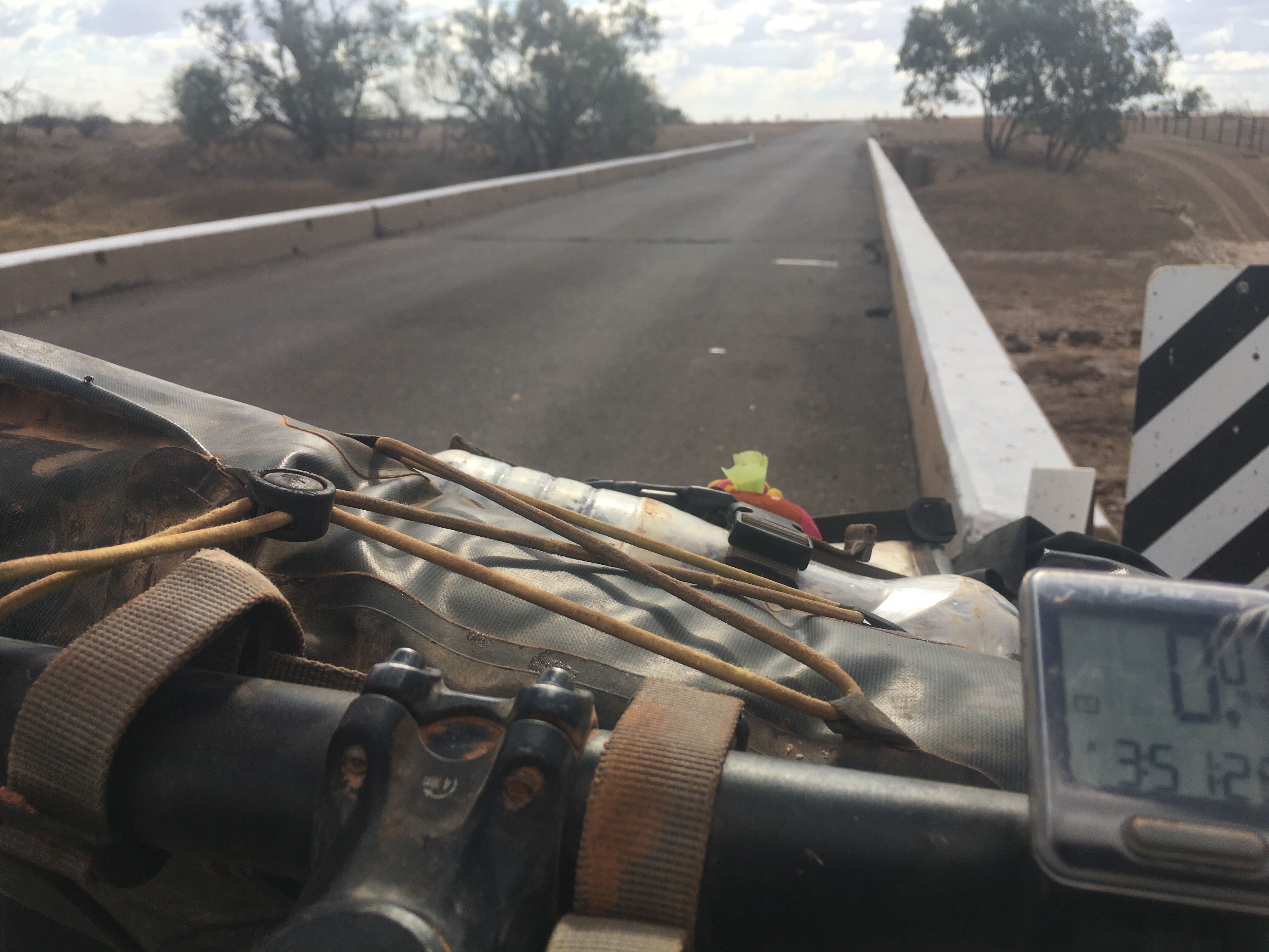 Its easy for my thoughts to get lost in the expanse. I quite like that feeling. But Banjo and and I were keen to stay focused for the next 30kms and keep his tyres safe from sharp rocks until the sealed road.