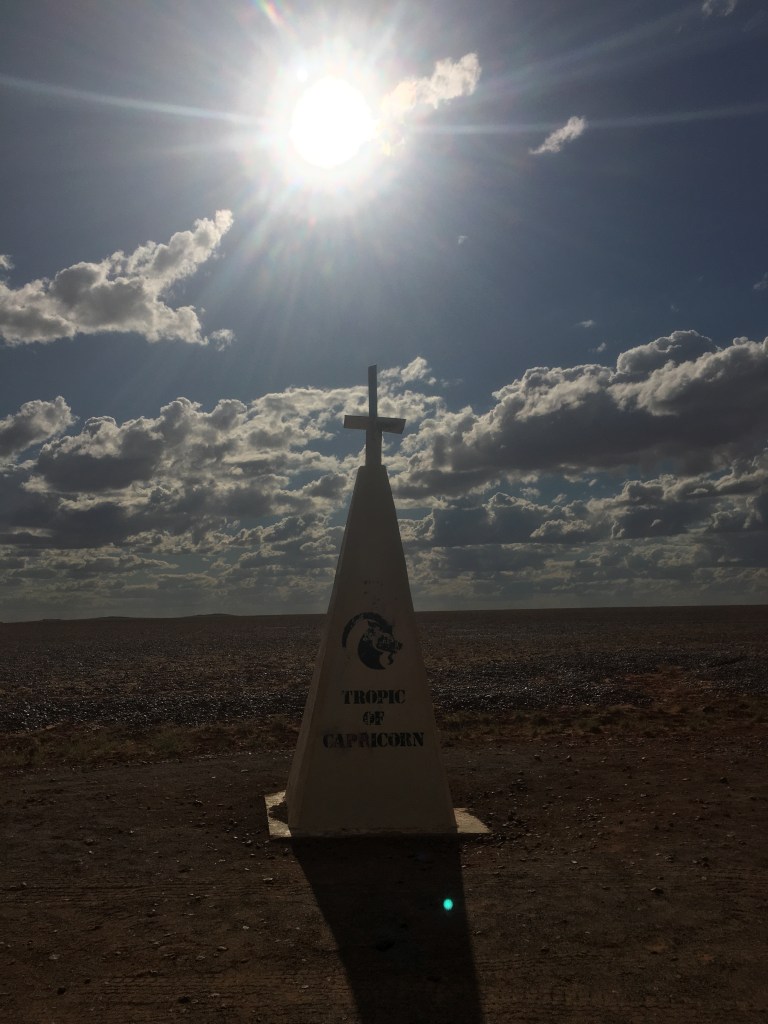 We passed the monument for the Tropic of Capricorn so we’re in line with Rockhampton on the east coast of I remember my geography right. I need To check with the Atlas Man tomorrow.