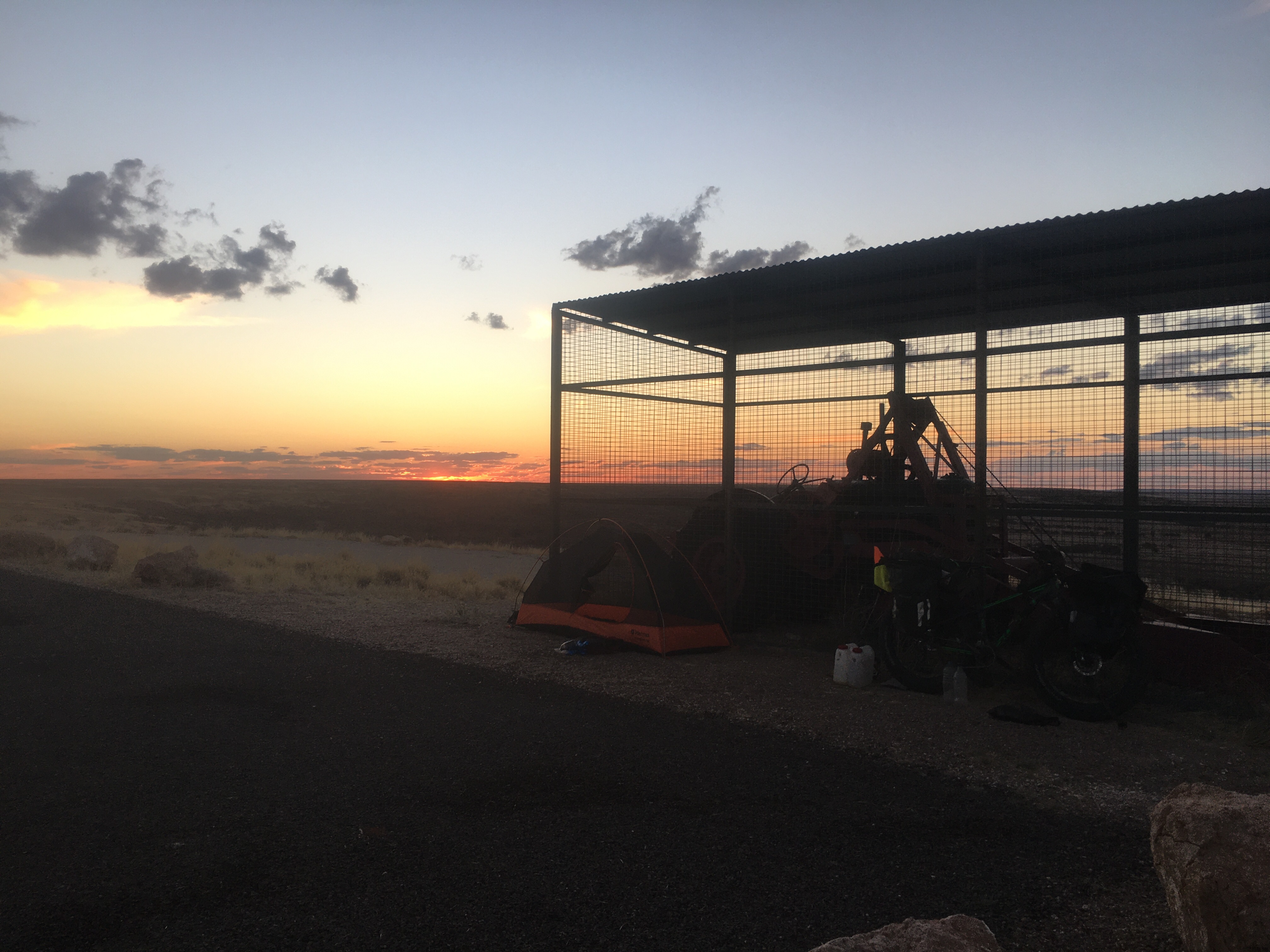 By this stage it was close to 6pm. We arrived at their facility and asked if we could pitch our tent and use their compressor. I met Pete, one of the workers. He offered me one of the dongers to stay in. Oh yay!!! His compressor did the job and Banjos set for tomorrow. There’s only 30kms left of gravel before we hit sealed road so here’s hoping I don’t have to use the hand pump again 🤞🏻