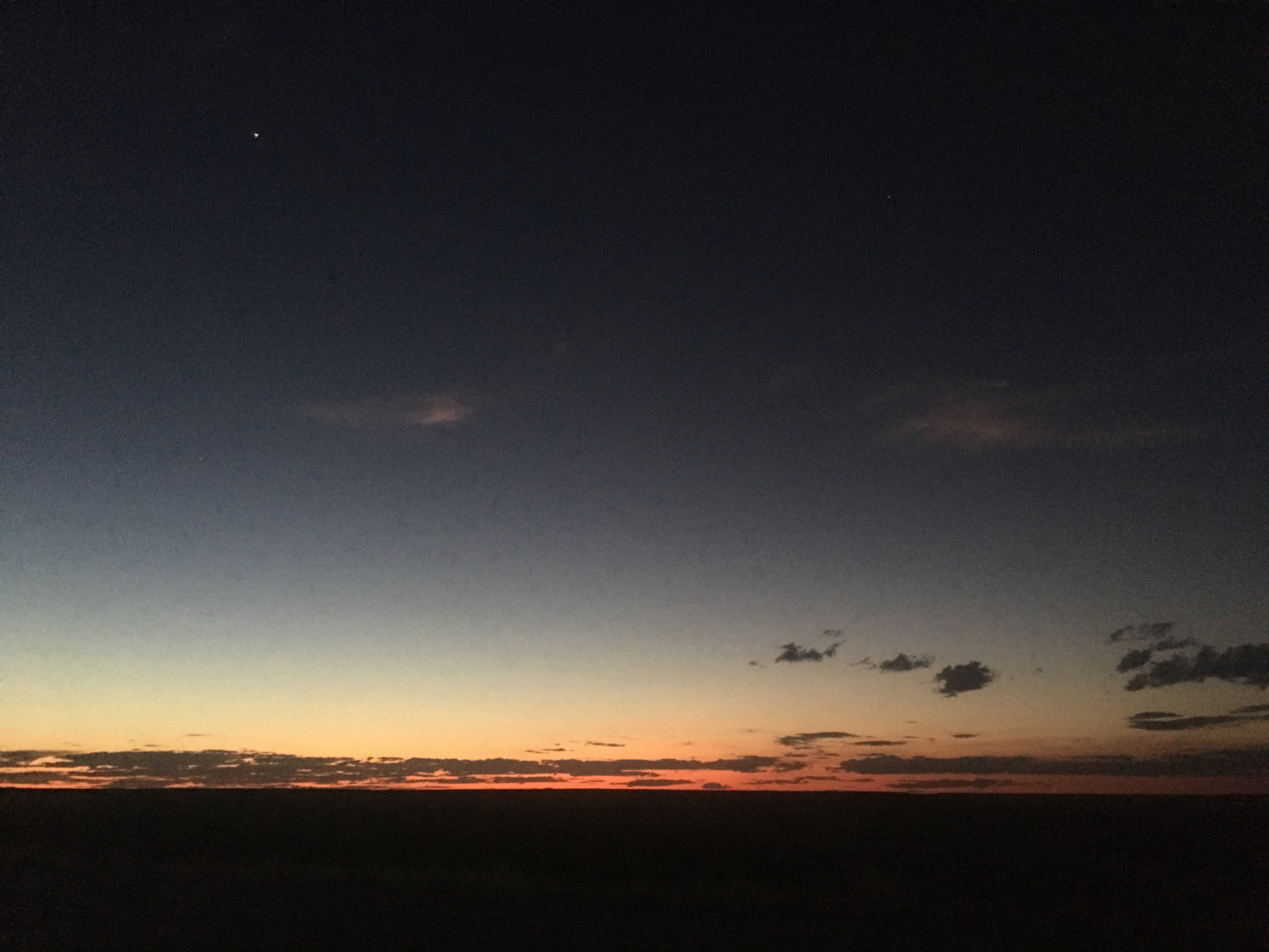 The vastness of flat horizon also means an amazing night sky. We’ve enjoyed some beautiful nights but tonight is an exception. Old man emu is having a party up in the Milky Way. I managed to capture an image using the SkyView app. You can see his head under the southern cross and his neck, body and legs following.