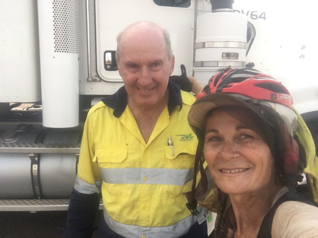 It was a later start after 9.30am but all good indeedy. The crews were driving back in camp after days off. They were all curious about this lady on a bike at their facility. There were a lots of aboriginal workers which was great to see; all smiles and thumbs up with us experiencing the beauty of their country.