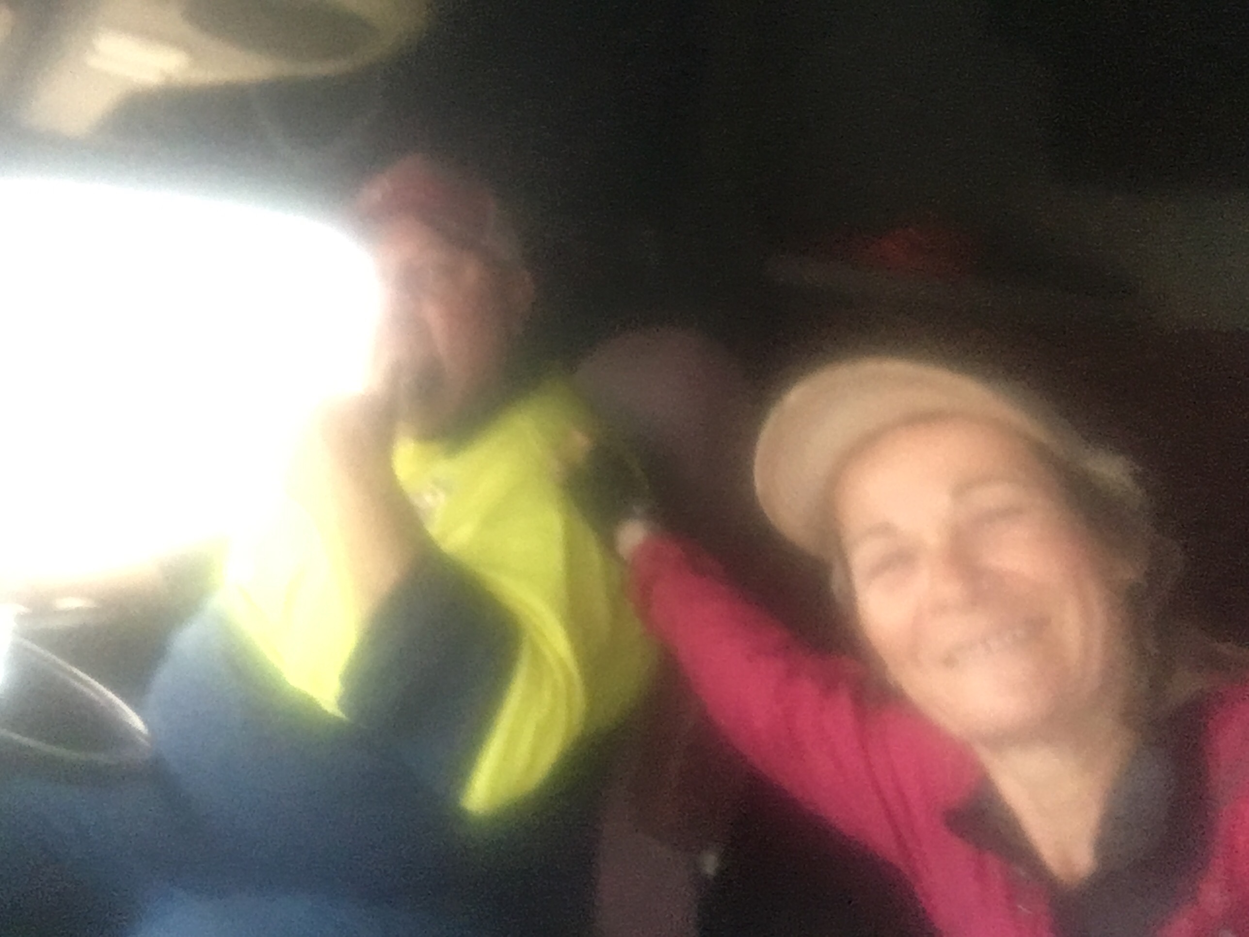 It was not rain!! It was our first dust storm!!! I remember just repeating, “What the fu&$.” It’s blinding and it’s frightening. I was already elevated with the job at hand and went into response mode!!! “Right … where was that rest area!!!” I figured out it was another 5-8kms away and we head downed and tailed it. The rest area was exposed and across the road was the entrance to the facility. If was dark by the stage. The facility was workers from the Diamantina Shire Council, sealing the last sections of road from Bedourie to Birdsville. They were gruffly gracious and my guardians in the night. Before we could blow the dust from our noses, we had a bed for the night and a hot dinner and shower. It was the most remarkable turn of events on our challenge. My head was spinning with disappointment and relief. They also had wifi so I called the family to let know what had happened. I new they would have been following our progress to Birdsville closely.