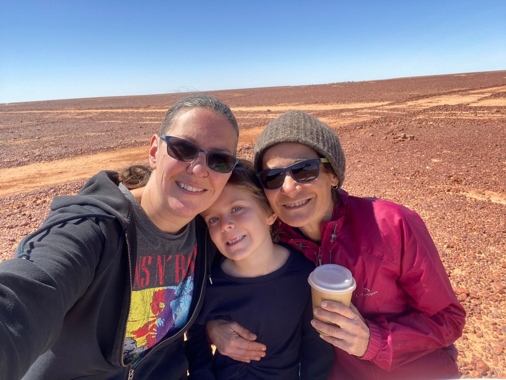 We headed off on our road trip yesterday from Birdsville, taking the road I came in on. This meant we passed Kylie and the road crew who kindly paid for a deluxe cabin for me and my family. We met up on the roadside to say thank you and introduce her to Dawn and Dylan. How special!!!