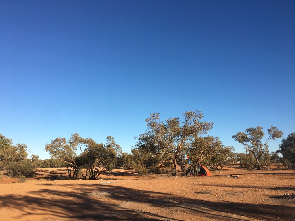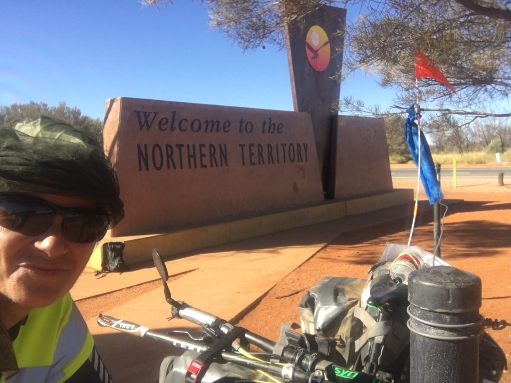 Now banjo and I are tucked under our shelter and taking in the sounds of silence and stars. A breeze is blowing an extra chill in the air but I’m rugged up under the gortex and cosy enough. What an amazing day. Tomorrow we head into the aboriginal lands toward Docker River and the WA border. It will be a two day ride of 90km each day so an early start each day to cover the kms. The road is unsealed soon into our travels. It’s awesome we can water up here and be good for another discreet camp before the official campground at Docker River just before the border.