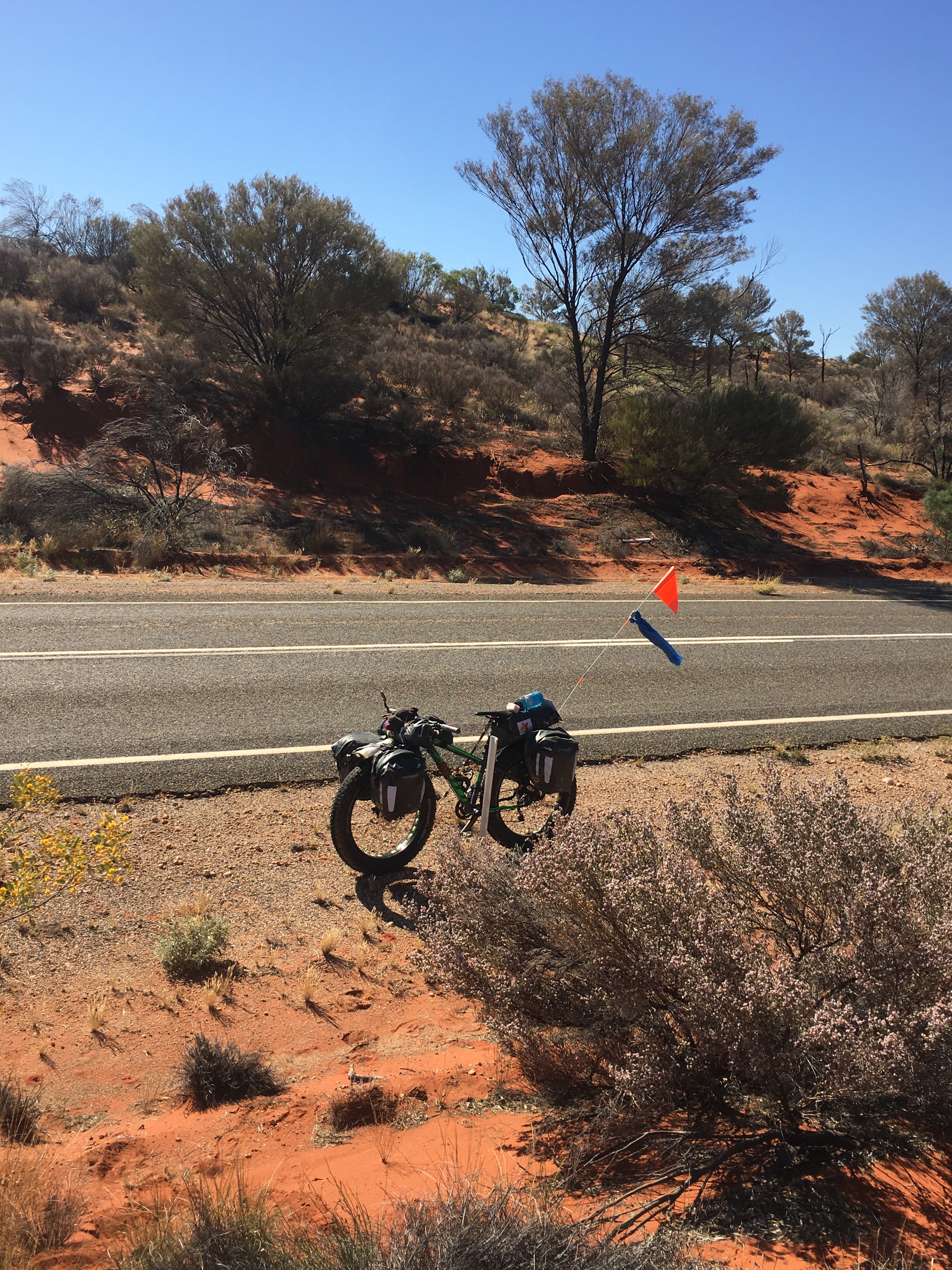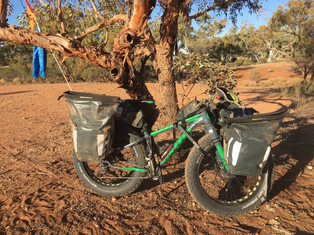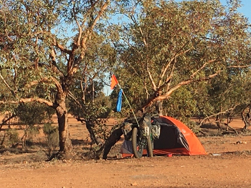 It was 12.30pm before we got underway. This morning I spoke to my family and we planned replacement tyres for Banjo. Lothar brought up yesterday about how his tyres are wearing and the likelihood of replacing them. That’s not something that can happen without planning and instep my amazing primary support crew. Dawn left out my spare set of tyres for Dad to collect and send to Laverton. I’ll then put the best pair on the boy for the long hall from Laverton to Halls Creek. I’ll find room for a spare tyre just in case. Dawn is arranging with Darren at the ‘MoutainBiker’ for a new set to be posted to Halls Creek so the boy will be good for the Tanami, Old Ghan and the Simpson Crossing into Birdsville. With that critical logistics in place I was good to start packing up.