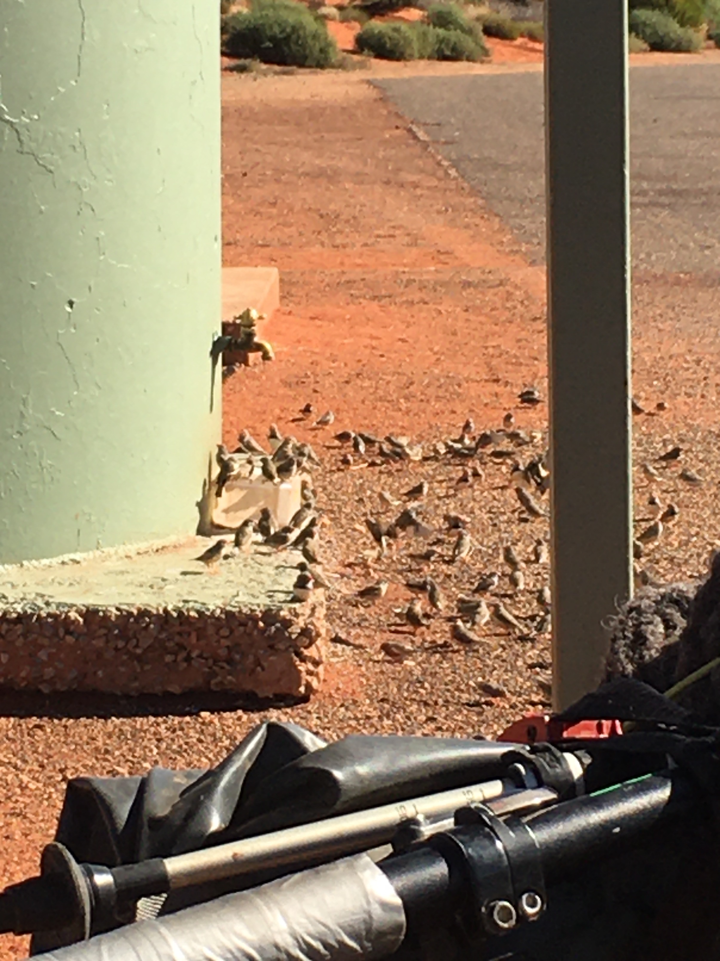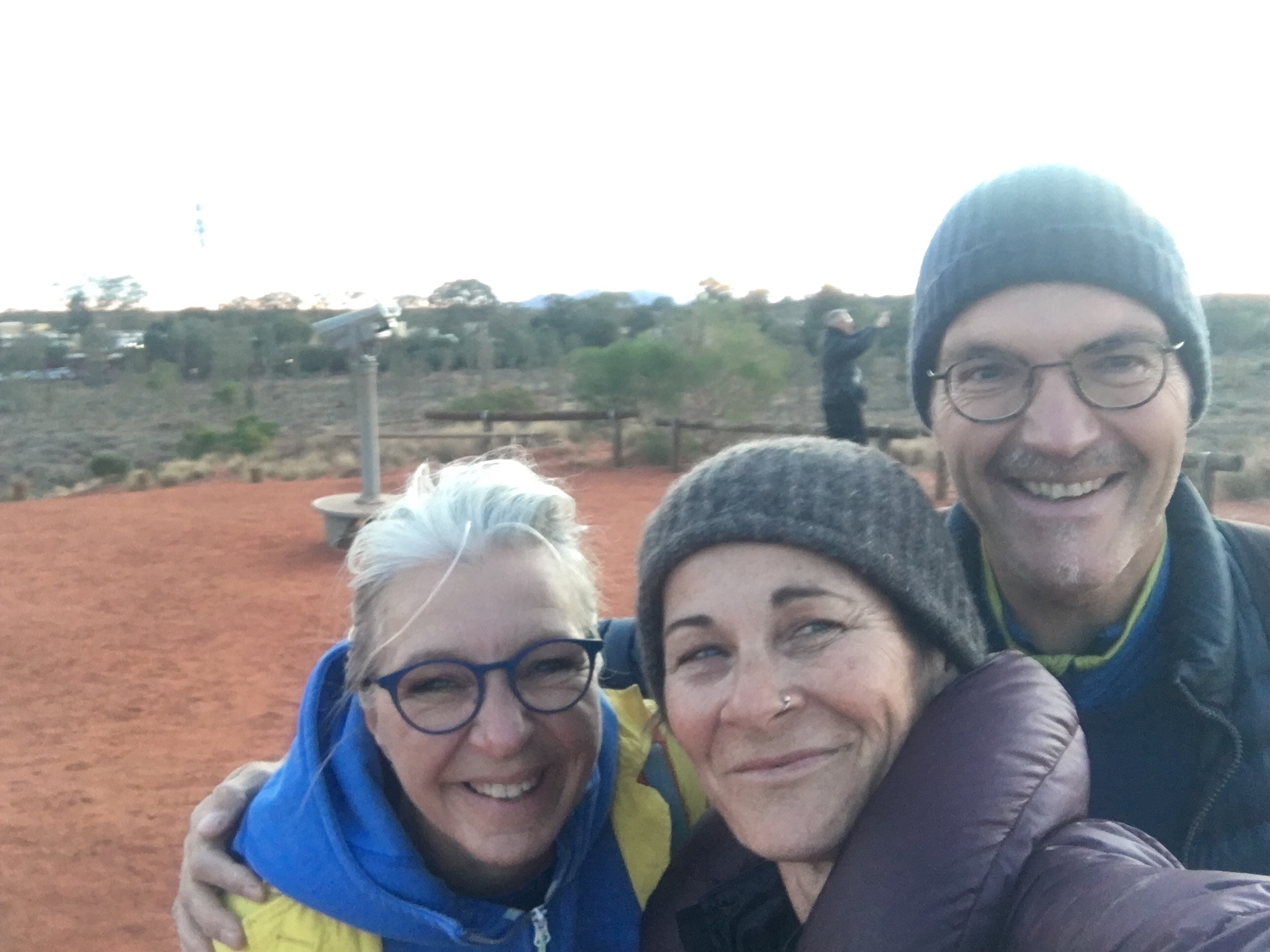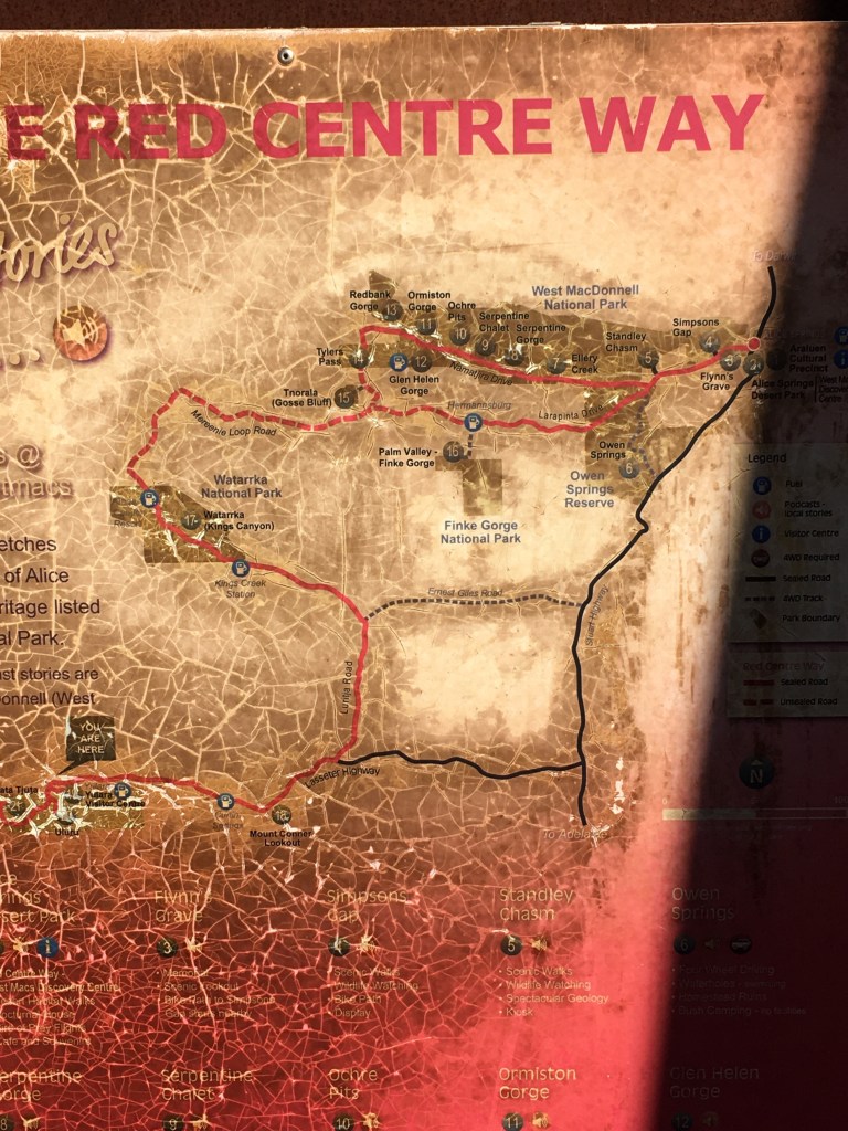 Time to get underway and we were good to go. Our first stop was at the National Park Entrance and the rangers that check through visitors into Anangu Land and the Uluru-Katu Tjuka National Park. It’s a World Heritage Area. Because we’re travelling through we didn’t need a National Park Pass and just had to show our permit to travel aboriginal (Anangu) owned land. They were able to confirm we could get water at the Katu Tjuka sunset viewing centre and we were on our way with their blessings. Very excited indeedy.